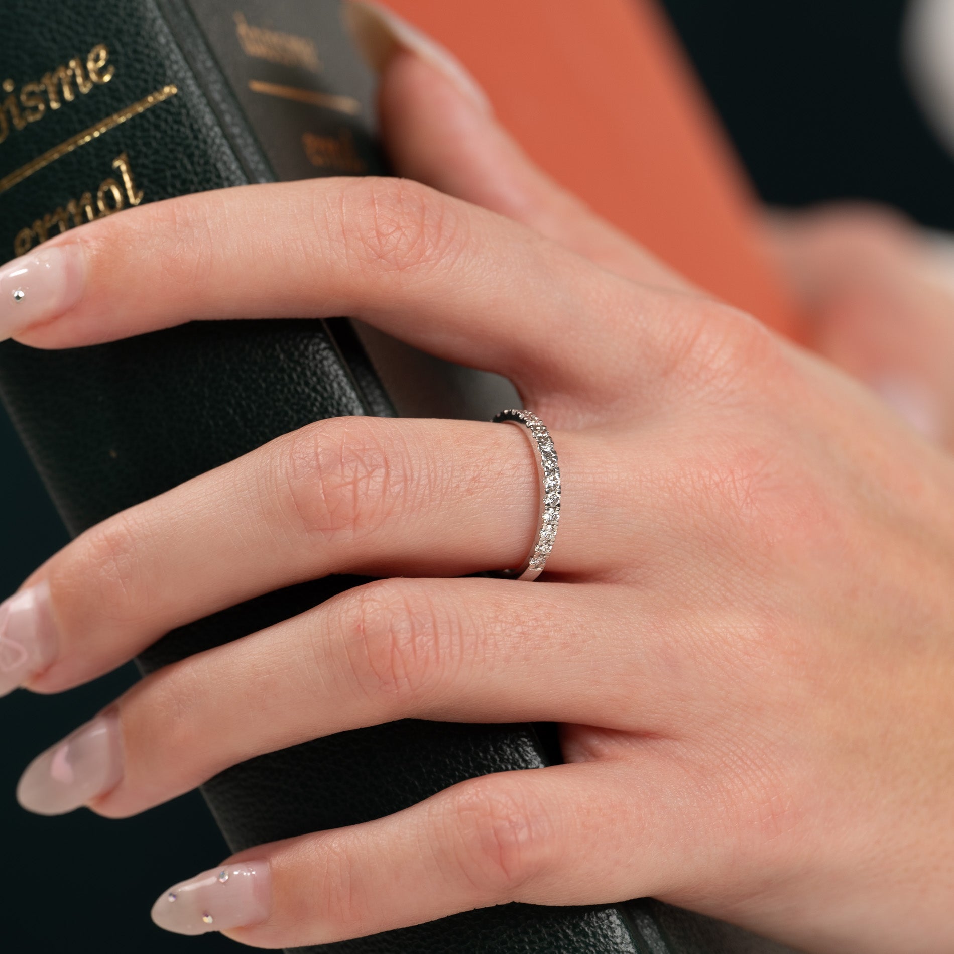 Ringen är i 14 karat massivt vitguld med 15 labbodlade diamanter med en totalvikt på 0,45ct. Diamanterna har färgen E/F (River) och klarheten VVS. Smycket är skapat med omtanke; diamanterna är producerade med bland annat solenergi, och guldet är 100% certifierat återvunnet.