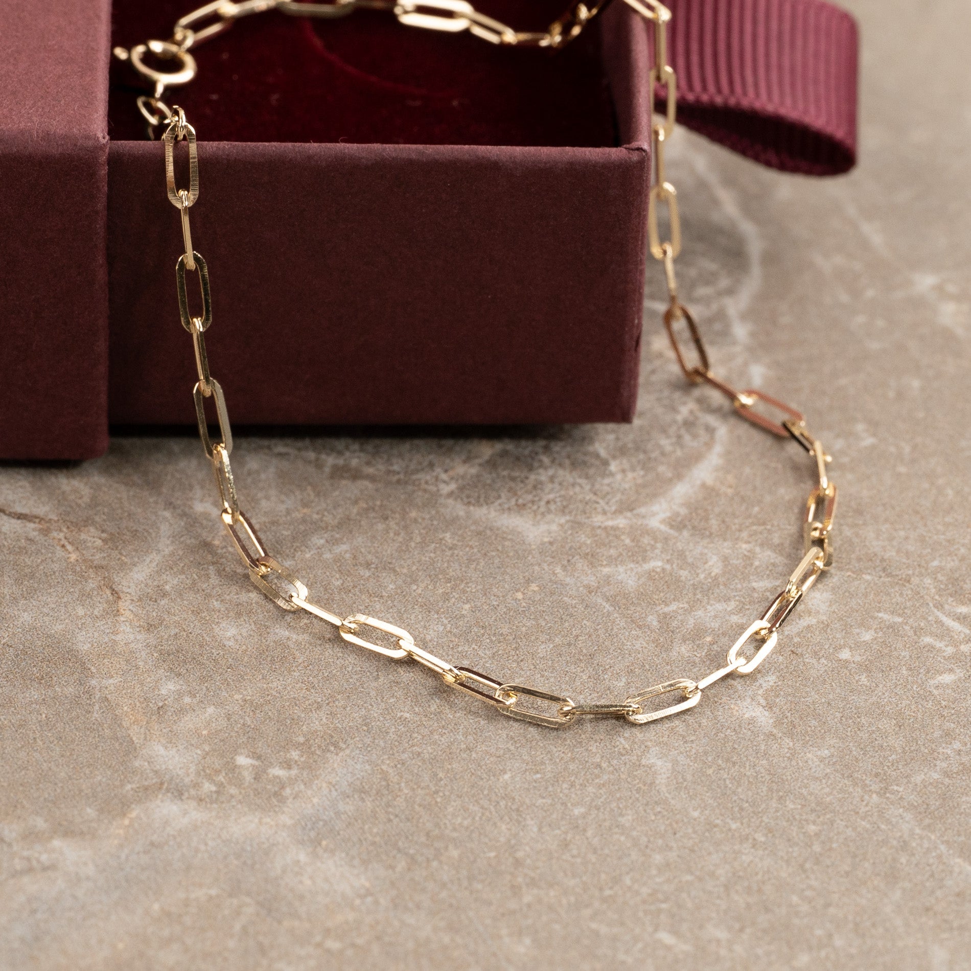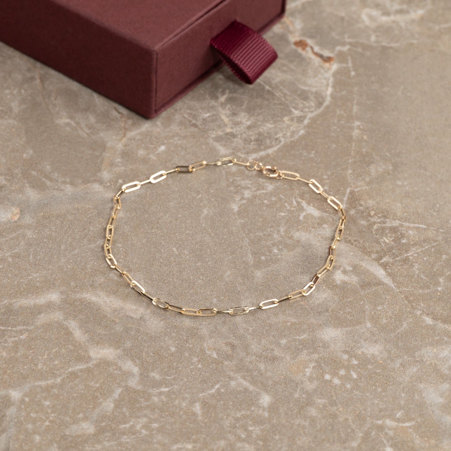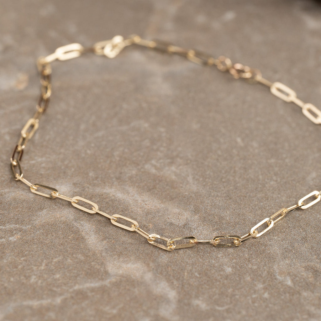 Vårt Alma golden armband är tillverkat av 100% återvunnet 9 karats solid guld. Armbandet är tillverkat med en "PaperClip" -kedja med långsträckta öppna kedjor.