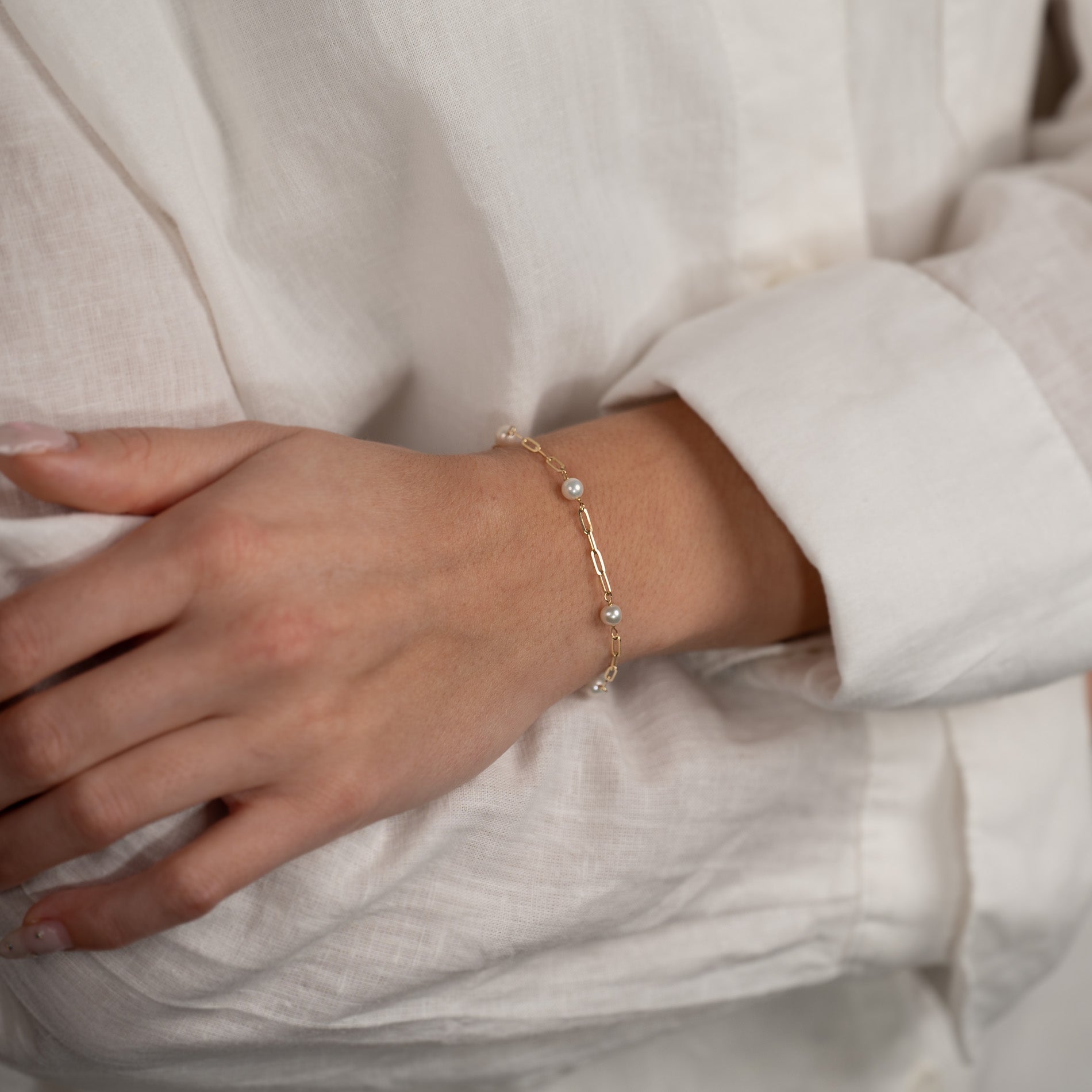 ALMA PEARL MEDIUM SOLID GOLD BRACELET