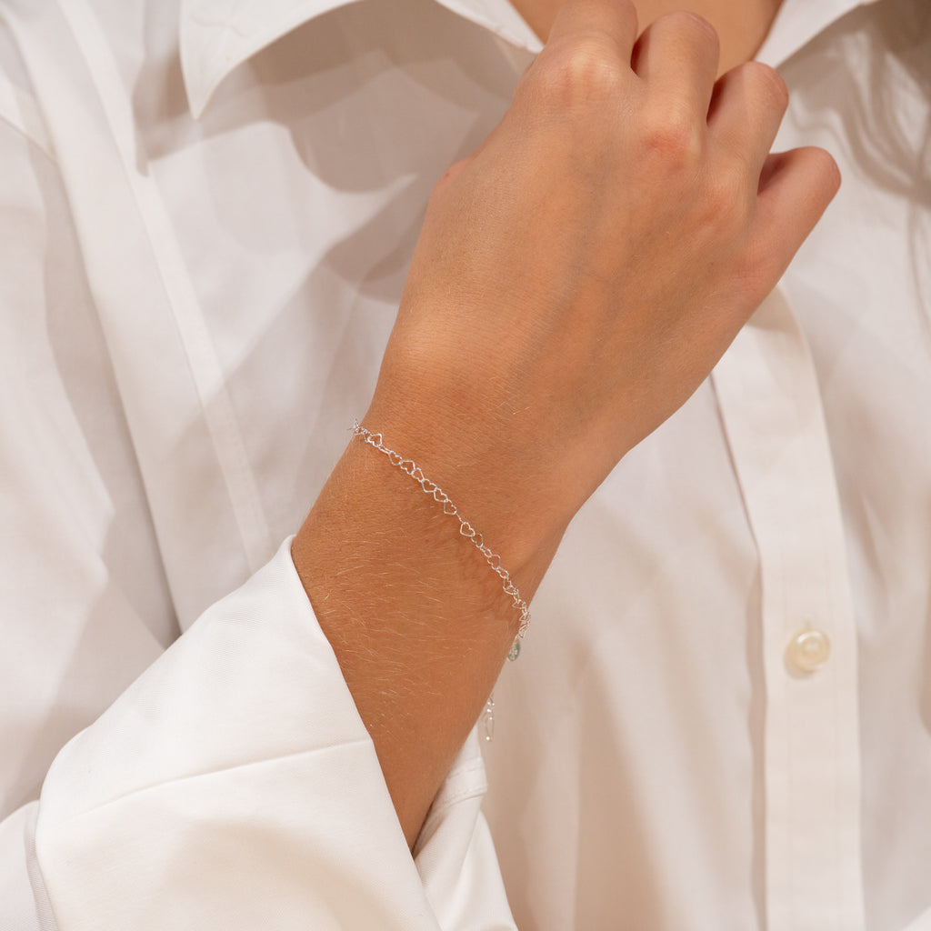 Armband med kedja av hjärtan i 925 sterlingsilver