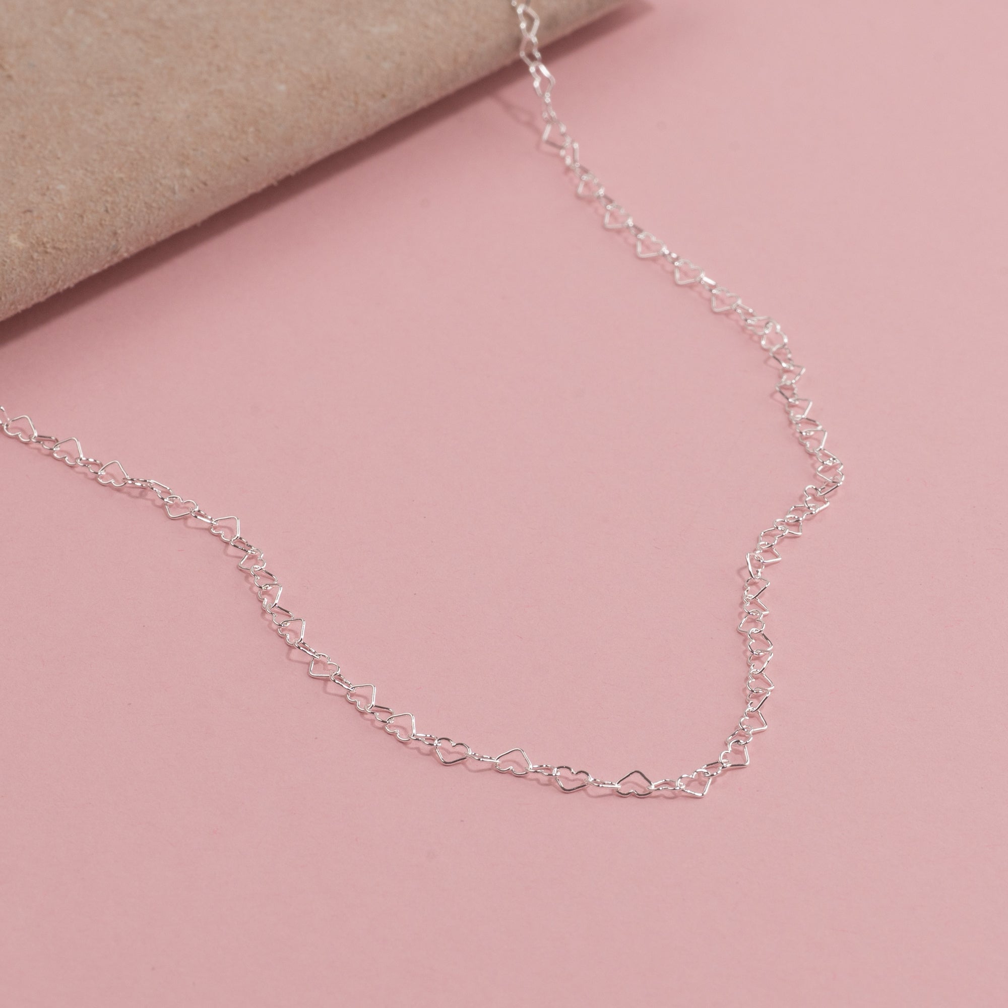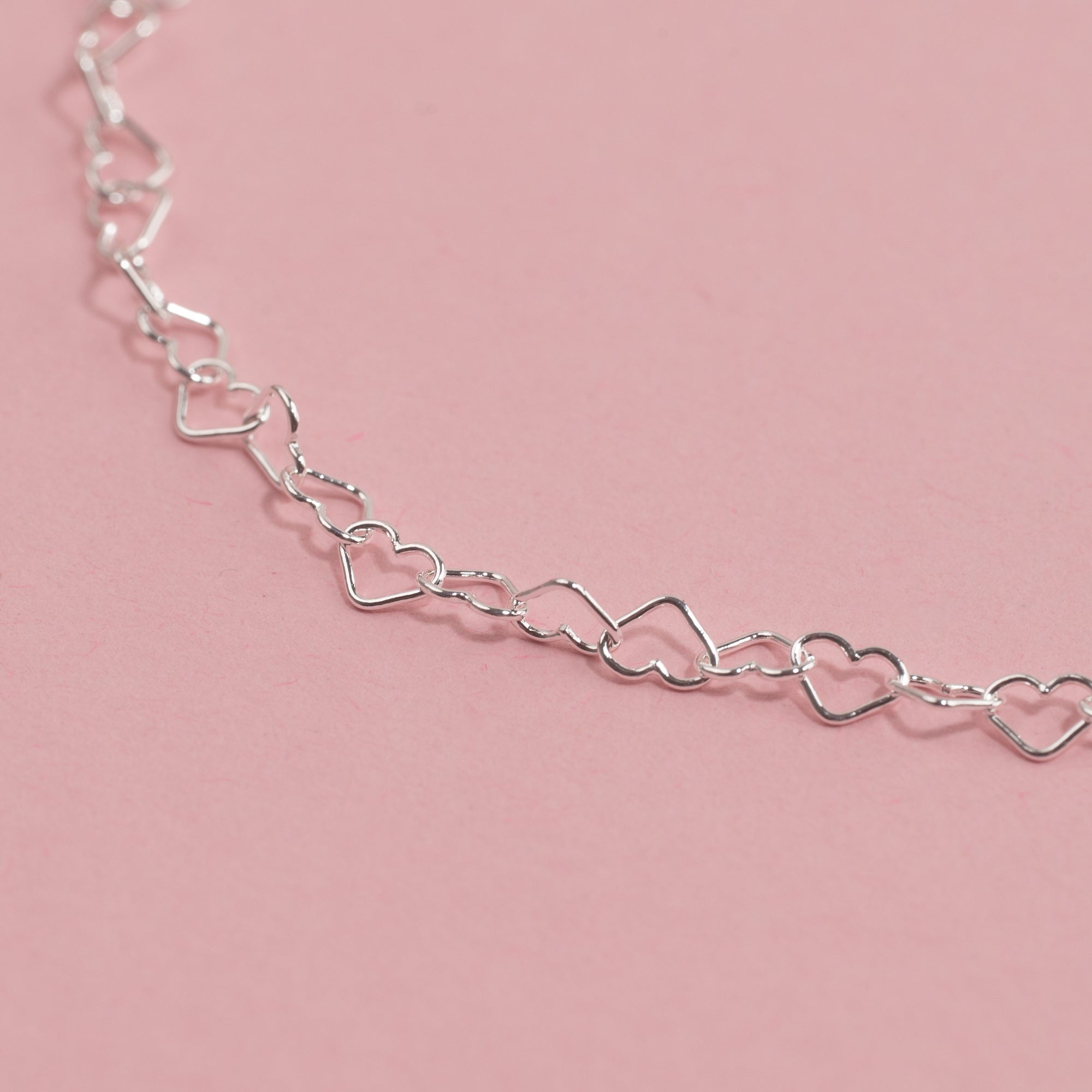 Halsbandet är tillverkat i 100% återvunnet 925 sterlingsilver och består av länkar formade som små öppna hjärtan hela vägen runt.