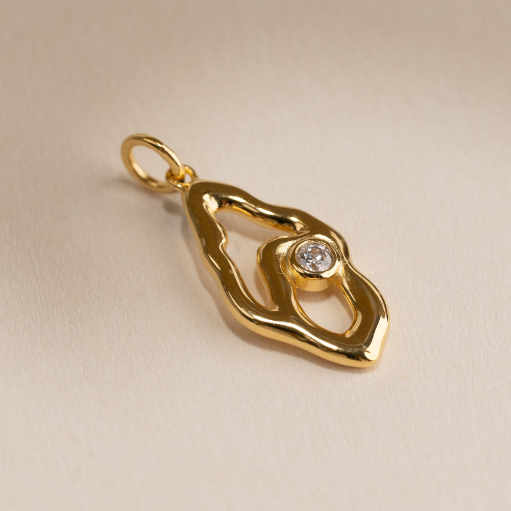 Berlock i 100% återvunnet 18 karat förgyllt sterlingsilver med en klar zirkon i en organisk design. Berlockens mjuka former skapar ett feminint och harmoniskt uttryck som drar blickarna till sig.