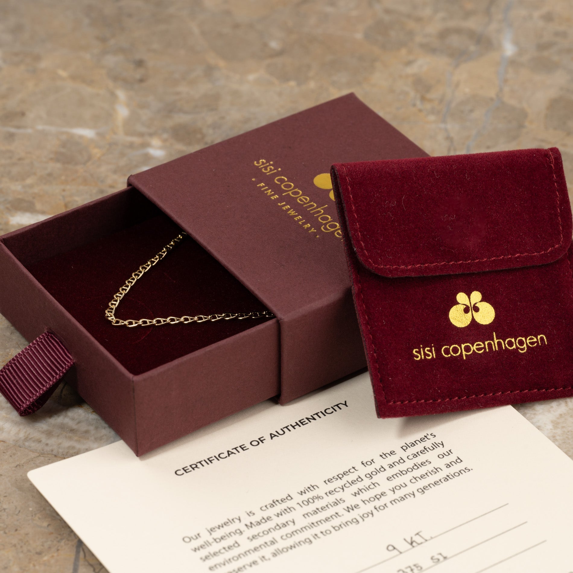 Smycket kommer i en fin Sisi Copenhagen smyckesask. Önskar du en exklusiv presentinslagning kan du lägga till vår fina velourpresentpåse i varukorgen.