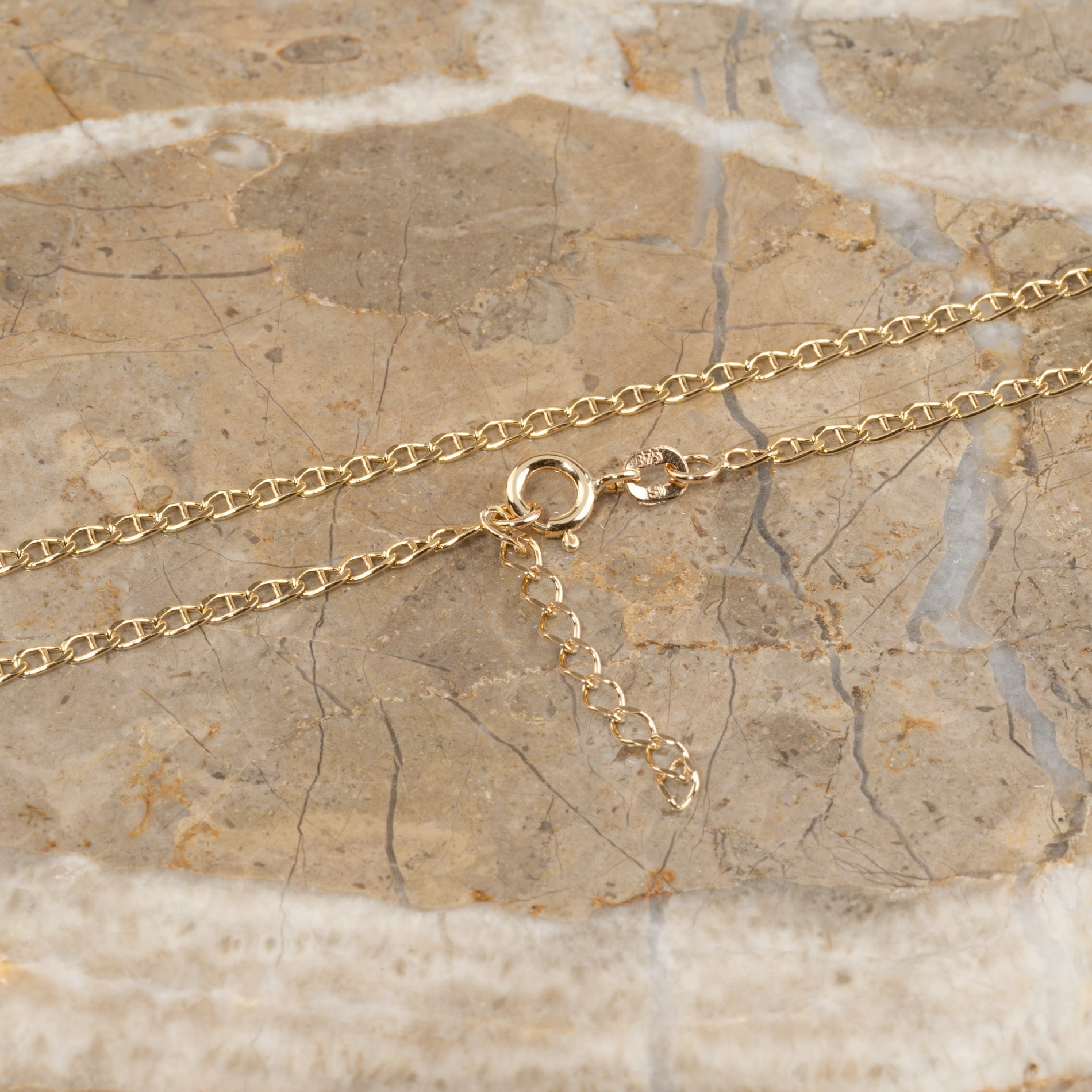 Kedjeleden är 2 mm i bredd och hela kedjans längd är 42 cm plus en förlängningsdel på 3 cm som ger en total längd på 45 cm.