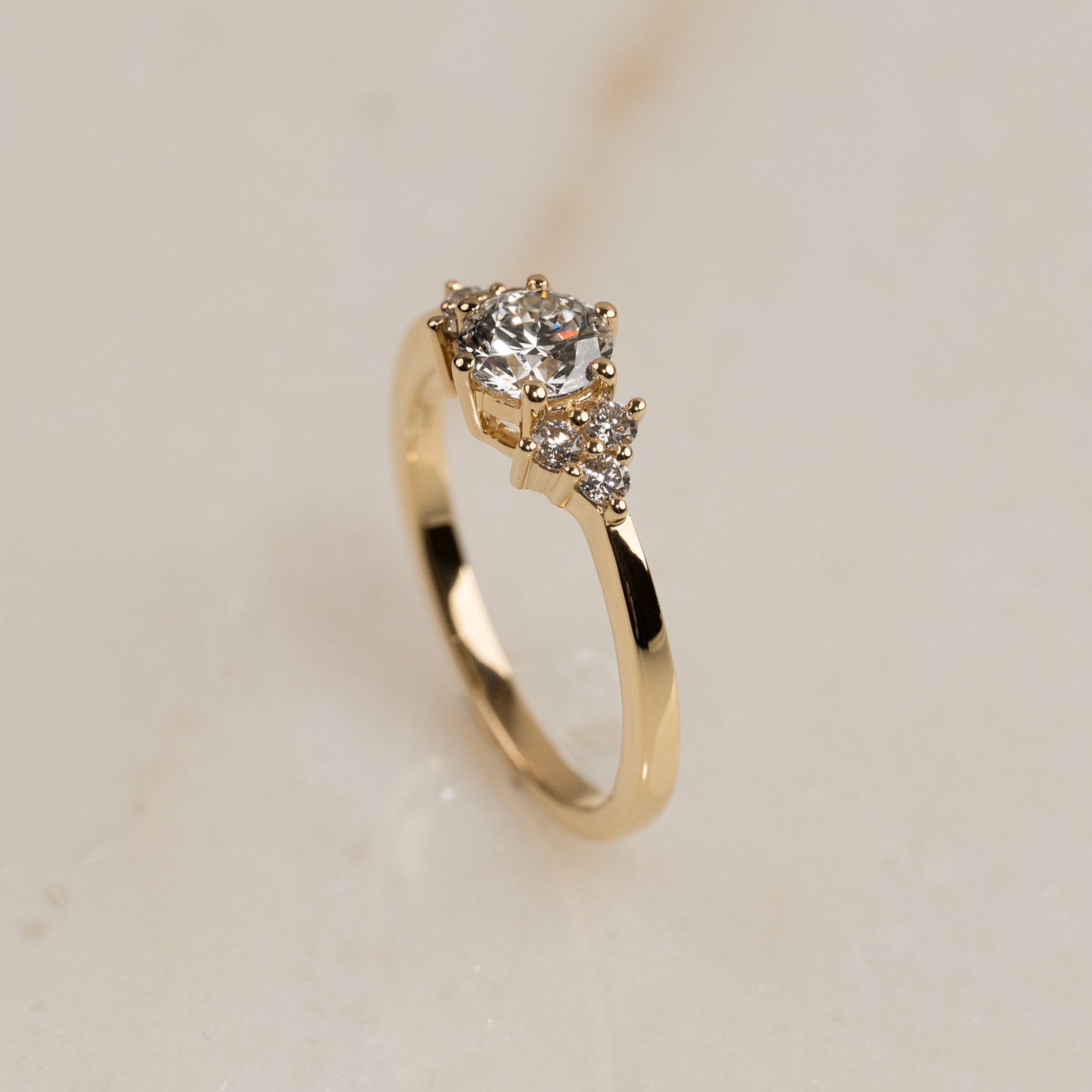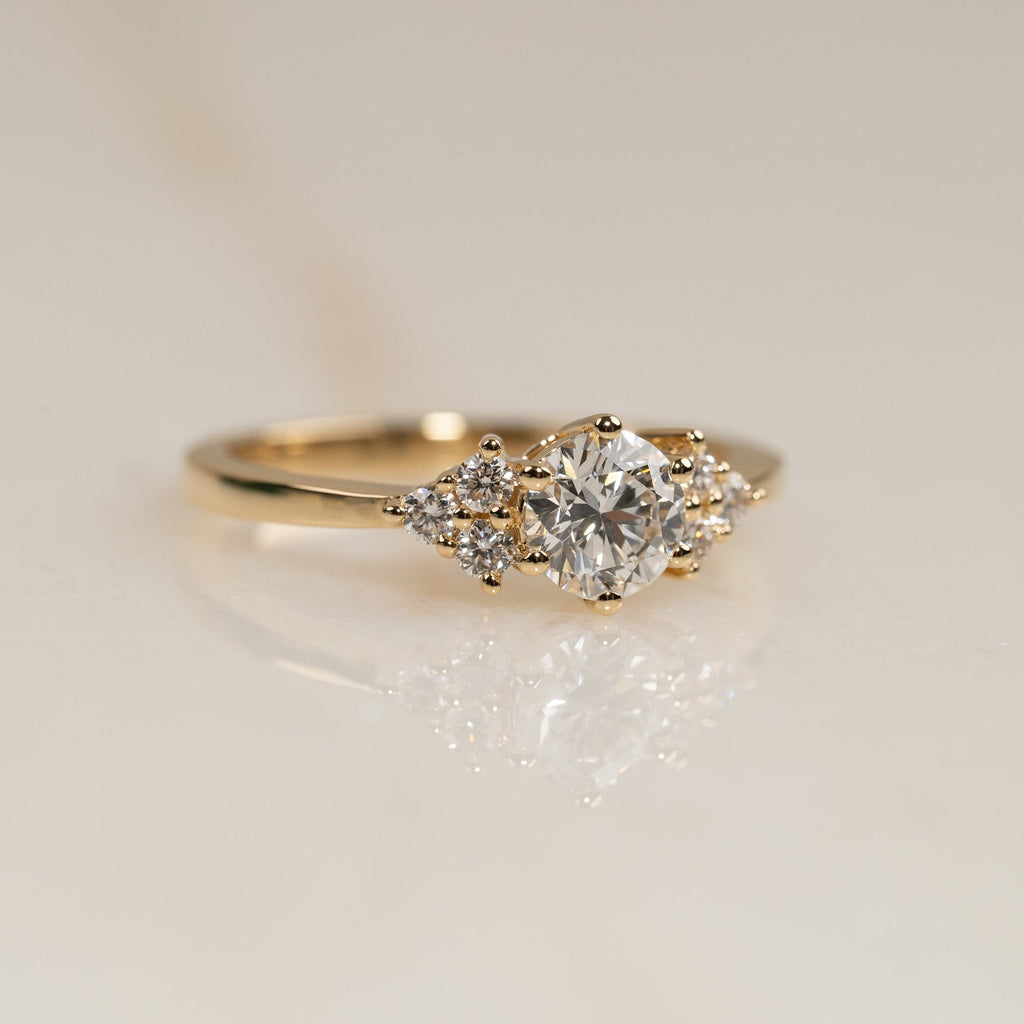 Bespoke design - cluster ring i 18 karat guld med 0,7 ct. labbodlad mittsten och mindre sidostenar