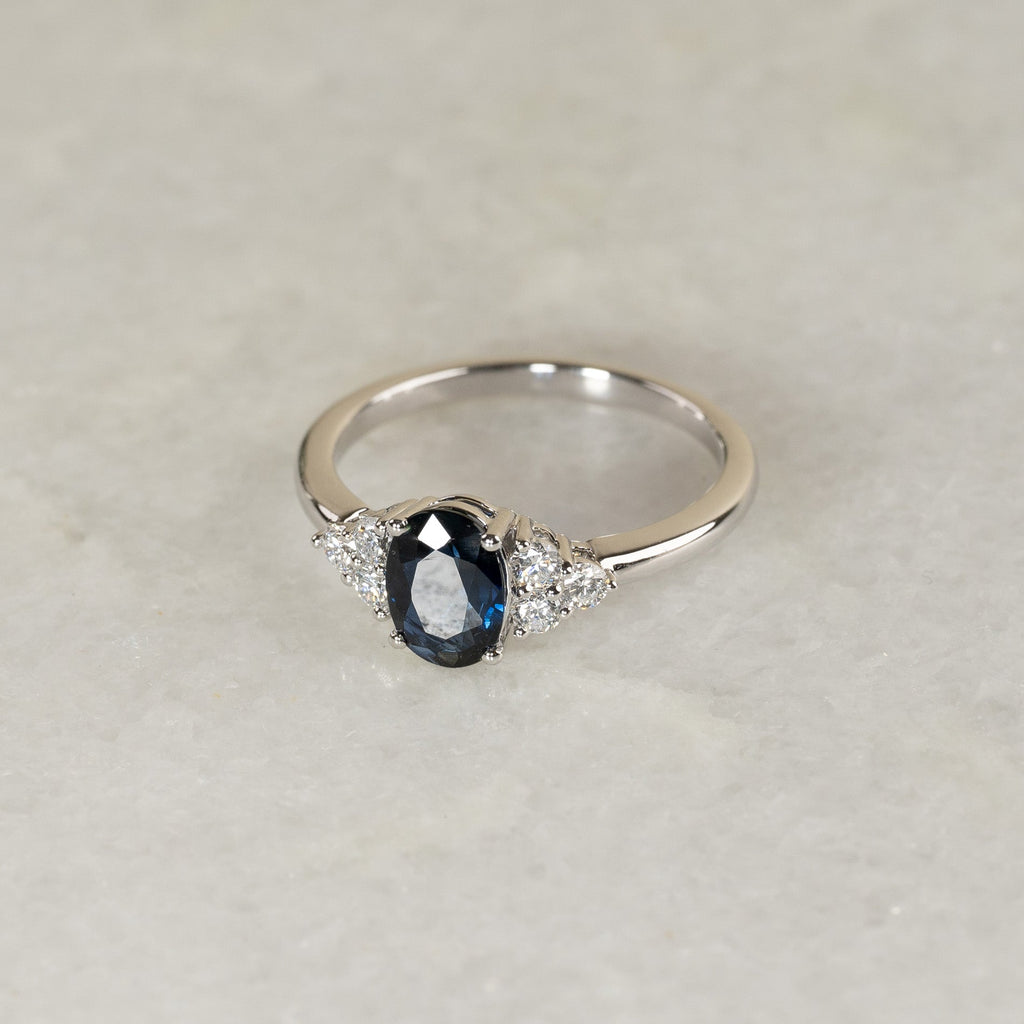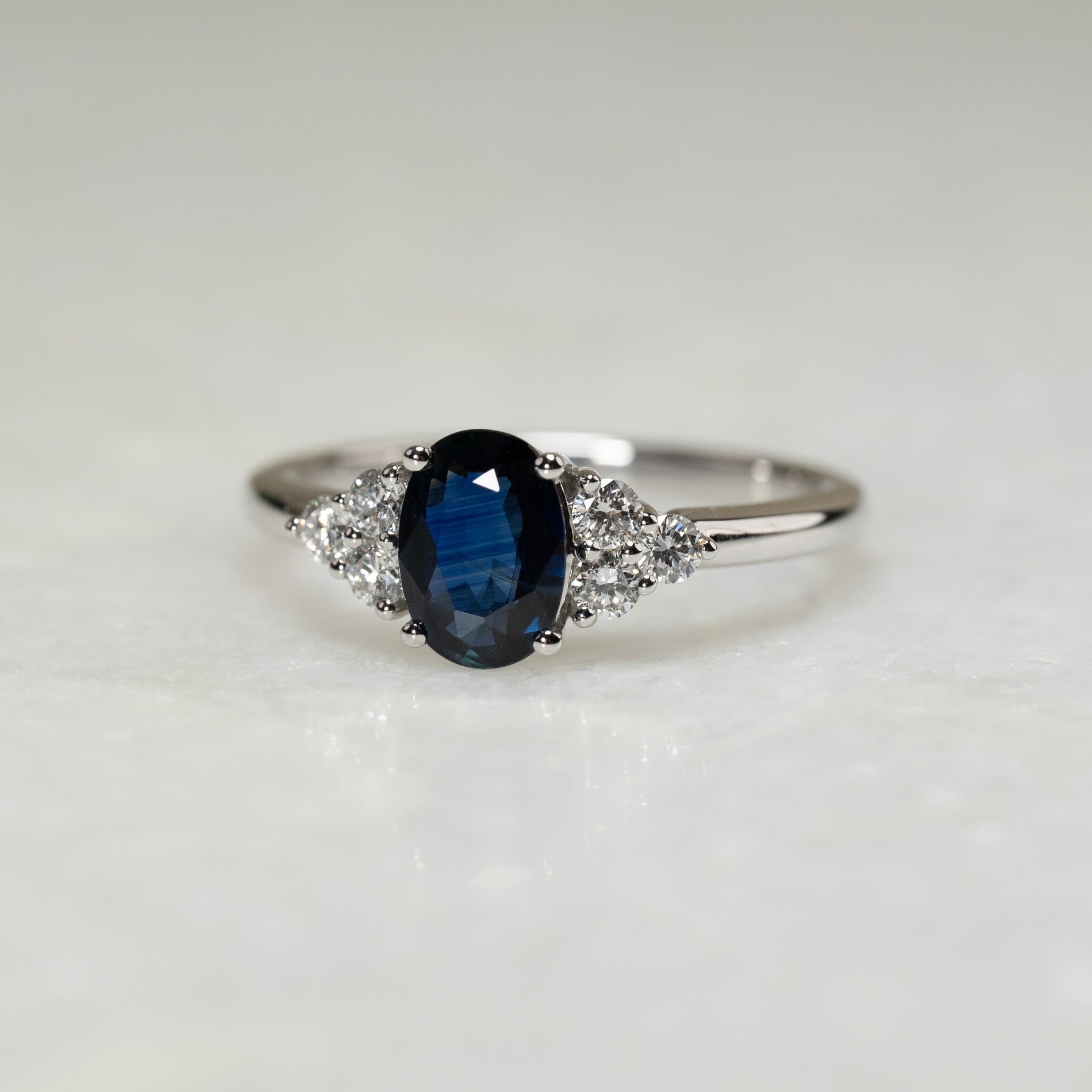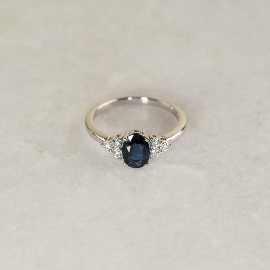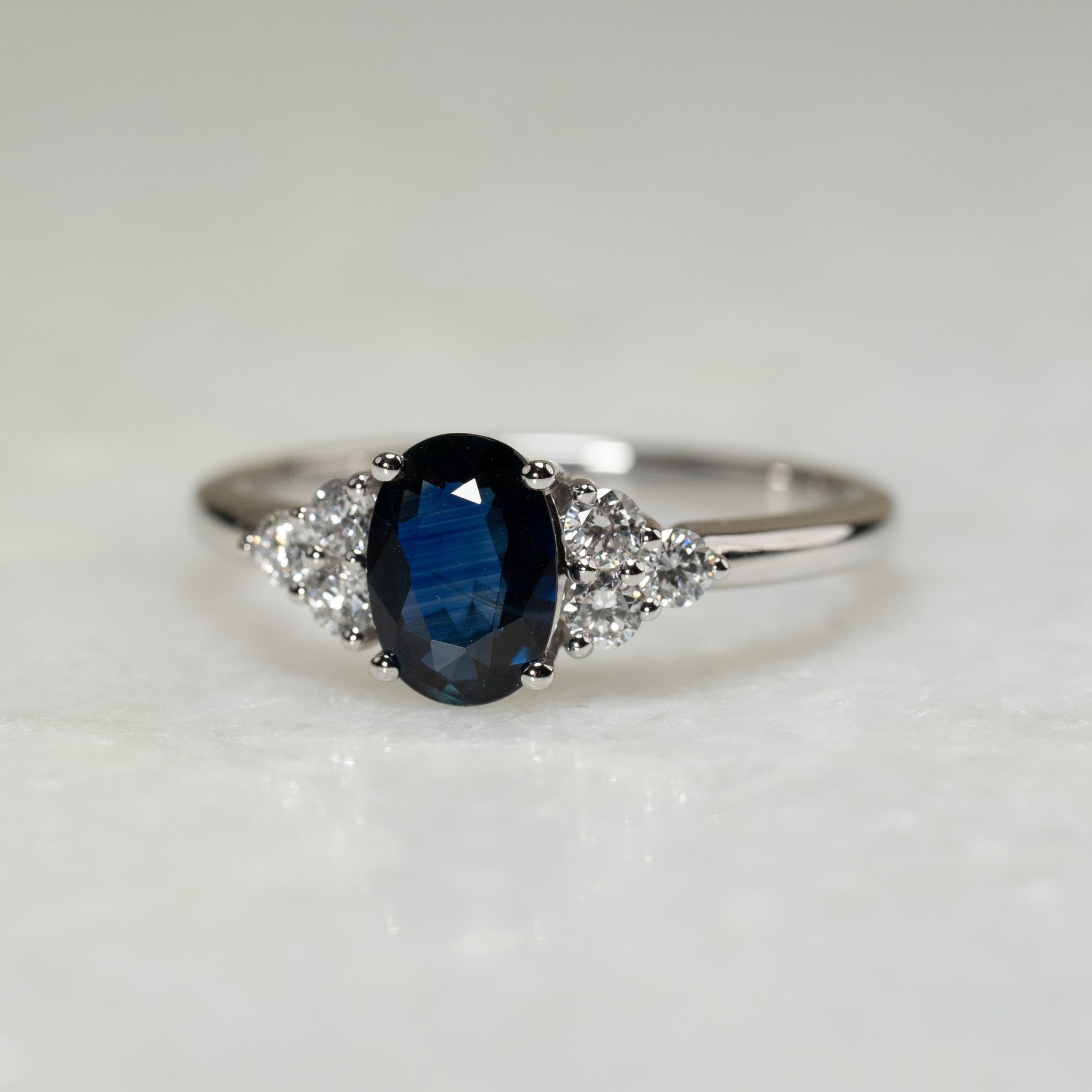 BLUE OVAL 1.0ct SAPPHIRE & 0.35ct DIAMOND RING
