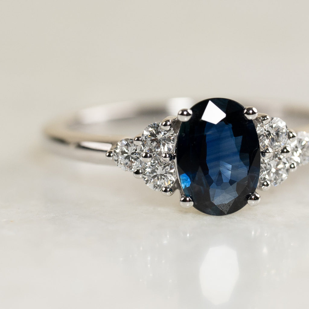 14kt White Gold | 1.0ct natural sapphire and lab-grown diamond
