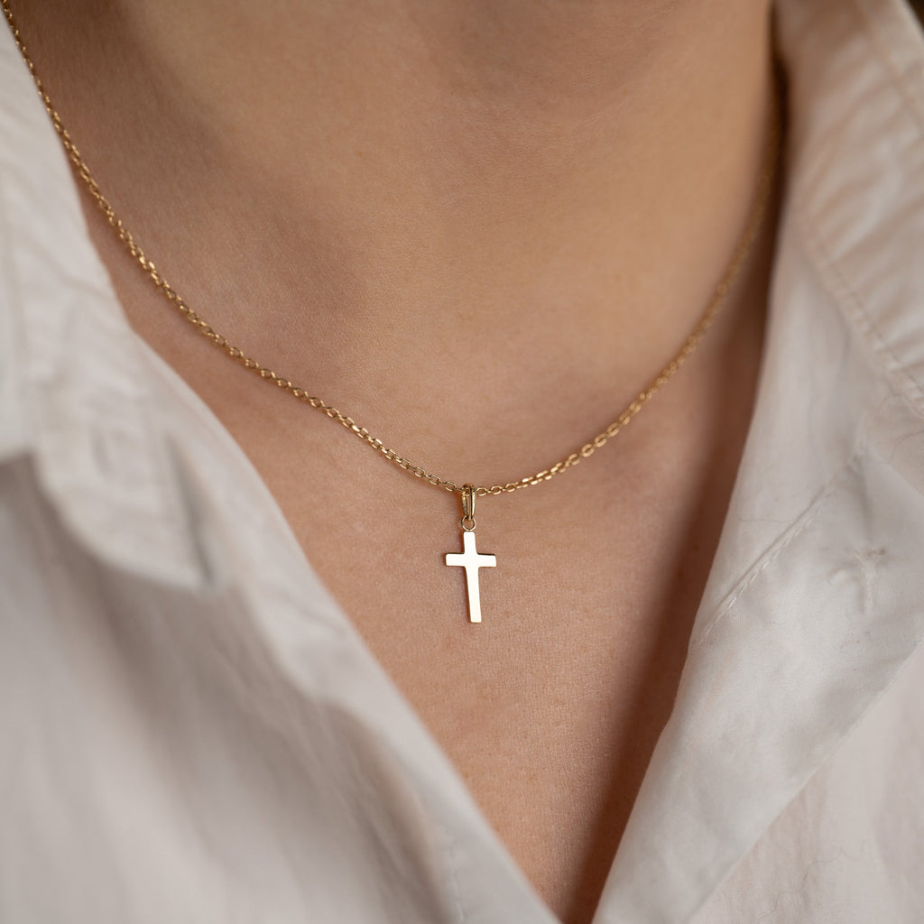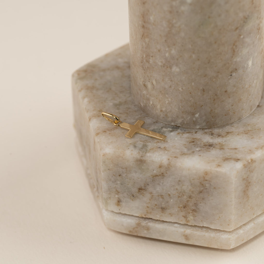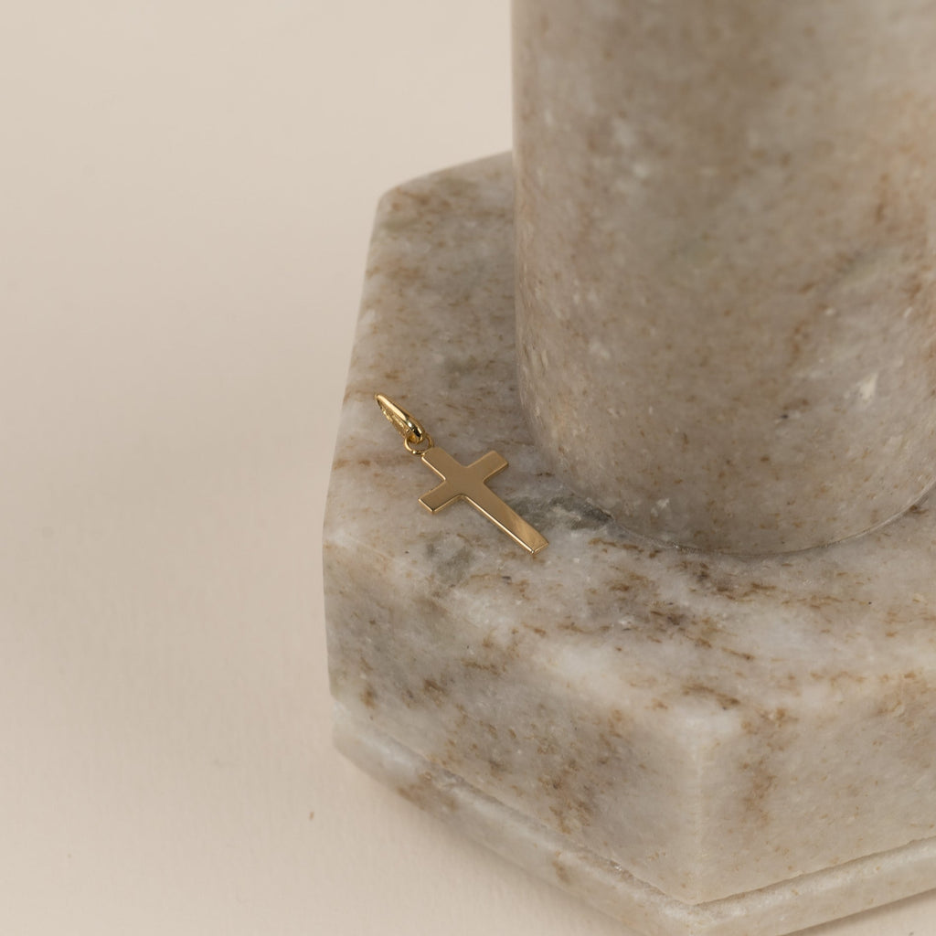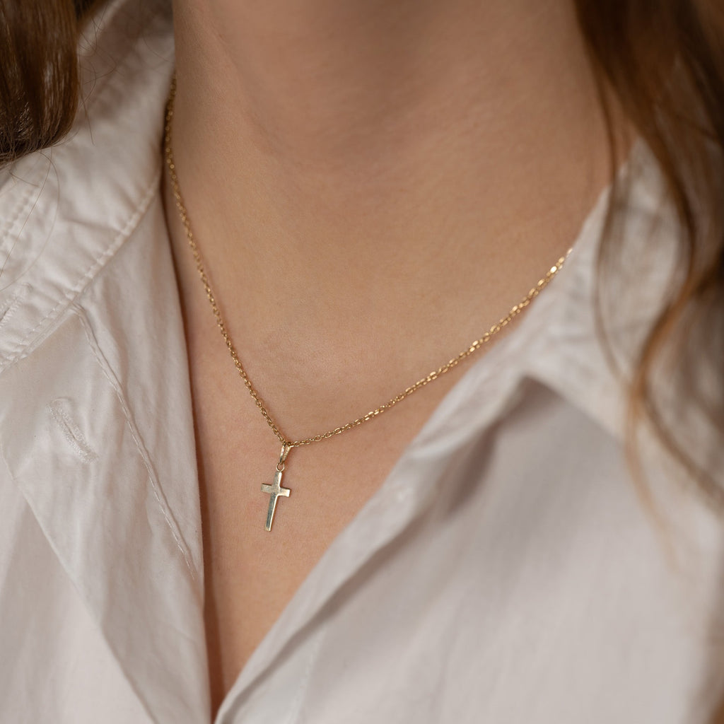 Korshänge i 100% återvunnet 9 karats guld. Hänget har en enkel och elegant design och kan bäras som en liten kristen symbol eller t.ex. ges i konfirmations gåva. Själva korset mäter 13x8 mm.