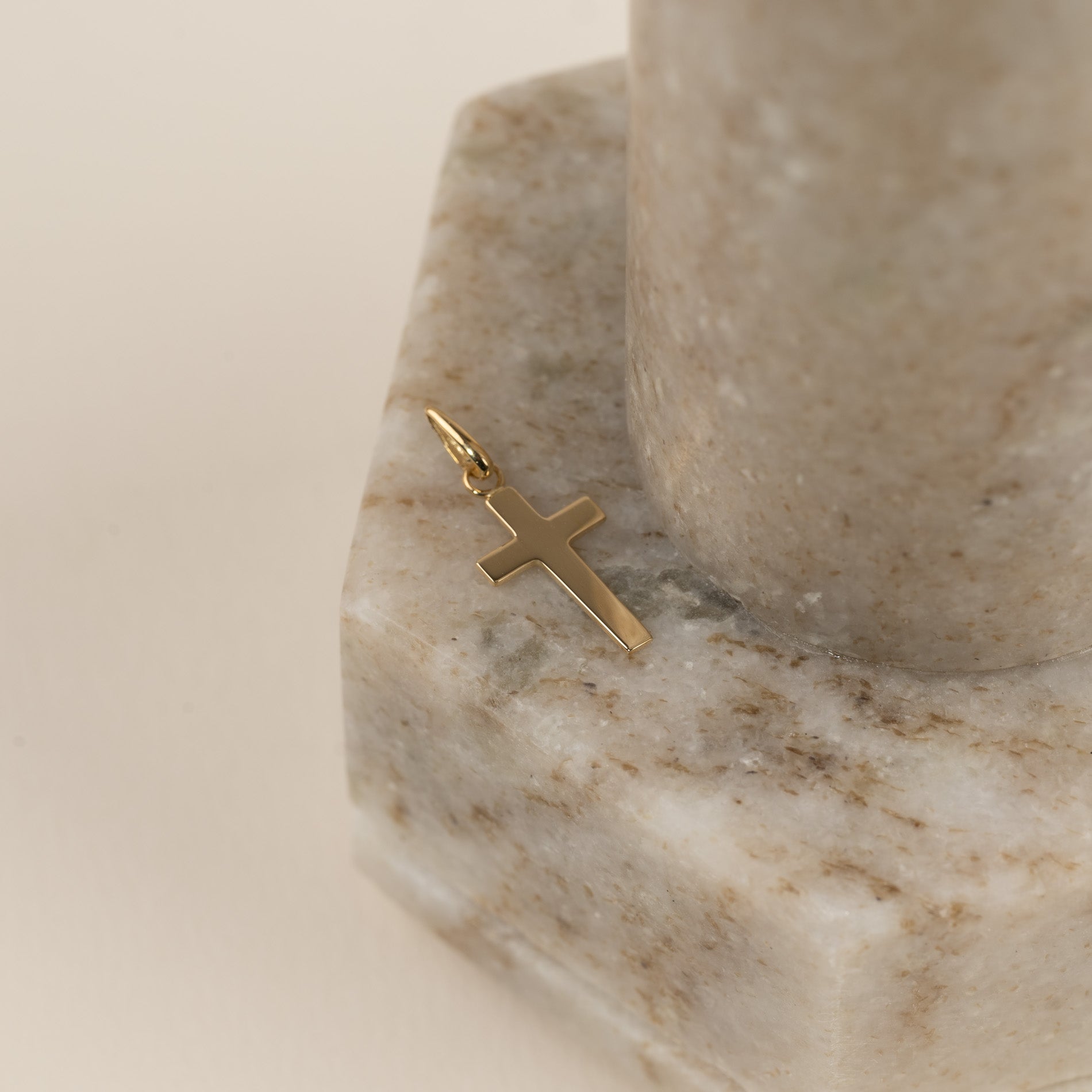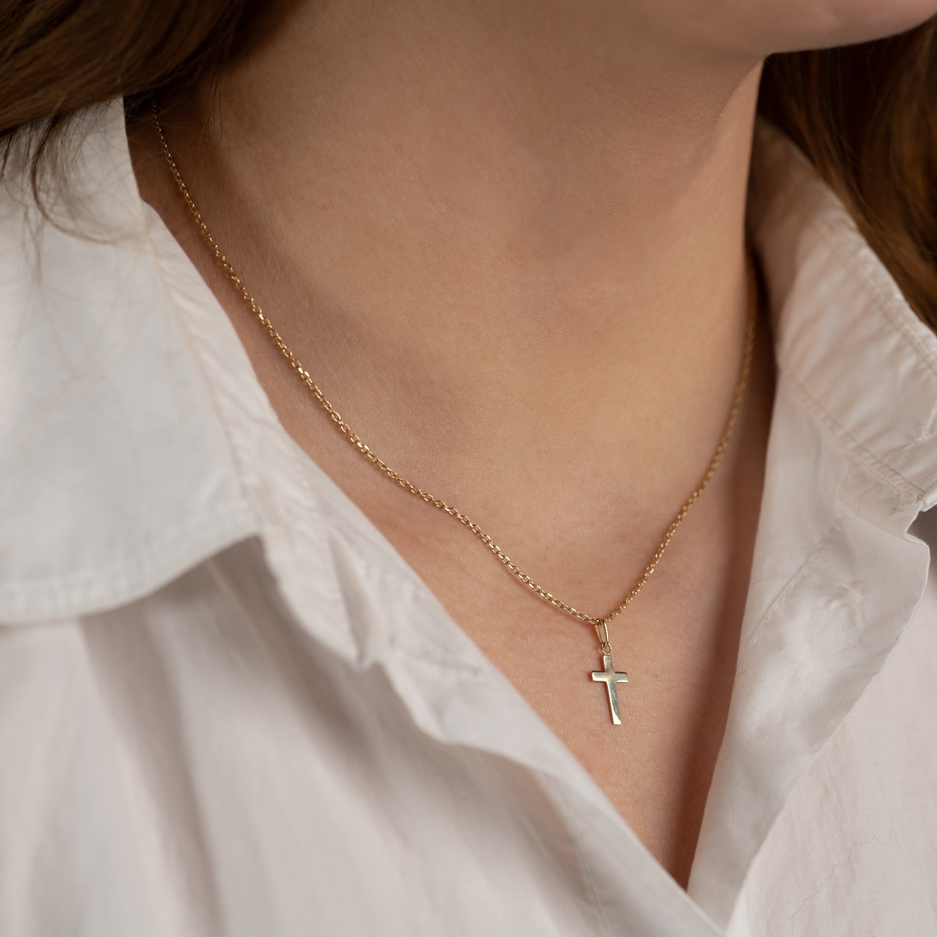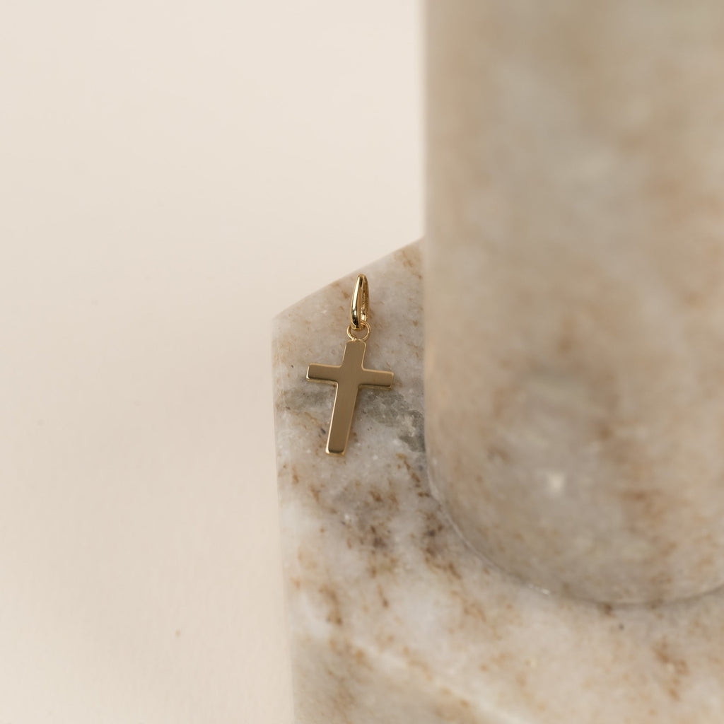 Korshänge i 100% återvunnet 9 karats guld. Hänget har en enkel och elegant design och kan bäras som en liten kristen symbol eller t.ex. ges i konfirmations gåva. Själva korset mäter 13x8 mm.