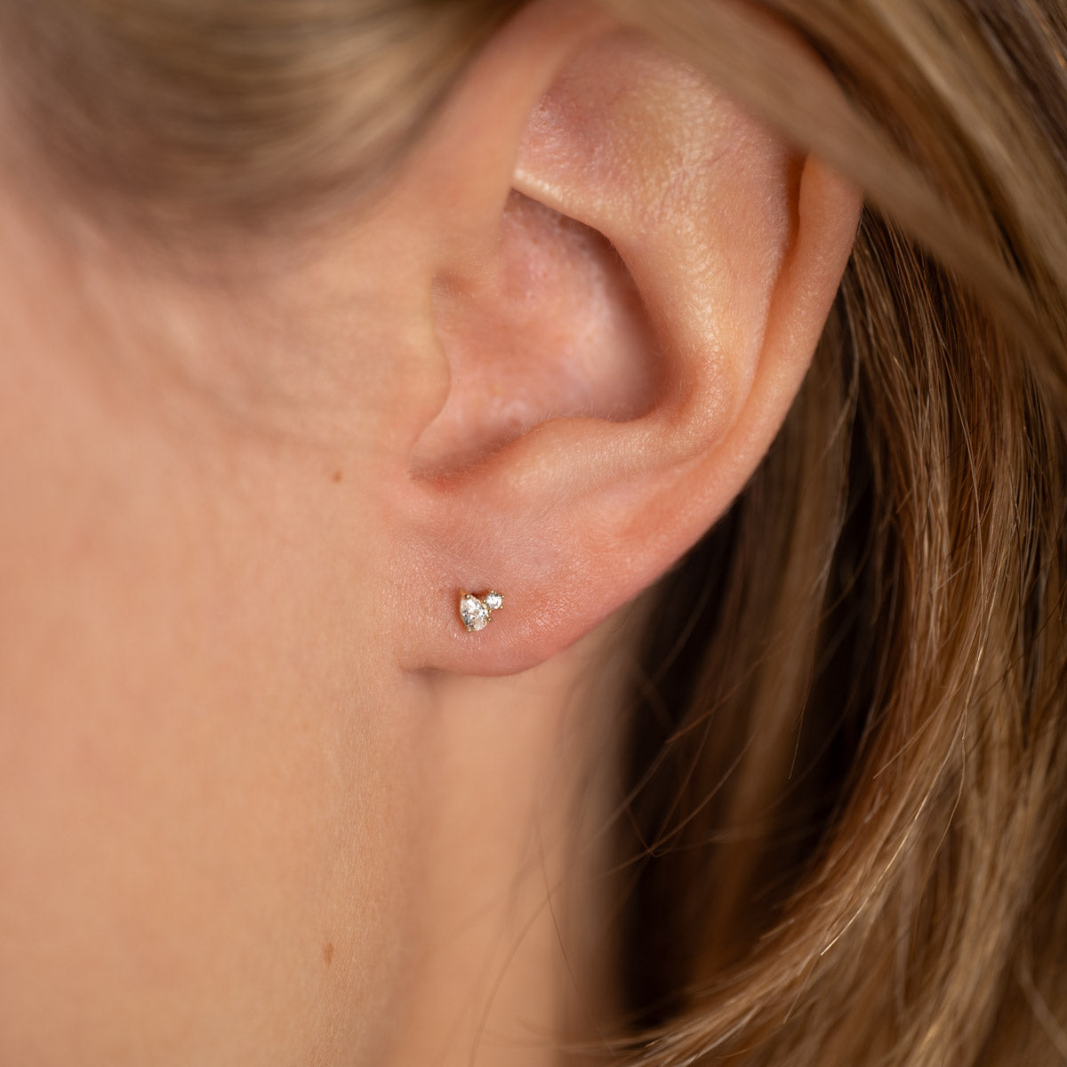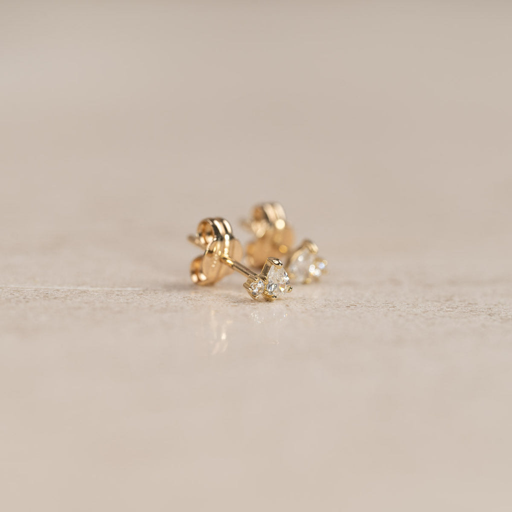 Ciela örstickor är tillverkade av 100% återvunnet massivt 9 karat guld. Örstickorna består av en liten rund cubic zirkonia och en något större droppformad cubic zirkonia i en liten kluster. Örstickorna är otroligt eleganta och feminina. Dessutom är de perfekta att kombinera med andra örhängen om du har flera hål i öronen eller att bära ensamma.