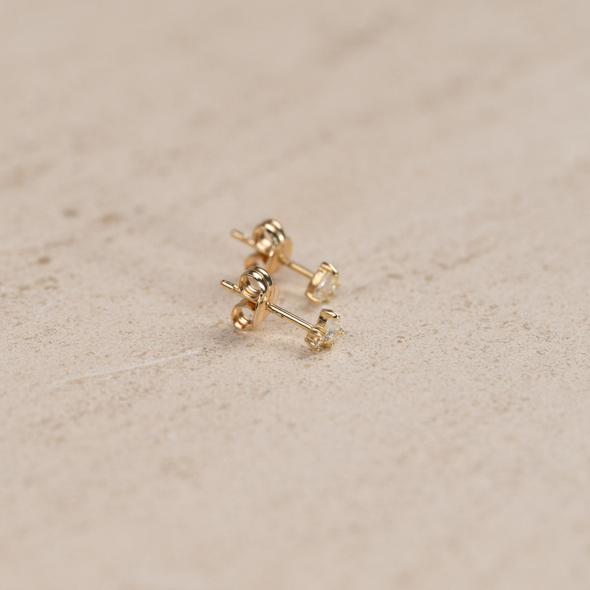 Guldvikten för örhängena är 0,36 gram. Örstickorna mäter cirka 3 mm i bredd.