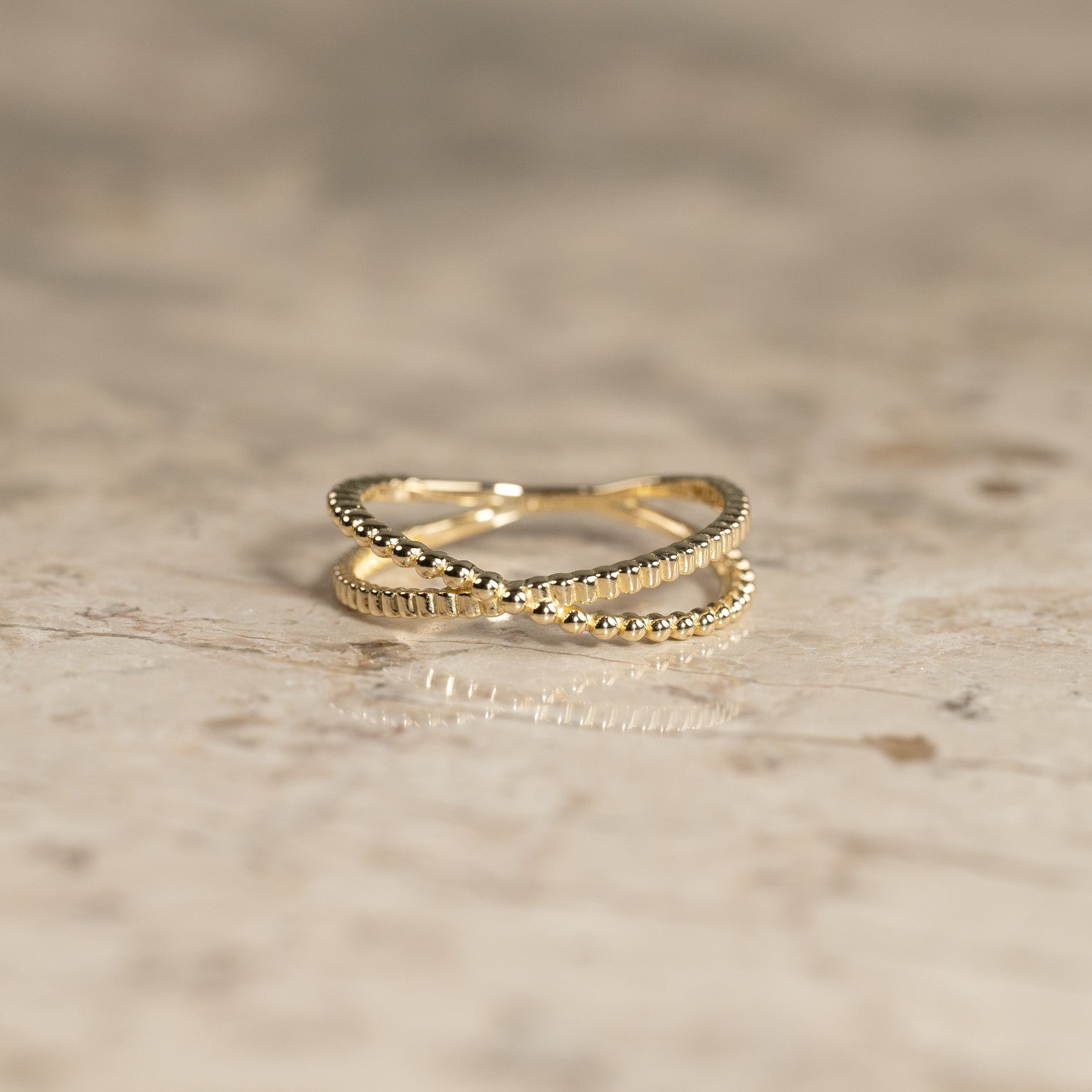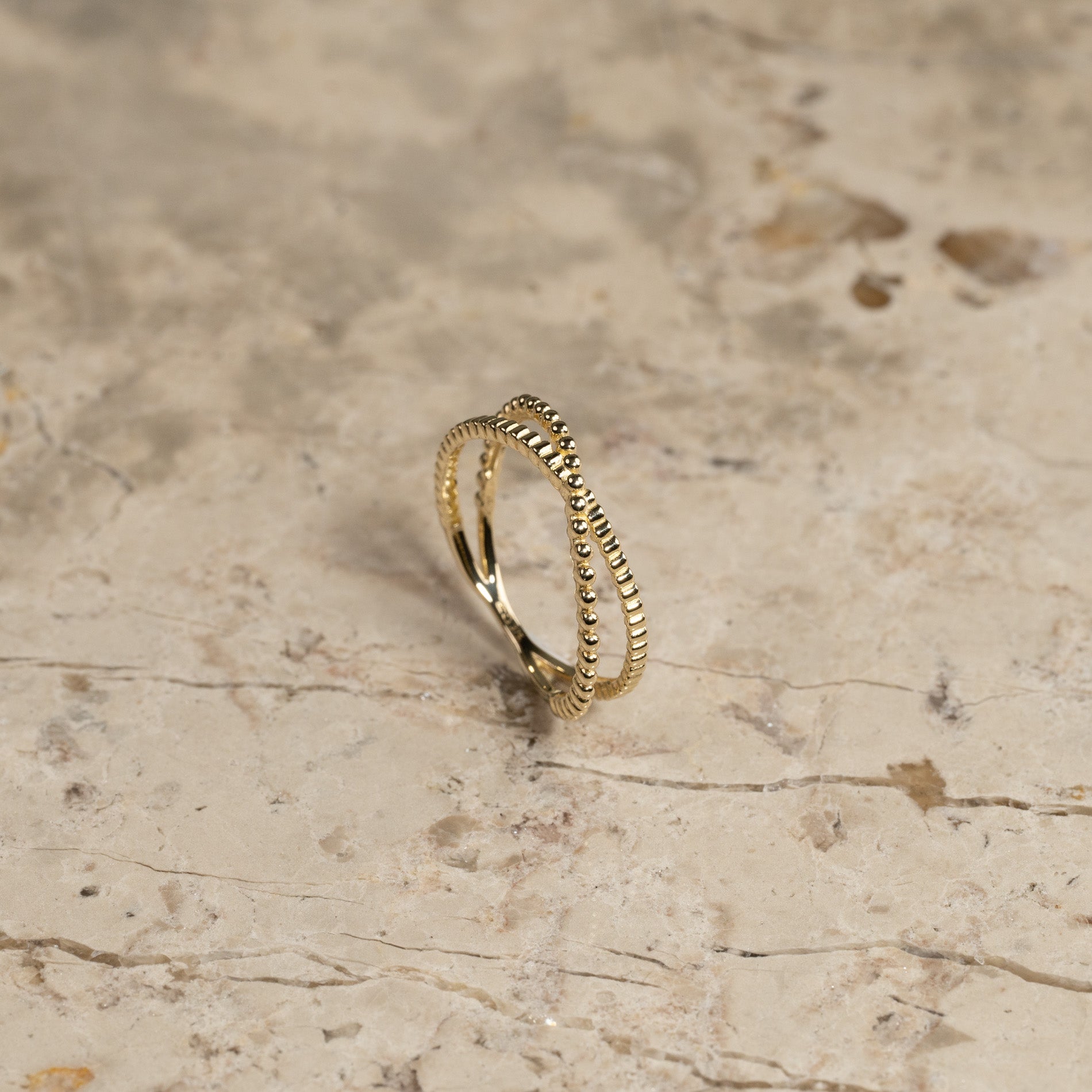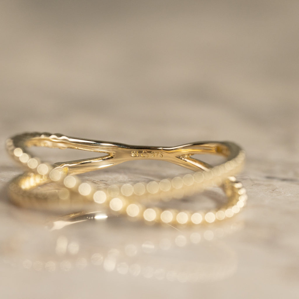 Ring tillverkad av 100 % återvunnet massivt 9 karat guld. Ringen har ett elegant kryssmönster med unika detaljer som gör den både vacker och mångsidig - perfekt att bära ensam eller i kombination med våra andra ringar.