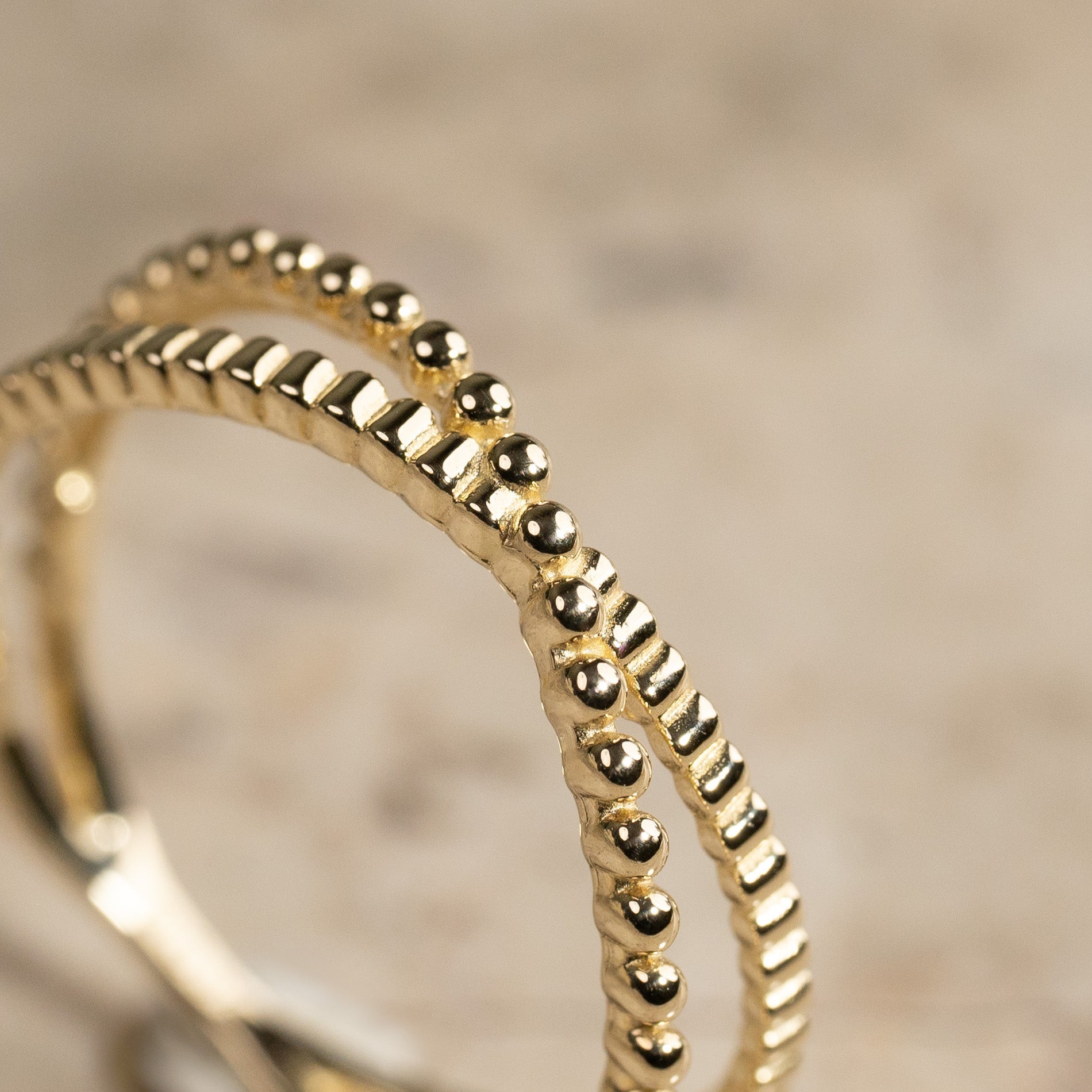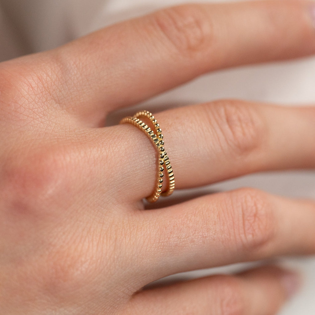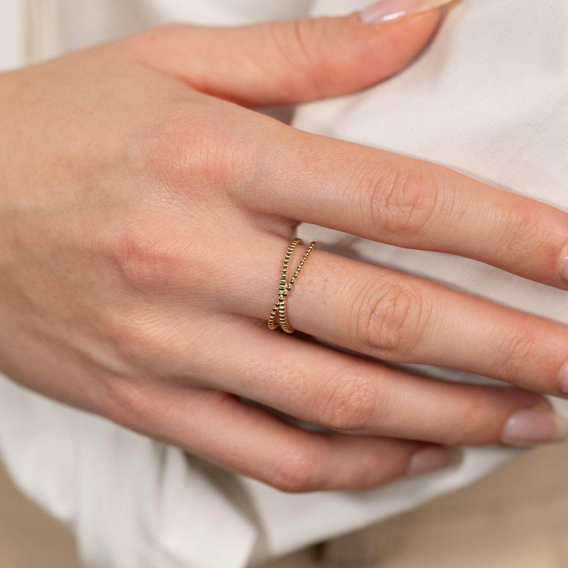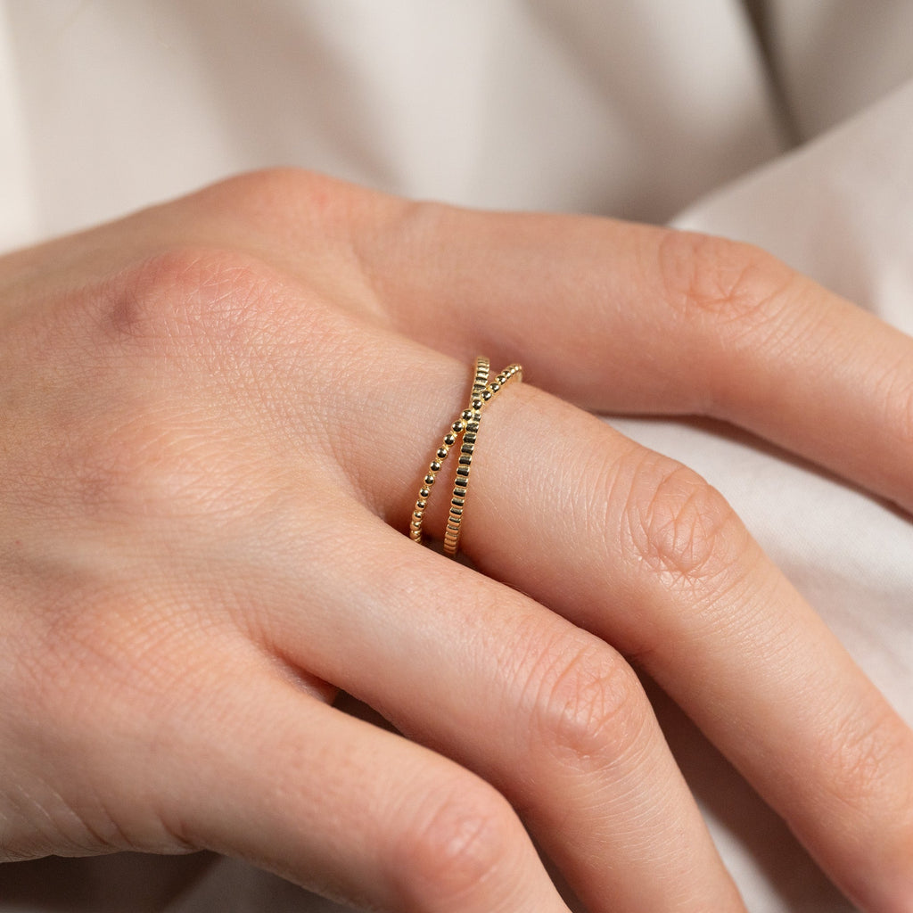 Ring tillverkad av 100 % återvunnet massivt 9 karat guld. Ringen har ett elegant kryssmönster med unika detaljer som gör den både vacker och mångsidig - perfekt att bära ensam eller i kombination med våra andra ringar.
