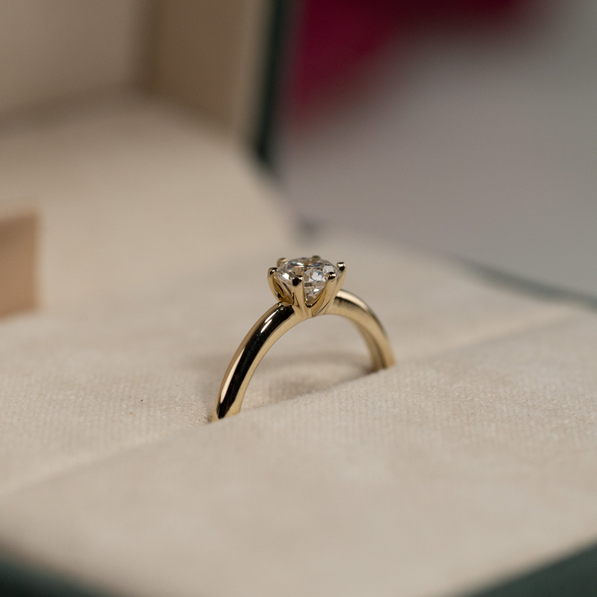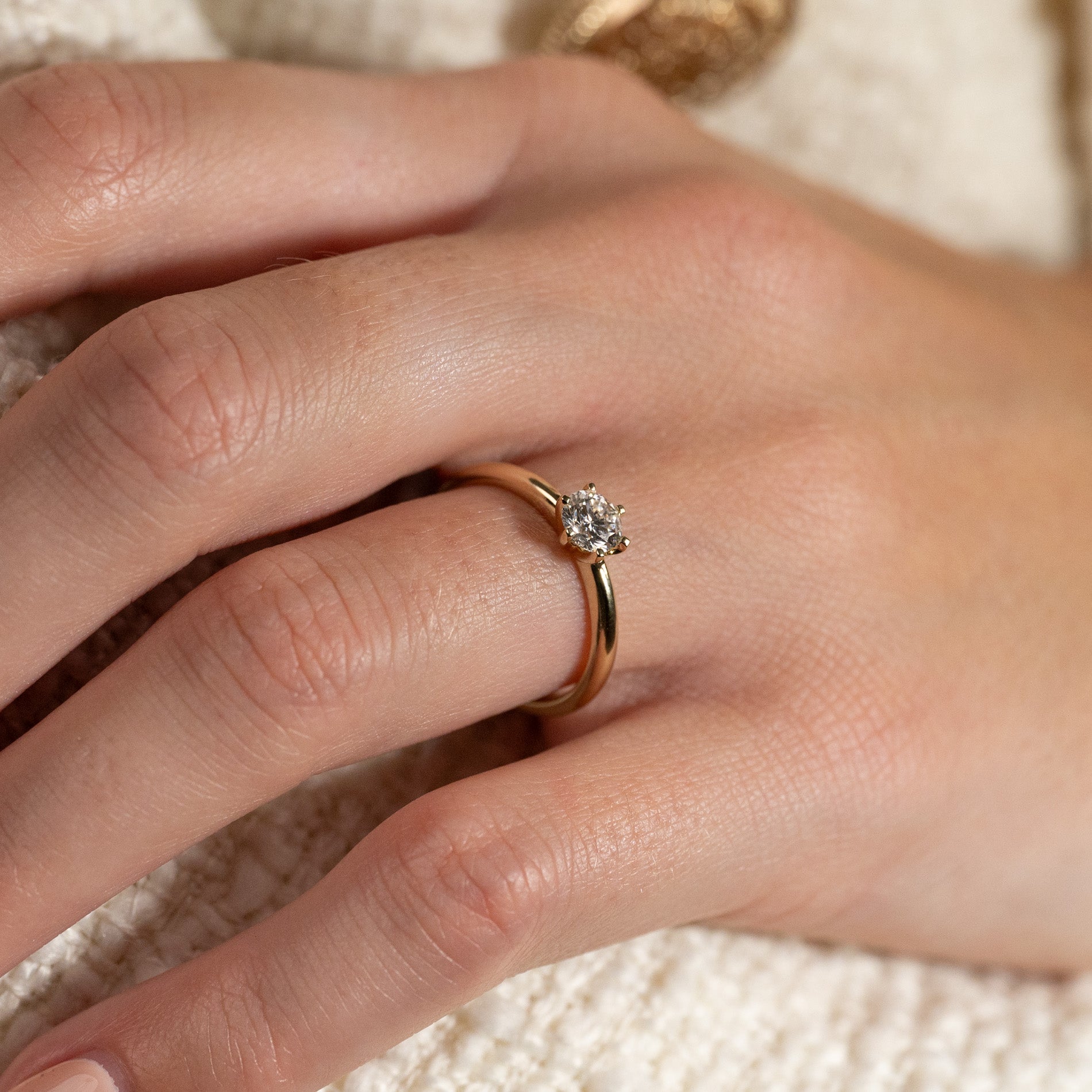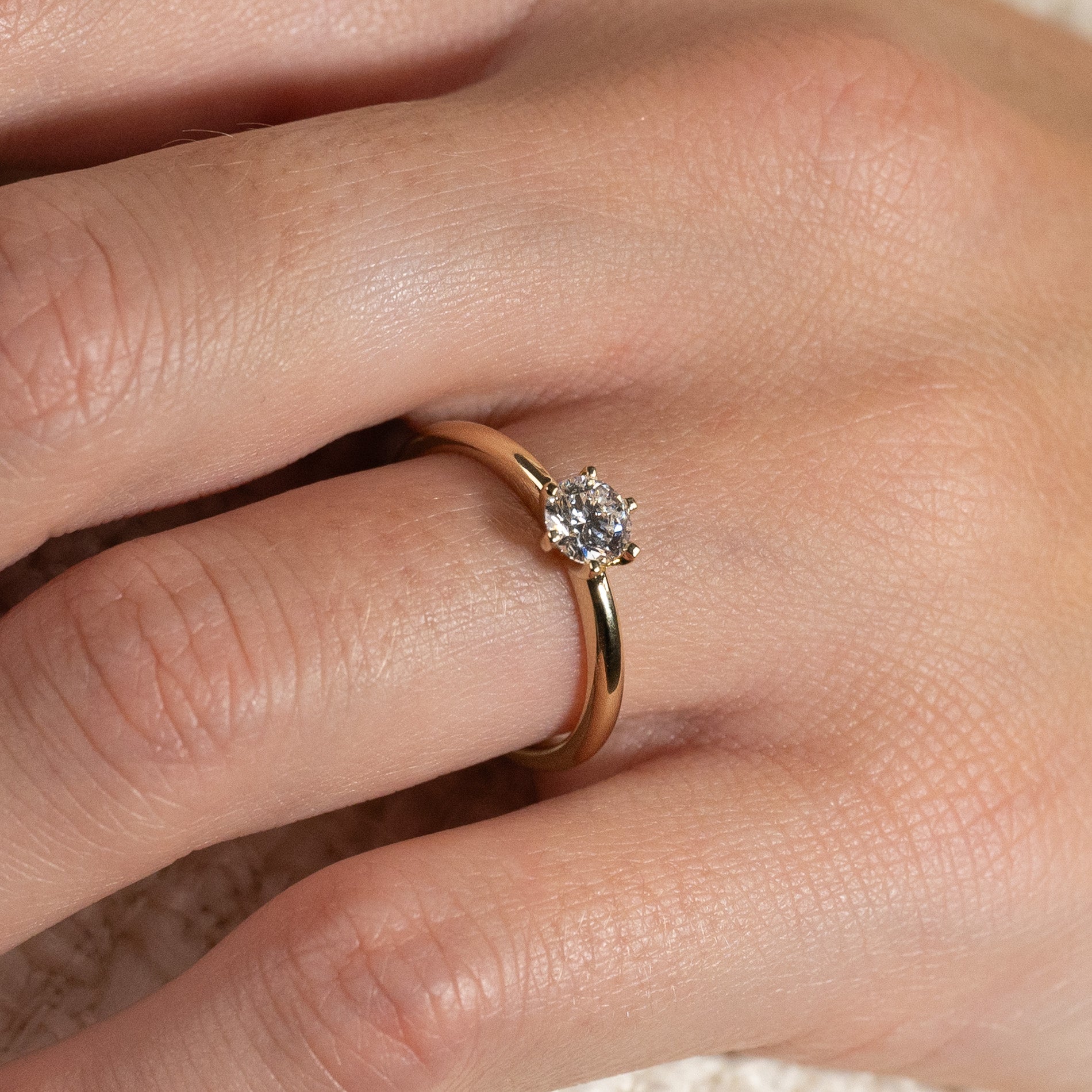 Diamantring i 14 karat guld med en 0,5 ct labbodlad briljantslipad diamant. Diamanten är infattad i en låg, klassisk fattning med sex klor. Ringen är ett tidlöst och elegant smycke som passar vid alla tillfällen - även som förlovningsring.