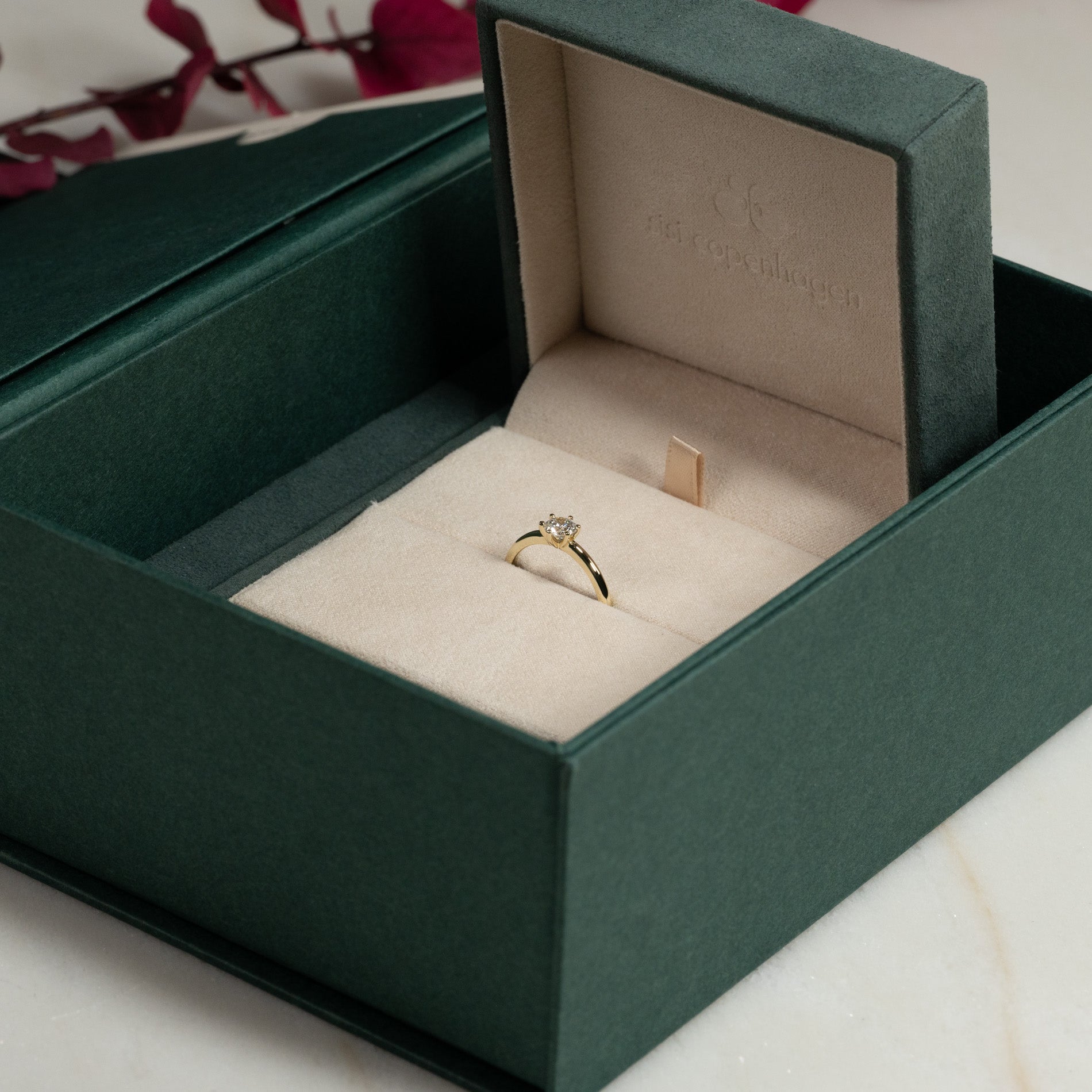 Ringen levereras i vår exklusiva Diamond Collection-box, som innehåller en elegant smyckesask, certifikat och en smyckespåse. Boxen är dessutom perfekt om smycket ska ges bort som gåva.