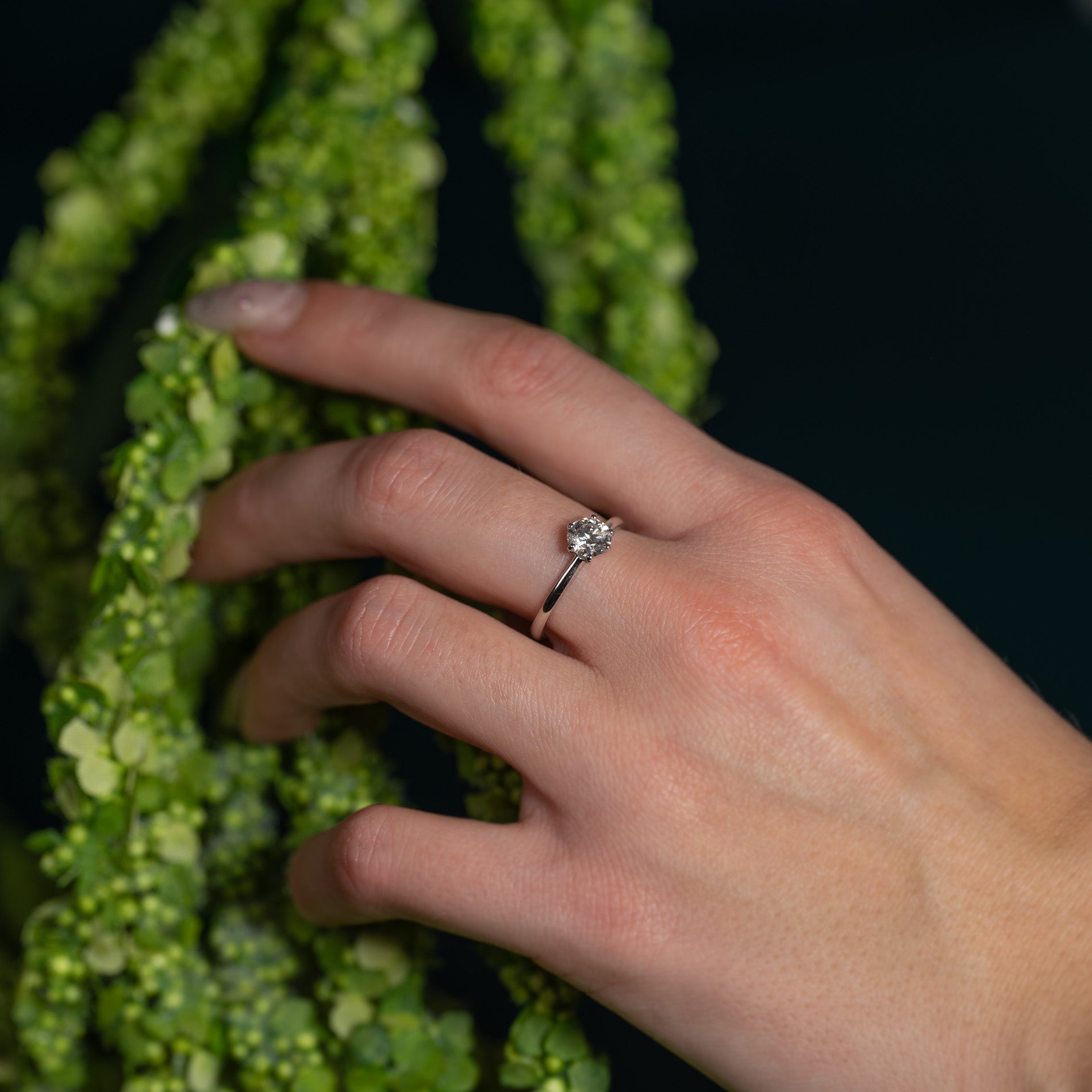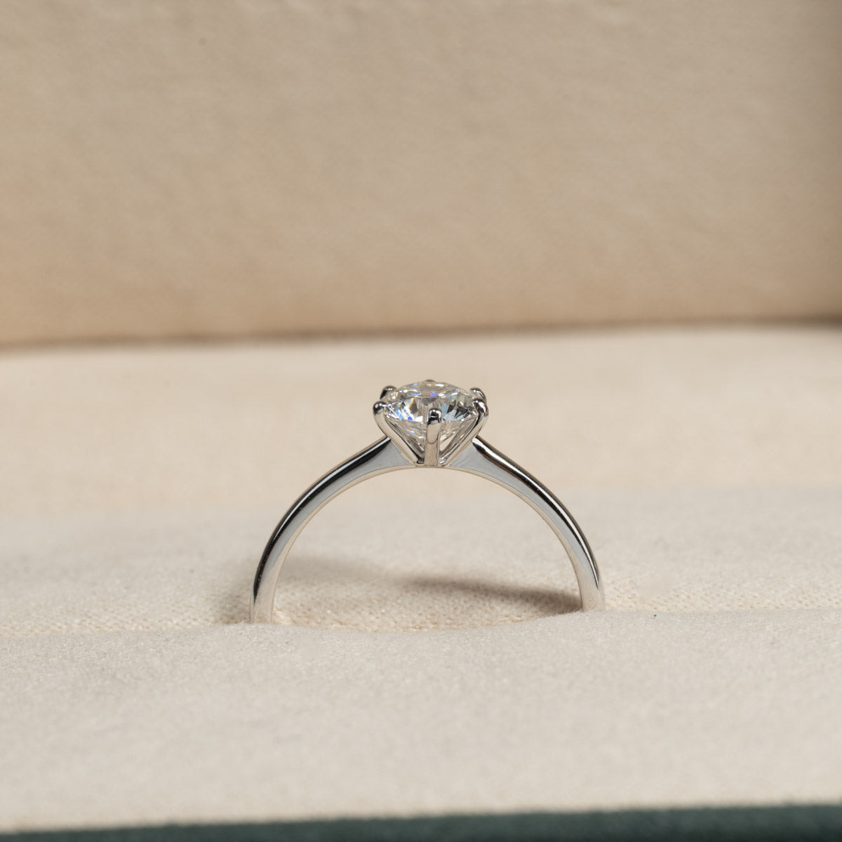 Diamantring i 14 karat vitguld med en 0,75 ct. labbodlad briljantslipad diamant. Diamanten är infattad i en låg, klassisk infattning med 6 klor. Ringen är ett klassiskt och elegant smycke som passar till alla tillfällen. Ringen är också ett vackert val av förlovningsring.