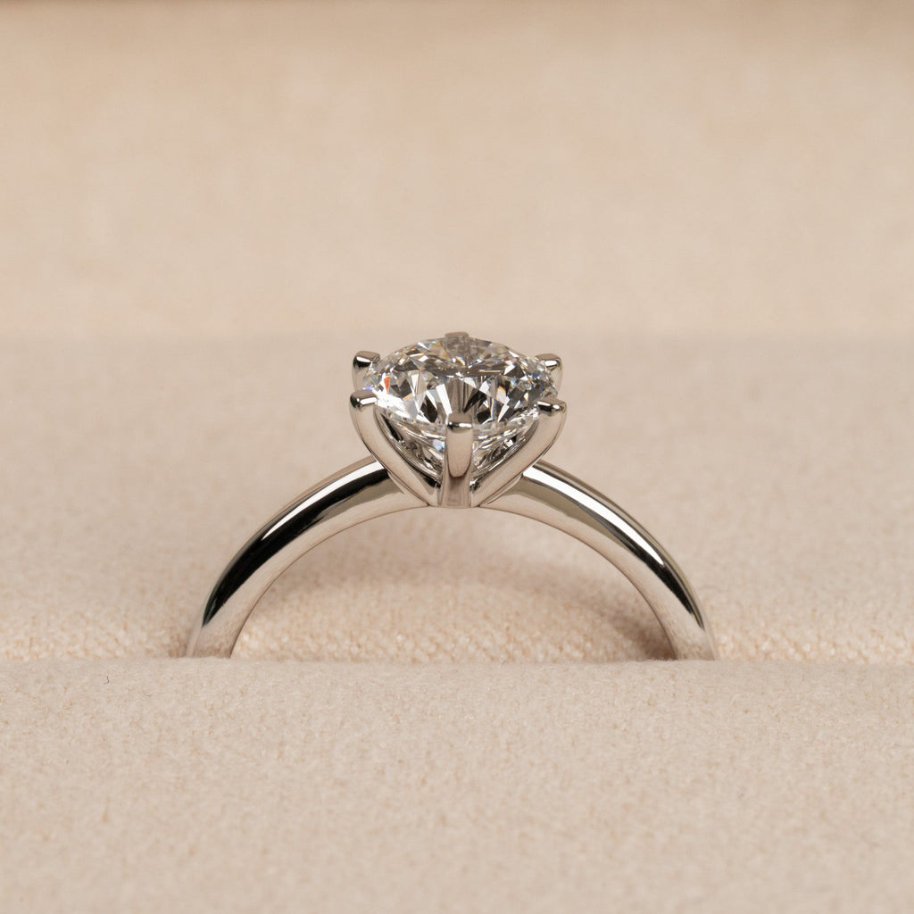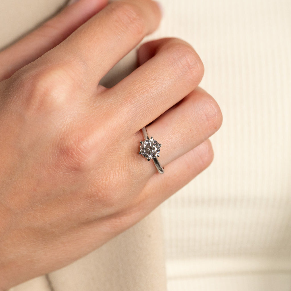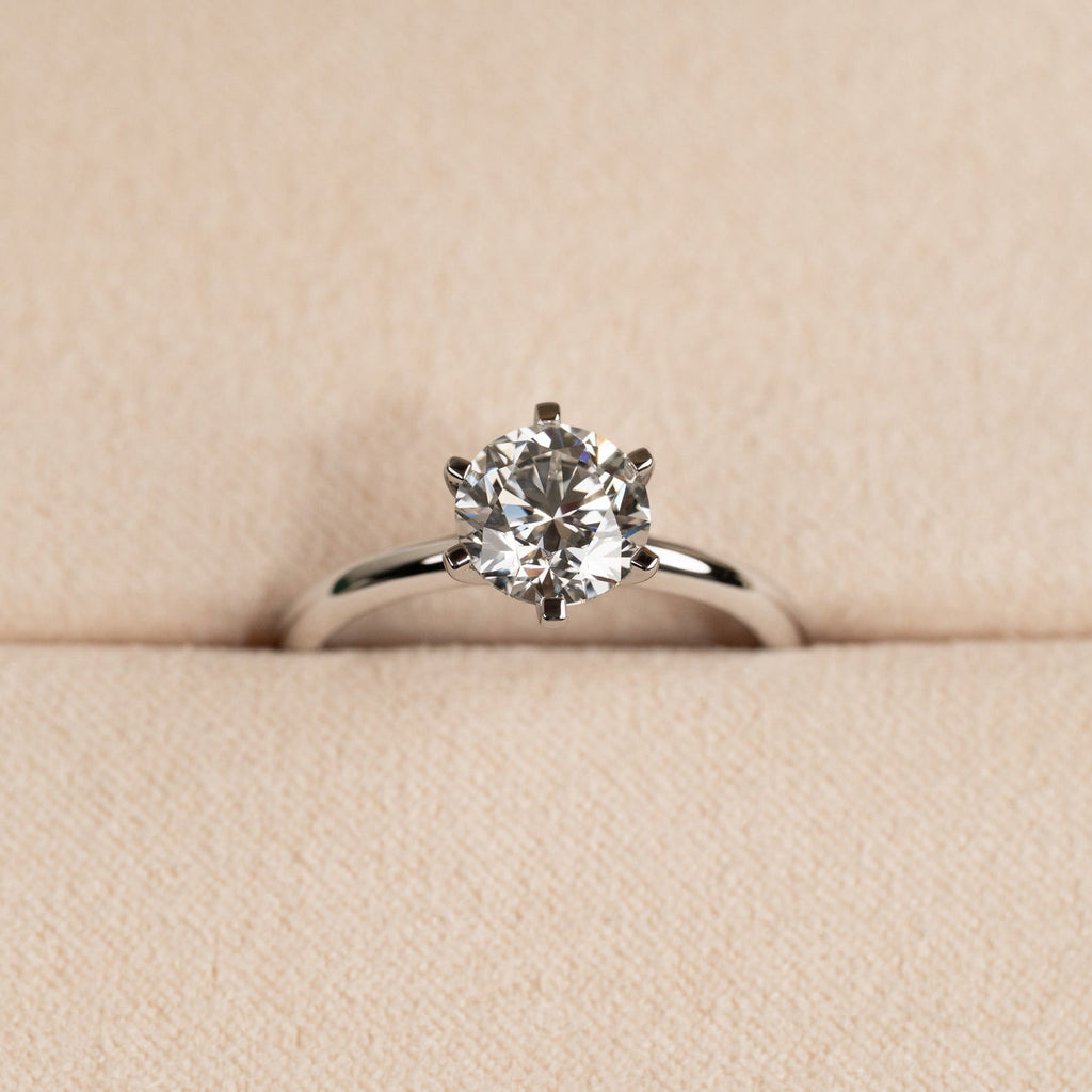 Diamantring i 14 karat vitguld med en briljantslipad labbodlad diamant på 1,5 ct. Diamanten är infattad i en låg, klassisk fattning med sex klor – en elegant och tidlös ring som passar till alla tillfällen. Den är också ett vackert val som förlovningsring.