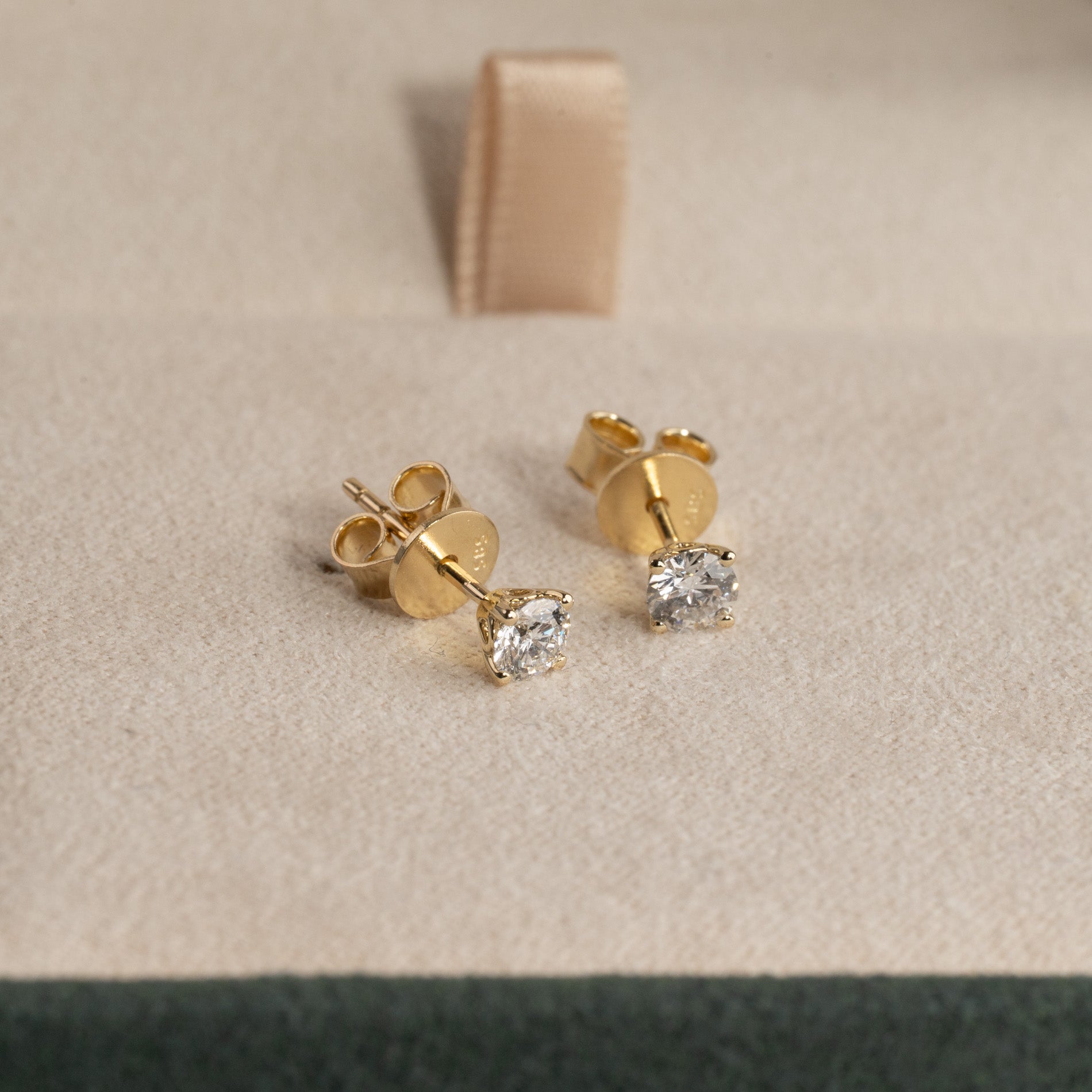 Våra solitära diamantörhängen är tillverkade med etiskt framställda labbodlade diamanter på vardera 0,75 ct, vilket ger en total vikt på 1,5 ct. De har färgen G (Top Wesselton) och klarheten VVS-VS. Diamanterna är hållbart producerade med grön energi - främst från solen.