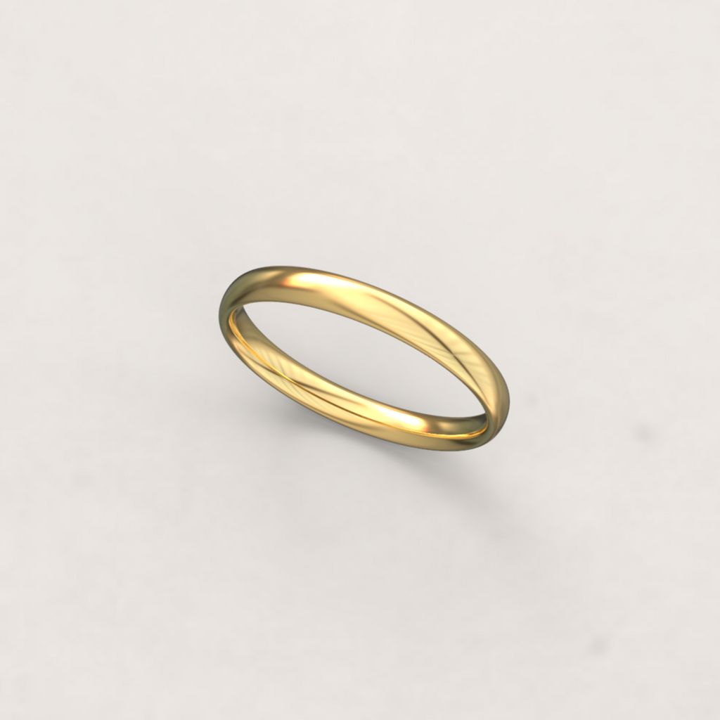 Vigselring i 14 karat guld i court-profilen, som har en bekväm och slät passform. Modellen är mycket klassisk och elegant inom vigselringar.