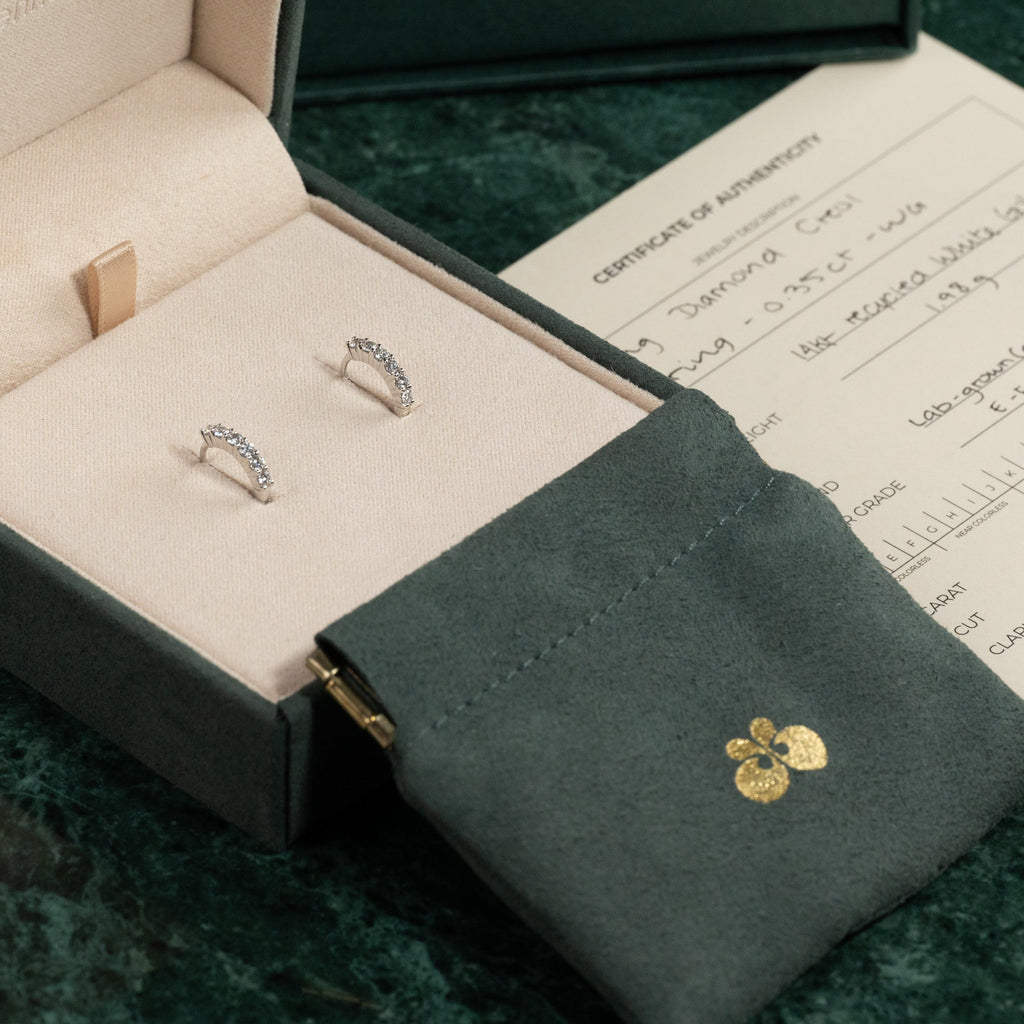 Creolerna levereras i vår exklusiva Diamond Collection-box med en vacker smyckesask, certifikat och smyckespåse. Boxen är även perfekt om smycket ska ges bort som present.