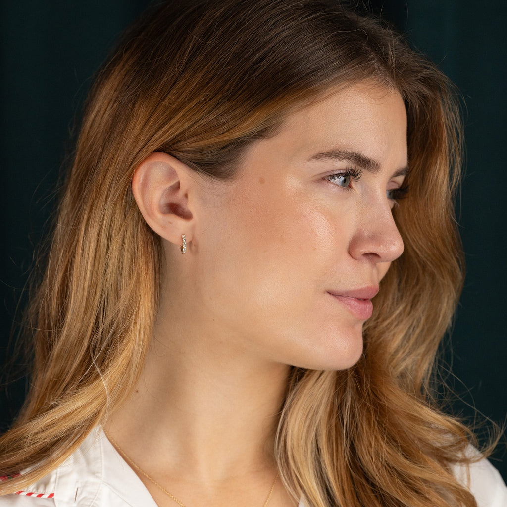 Creolerna framstår tidlösa och eleganta, och är ett vackert smycke som kan bäras både till vardags och vid festligare tillfällen. De är designade så att den bakre delen av örhängena speglar mönstret från fästena på framsidan- men utan infattade stenar. Creolerna mäter 12,5 mm i yttre diameter och stängs med en gångjärnsklikklås.
