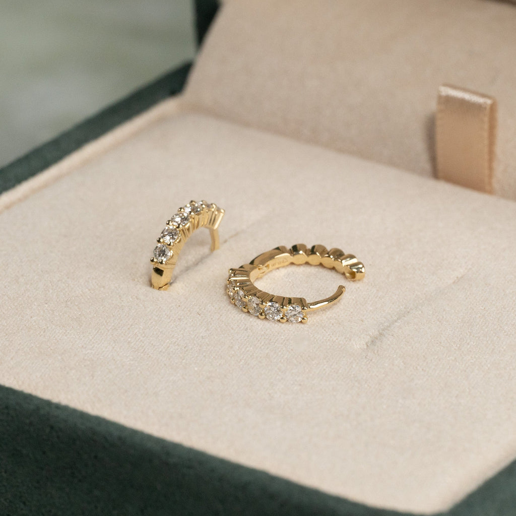 12,5 mm creoler med 0,35 ct. labbodlade diamanter i 14 kt. guld