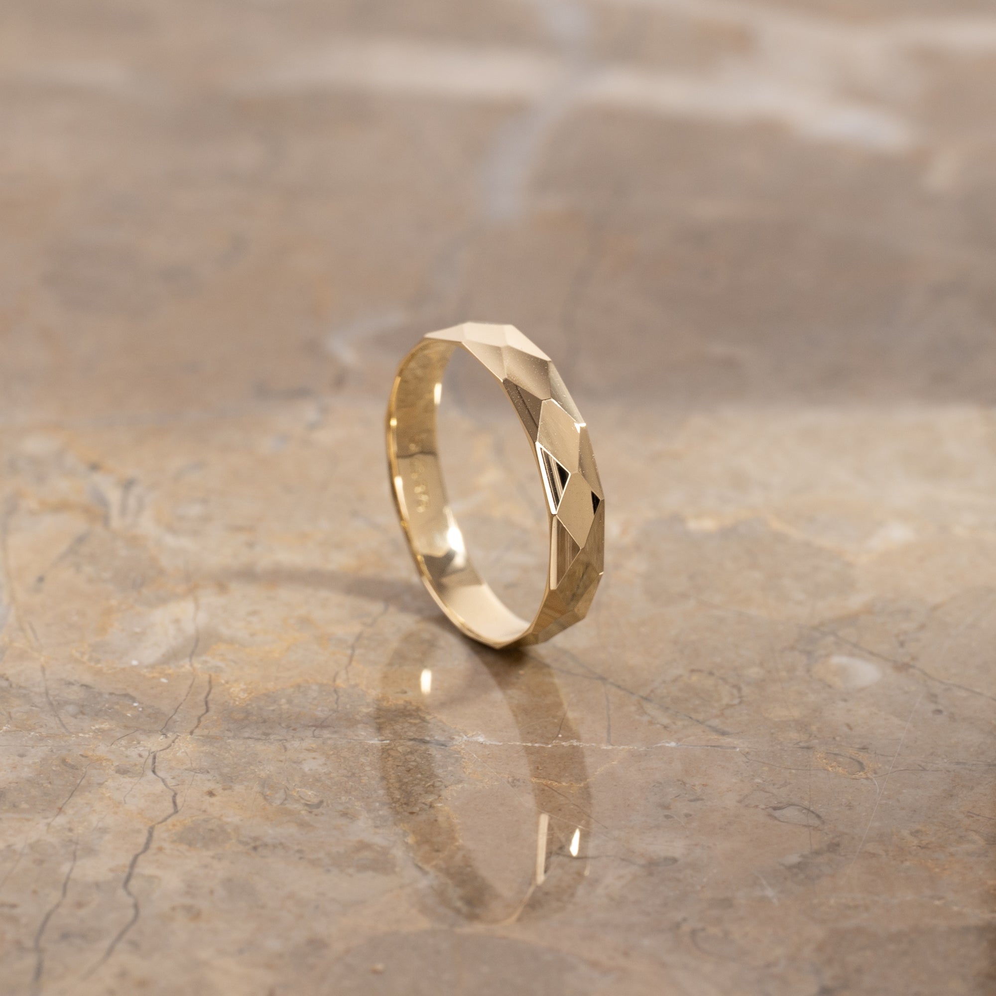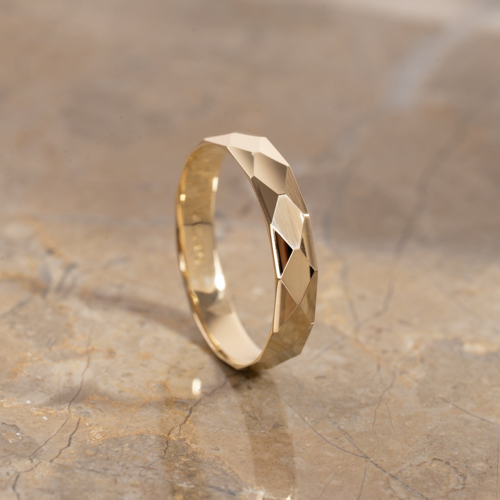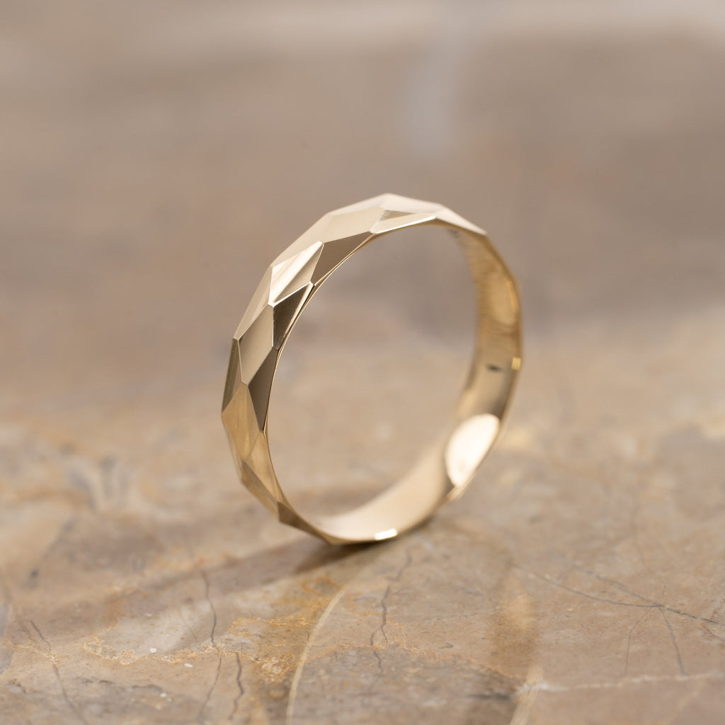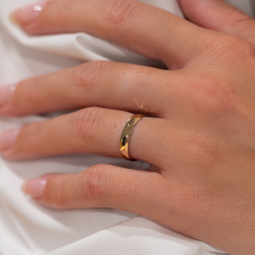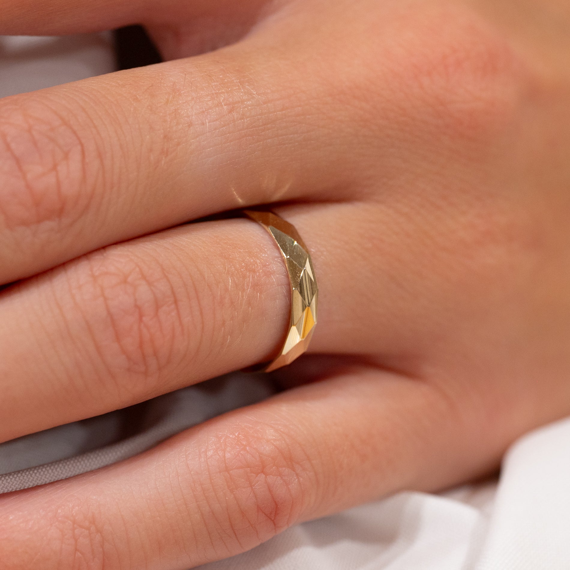 Ringen är elegant med en fasett-slipad yta som gör att ljuset fångas från många olika vinklar och tillför extra glans. Den breda ringskenan är markant, och en perfekt ring för dig som älskar att skapa en mer chunky look med dina smycken.