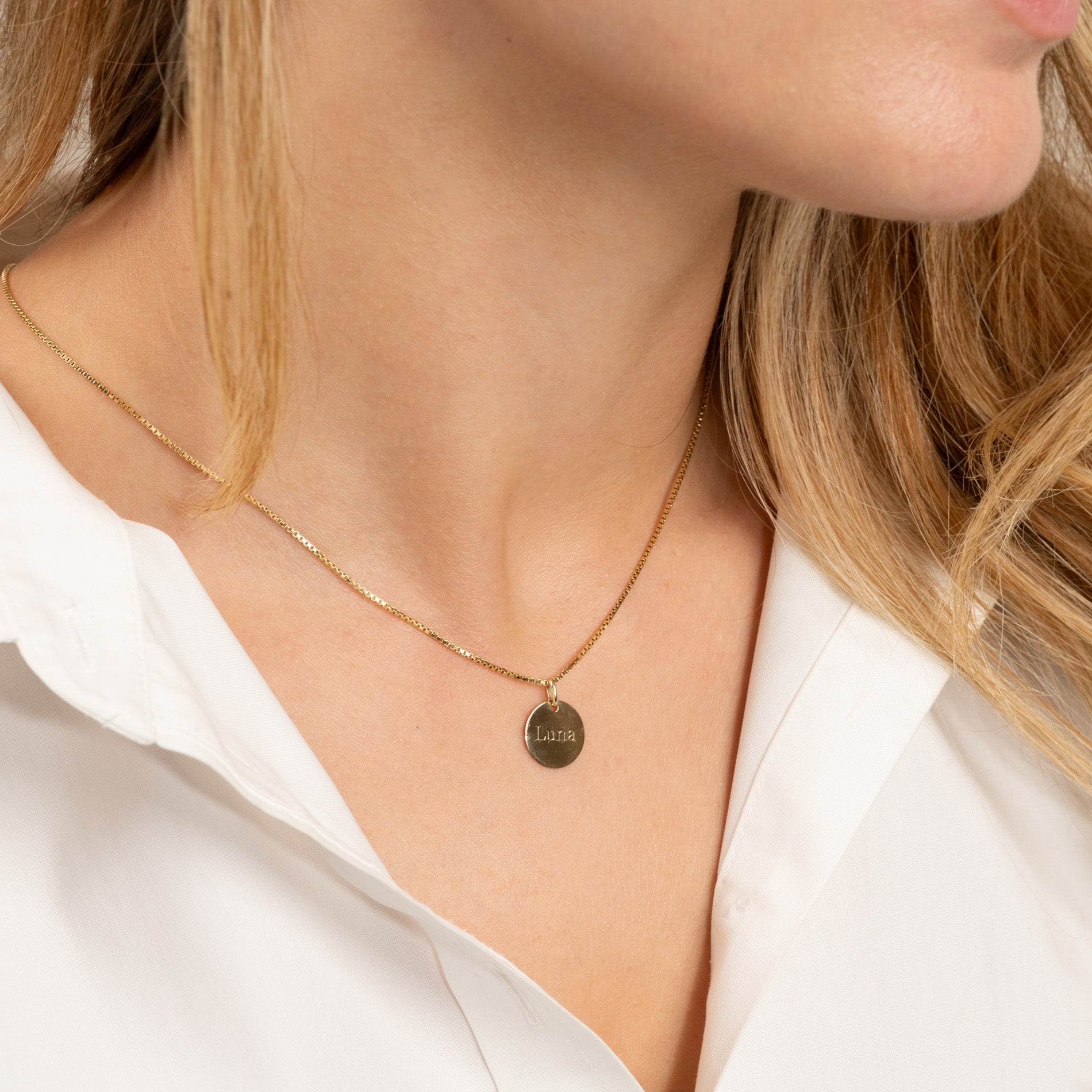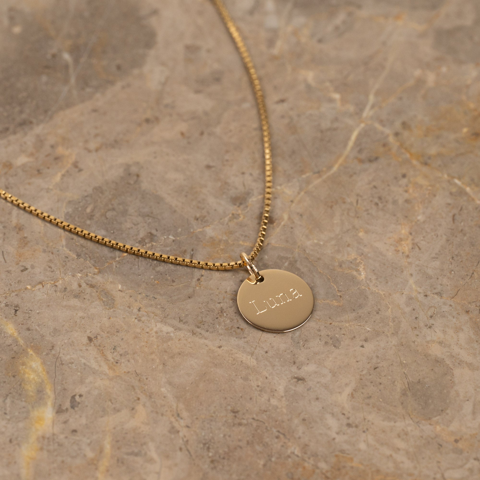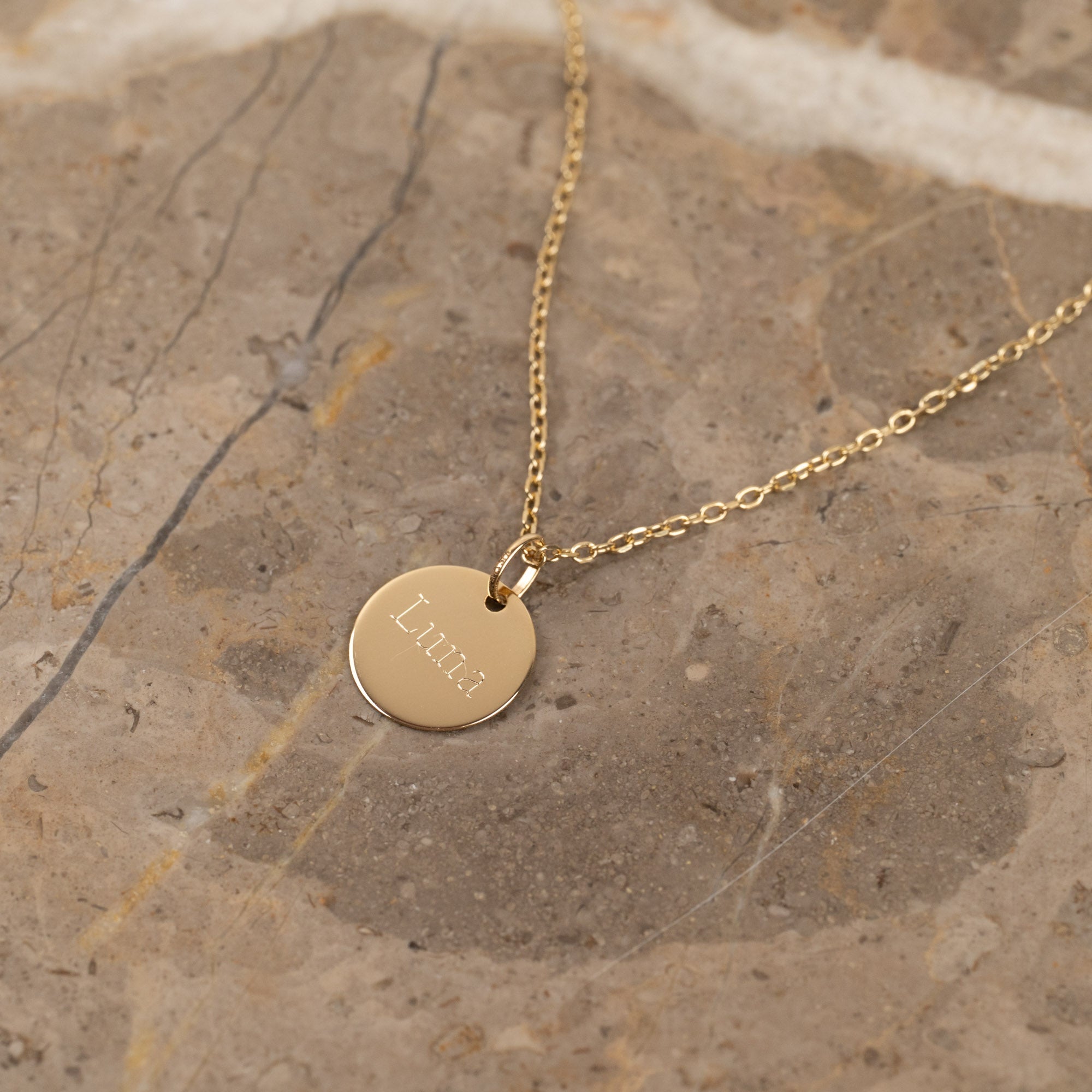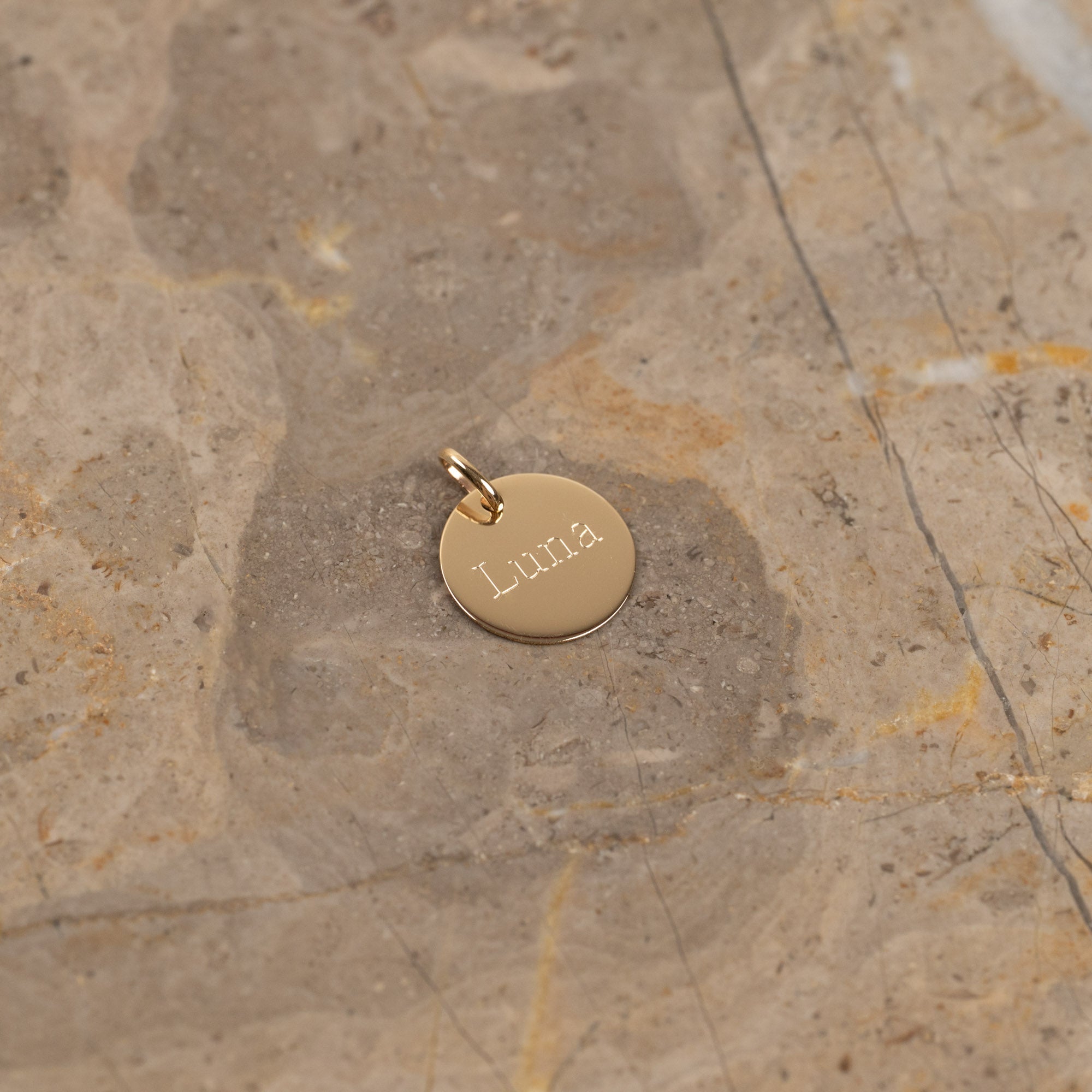 ENGRAVABLE ROUND SOLID GOLD PENDANT - 12mm