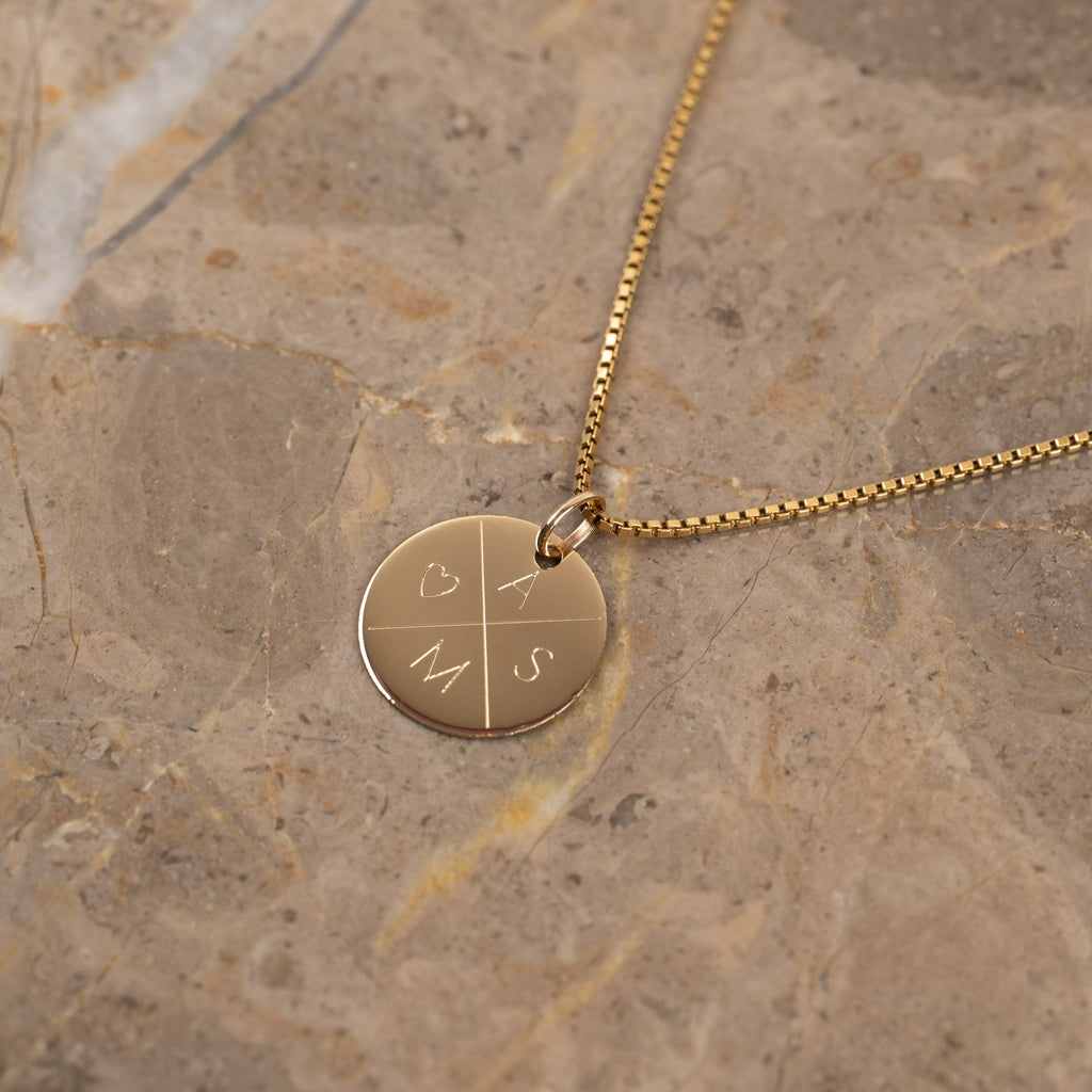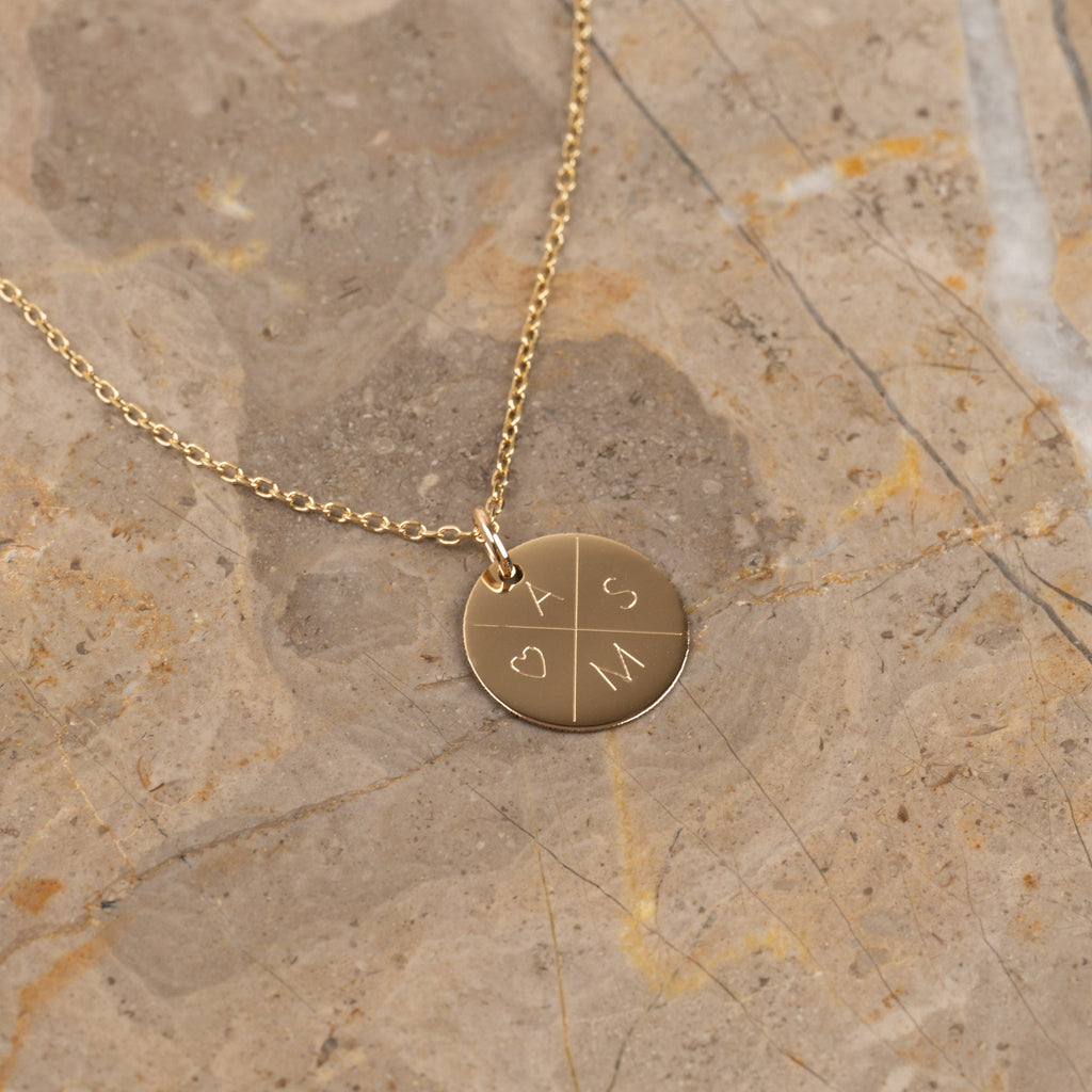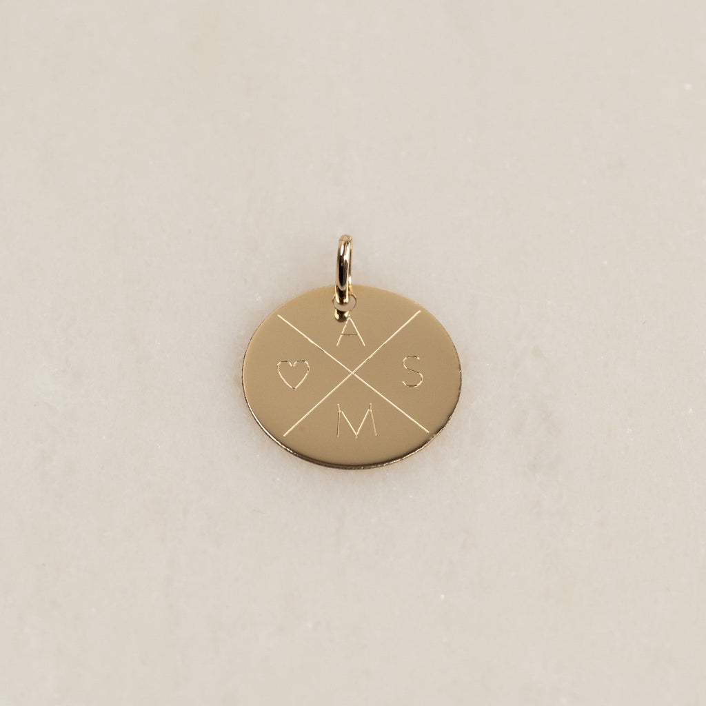 ENGRAVABLE ROUND SOLID GOLD PENDANT - 15mm