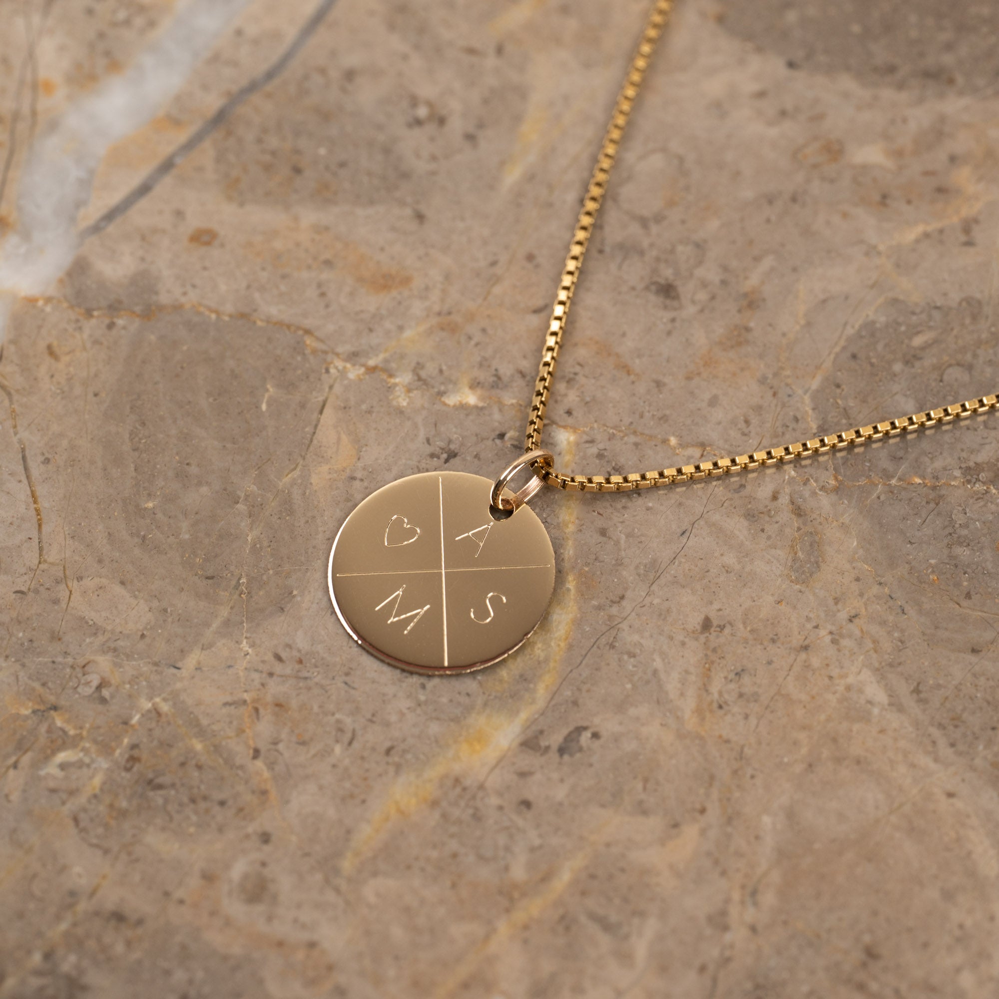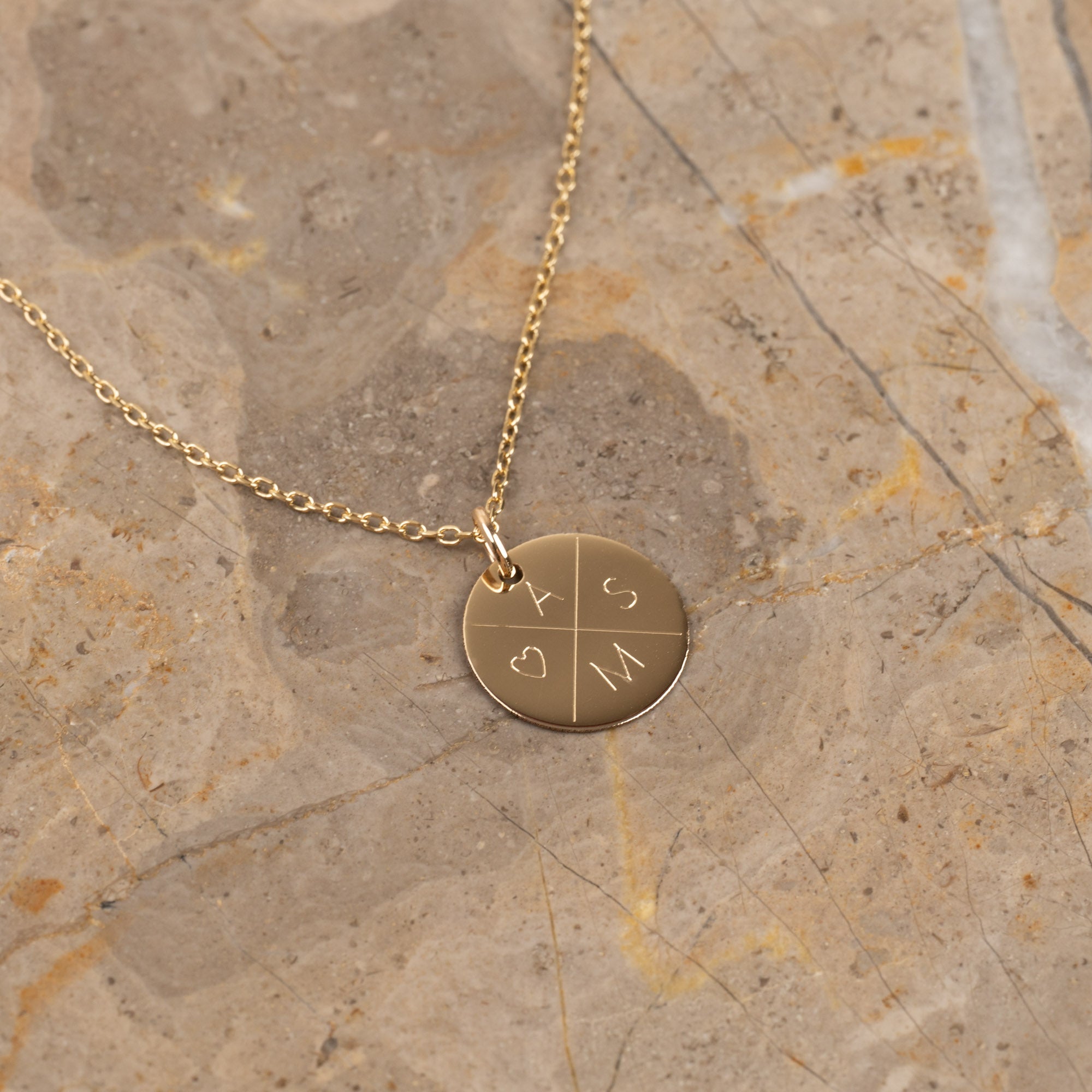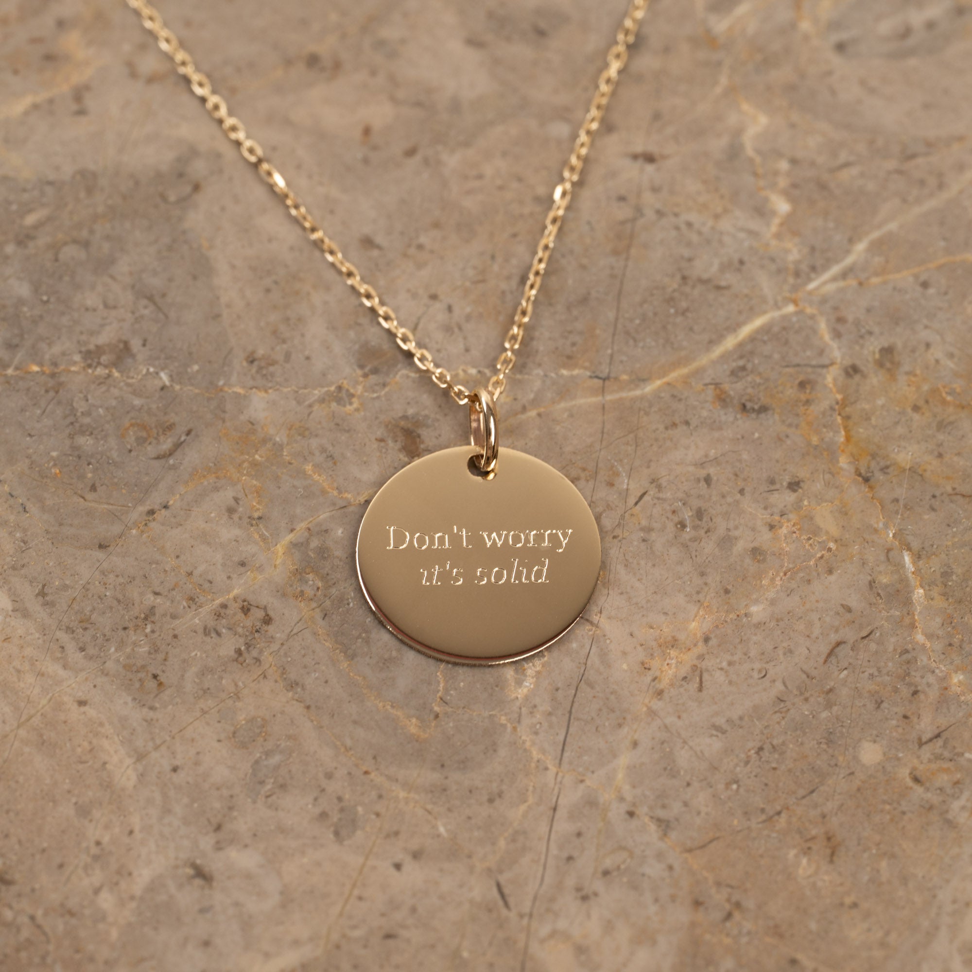 ENGRAVABLE ROUND SOLID GOLD PENDANT - 15mm