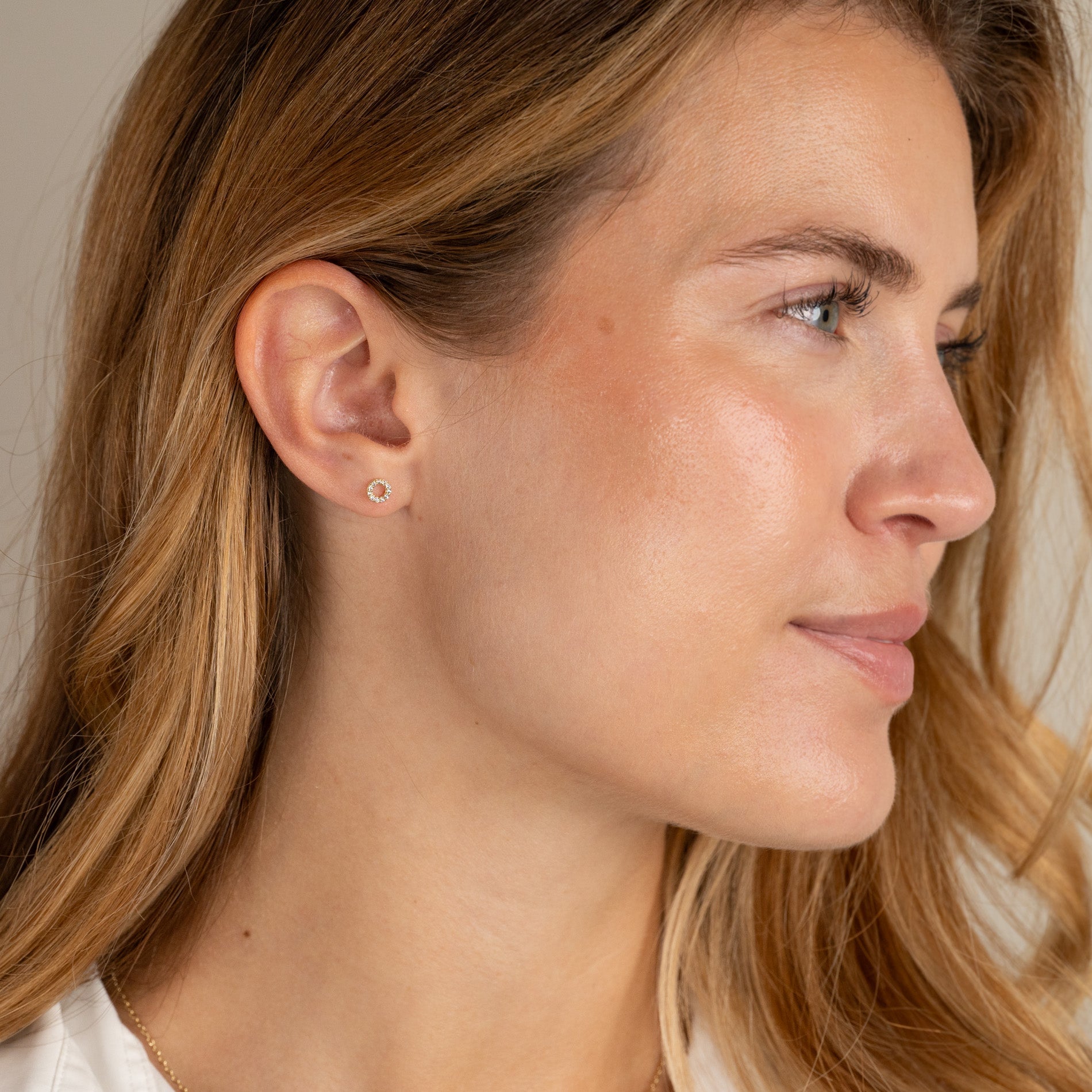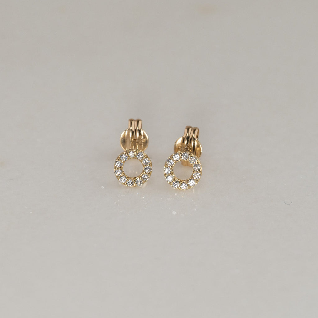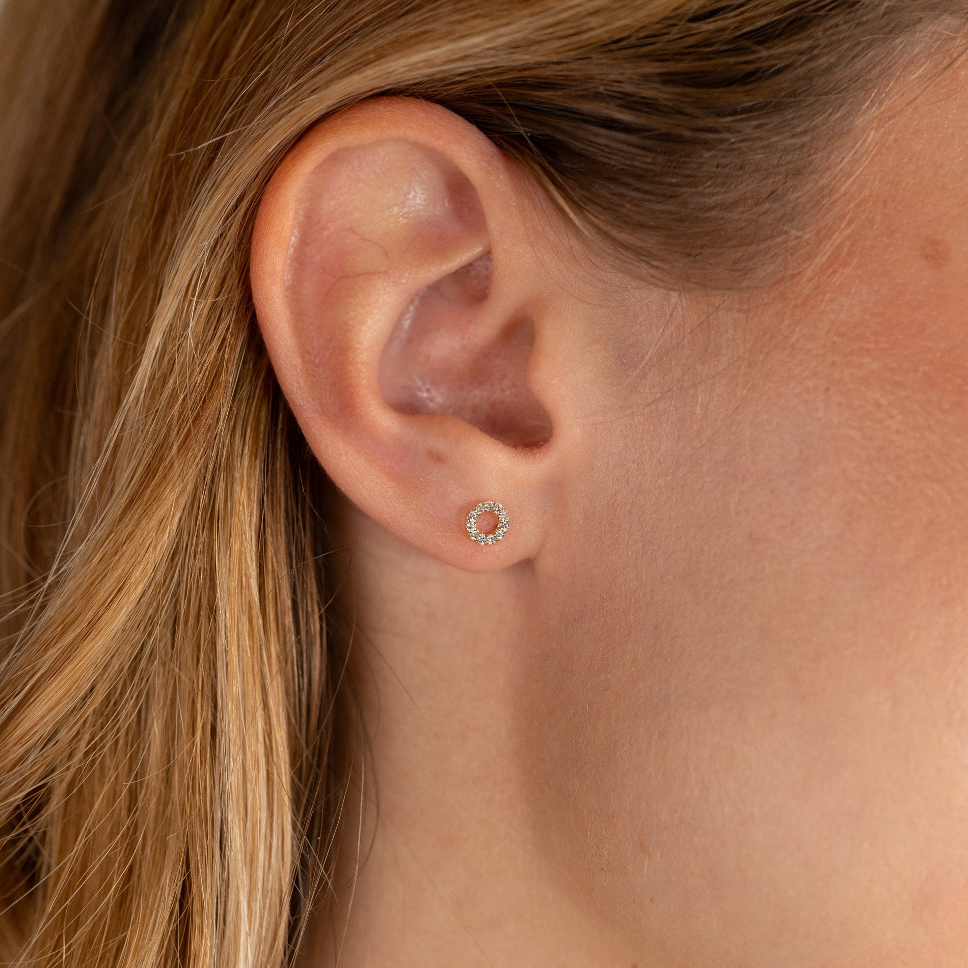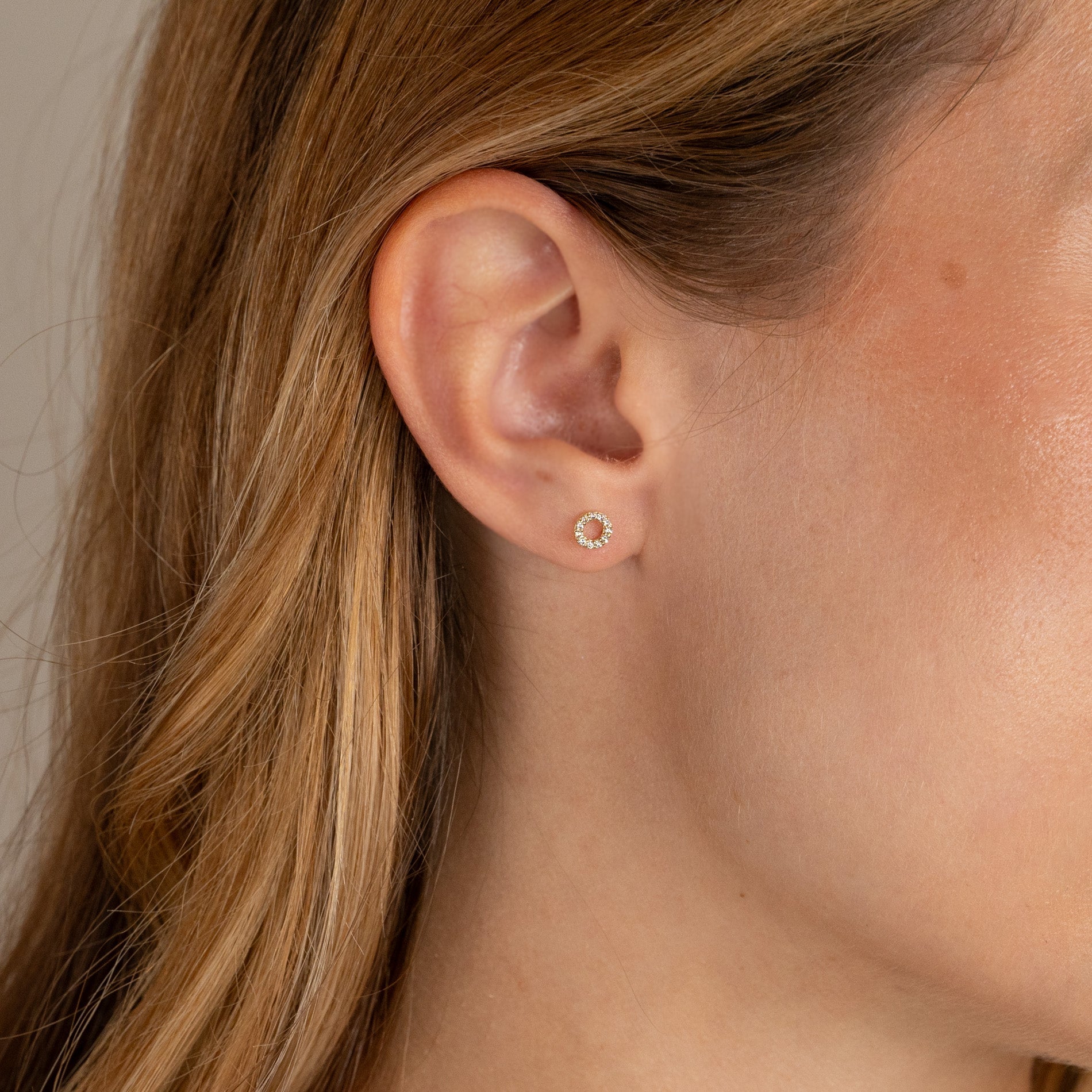Örhängen tillverkade i 100% återvunnet massivt 9 karat guld. Örhängena består av en öppen cirkel besatt med små vita kubiska zirkonstenar, som ger ett vackert skimmer och glimrar fint i ljuset. Dessa örhängen har en elegant och tidlös design.