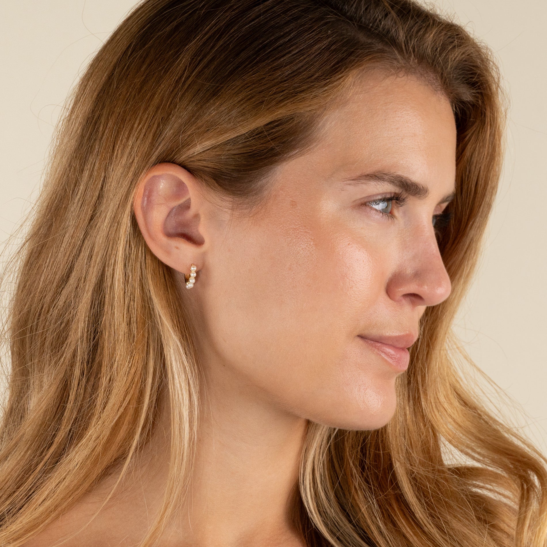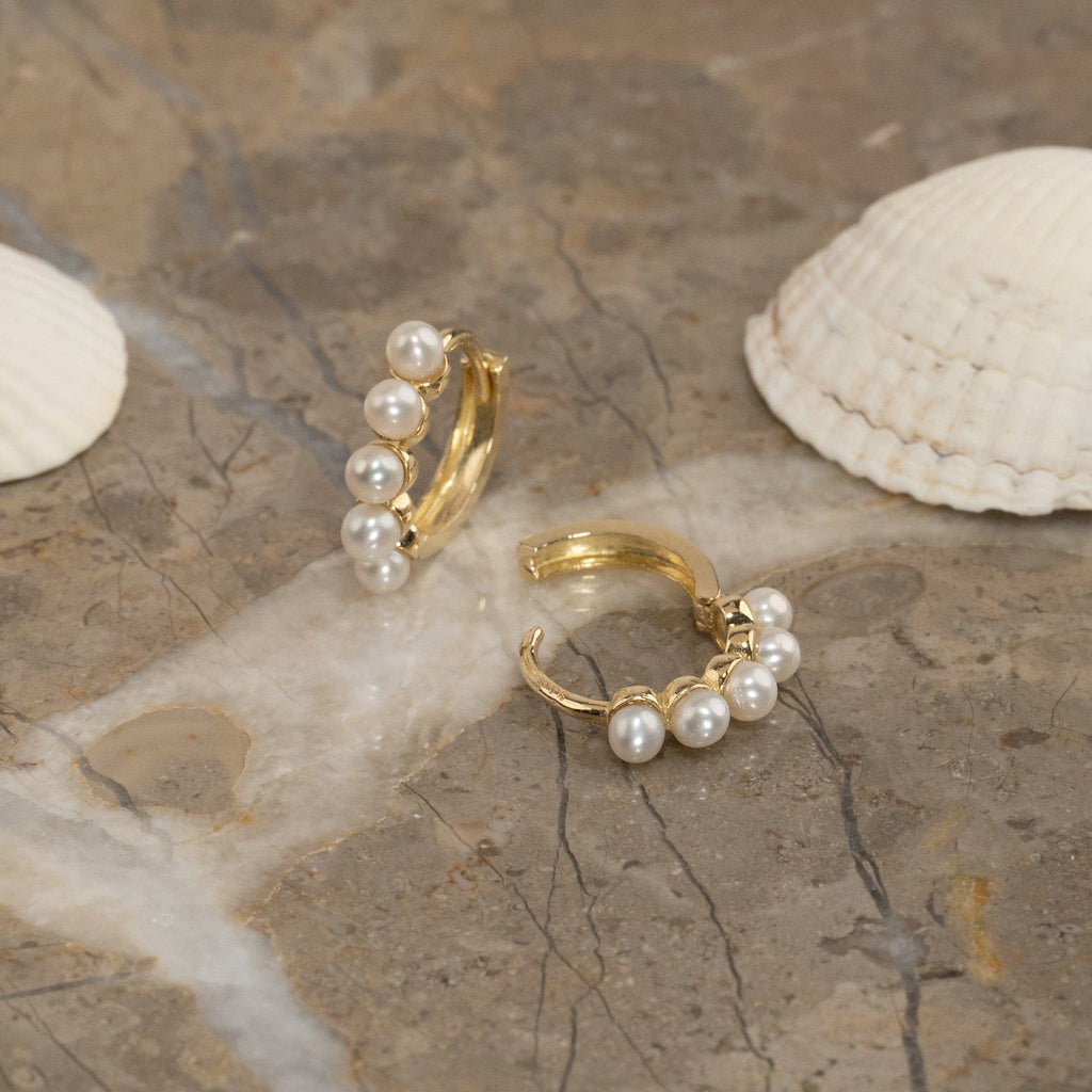 Örhänget är en klassisk örhänge som du kan ha i din smyckeskollektion för evigt. De små runda färskvattenpärlorna ger ett feminint uttryck och är en vacker detalj till den enkla och klassiska guldcreolen.
