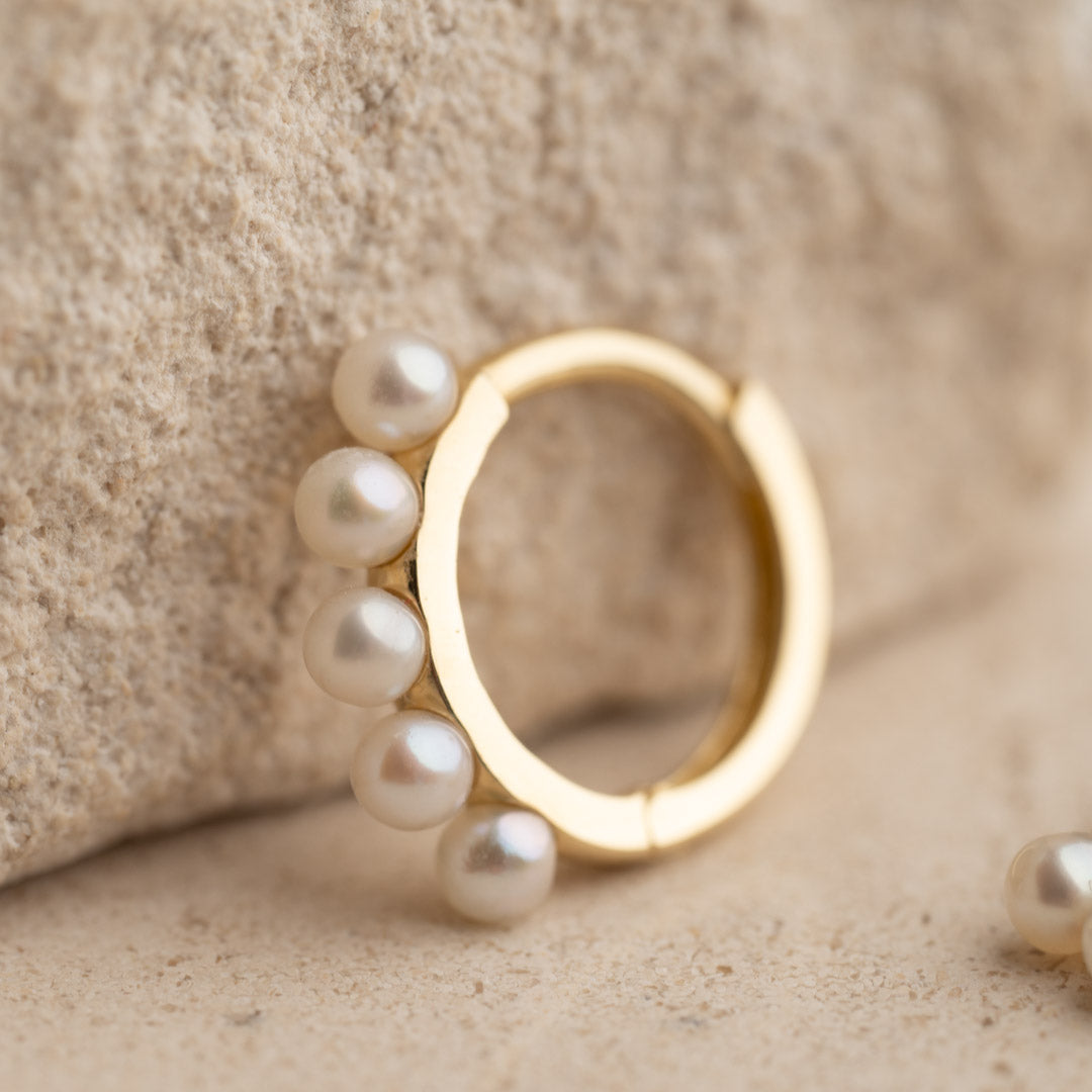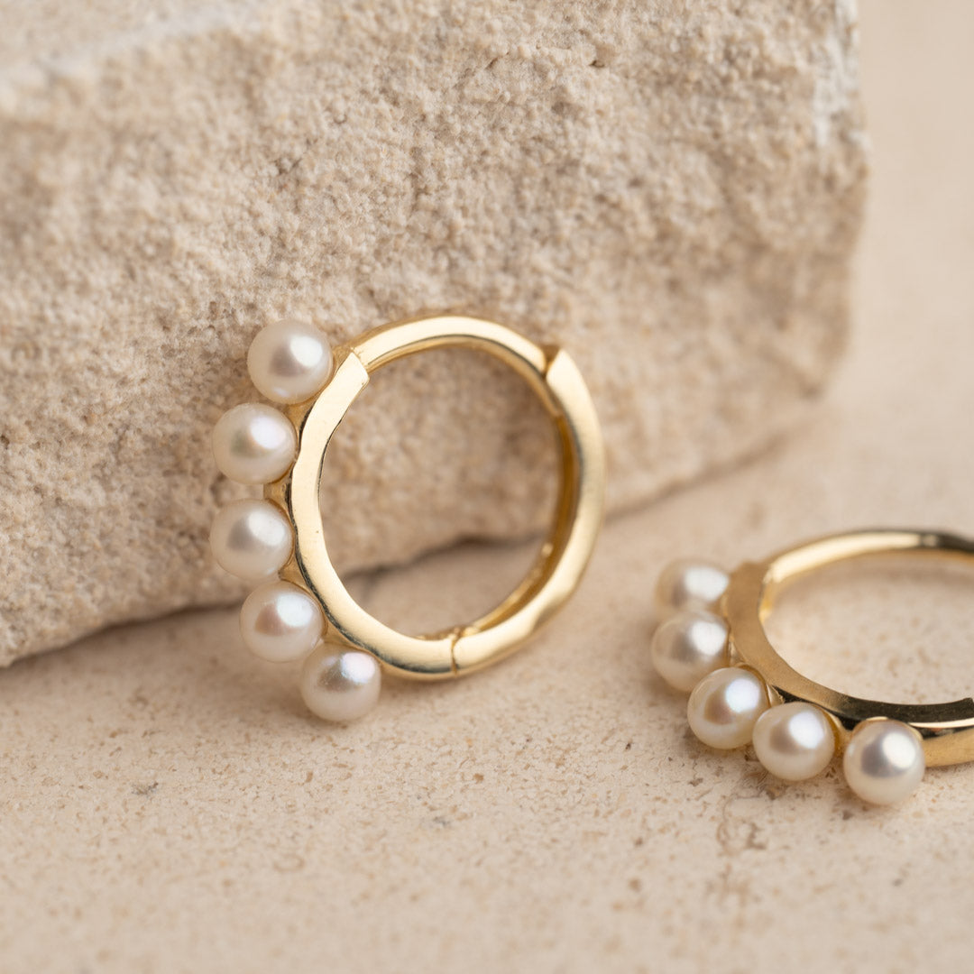 Creoler i 100% återvunnet massivt 9 karat guld. Creolen har fem små färskvattenspärlor längs fronten.
