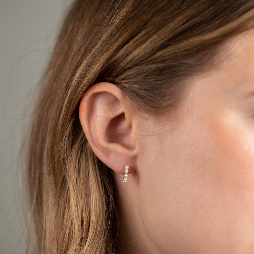 Denna örhänge är en klassisk design som du kan ha i din smyckesamling för alltid. De små runda färskvattenspärlorna ger ett feminint uttryck och är en vacker detalj till den enkla och klassiska guldcureolen.