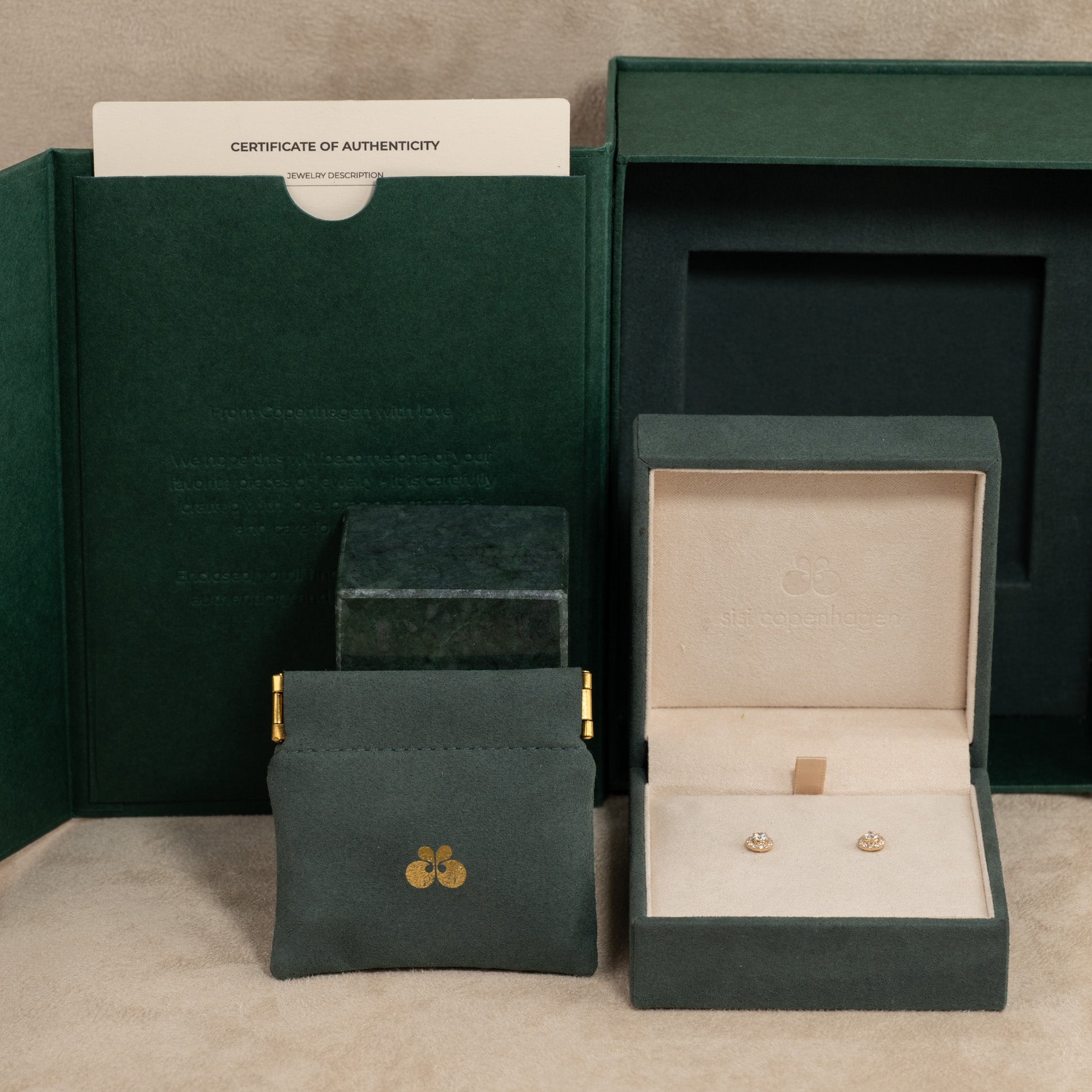 Klart att ges som gåva. I asken hittar du en smyckeskrin, en påse och ett 'certificate of authenticity'.