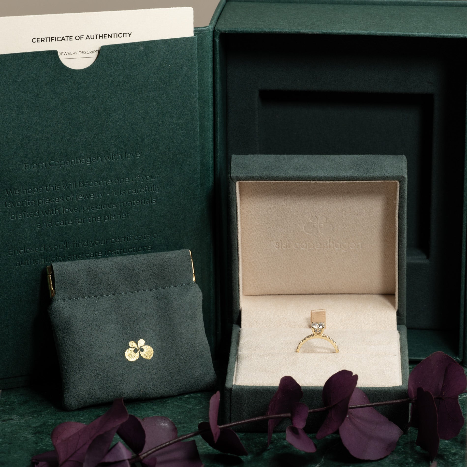 Klart att ges som gåva. I asken hittar du en smyckeskrin, en påse och ett 'certificate of authenticity'.