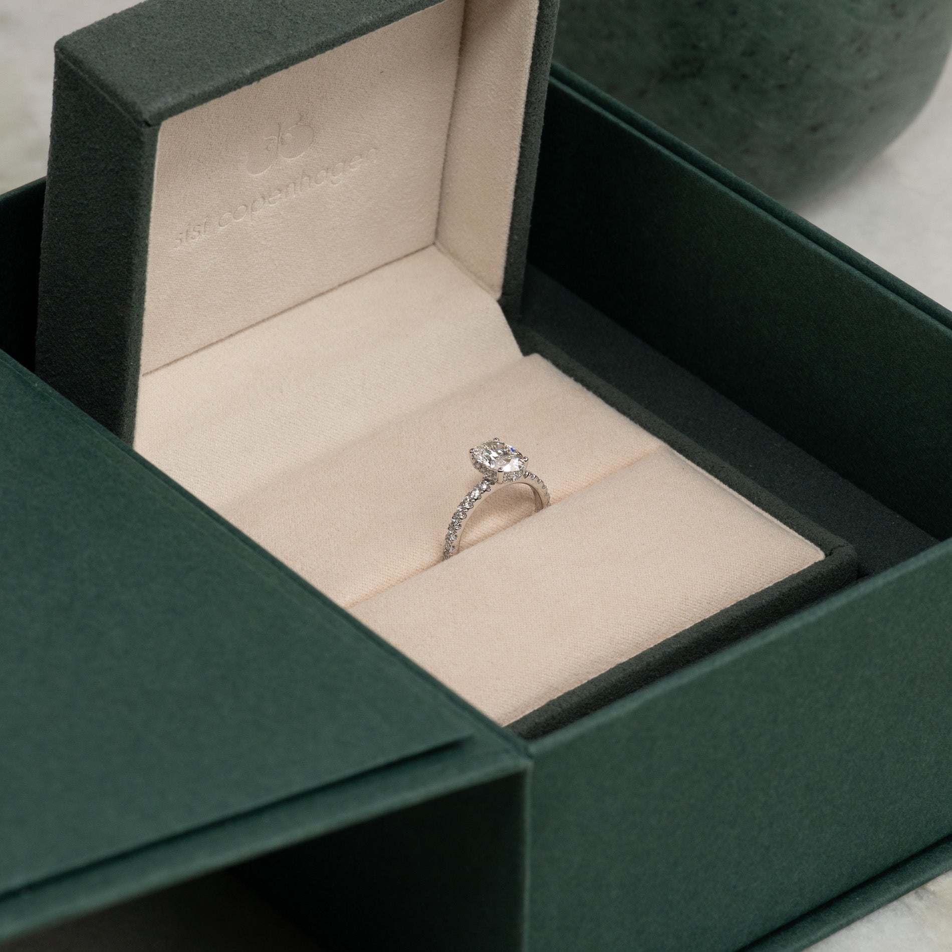 Vi erbjuder en fin lösning: Vi skickar den vackra presentboxen i förväg, fint inslagen, men utan smycket. Tillsammans med boxen skickar vi med ett kort som berättar för den lyckliga mottagaren vad de har att se fram emot. Så snart smycket är färdigt skickas det separat i vår fina smyckesask tillsammans med certifikatet. På så sätt kan du ge en oförglömlig gåva, även om smycket inte är klart på den speciella dagen.
