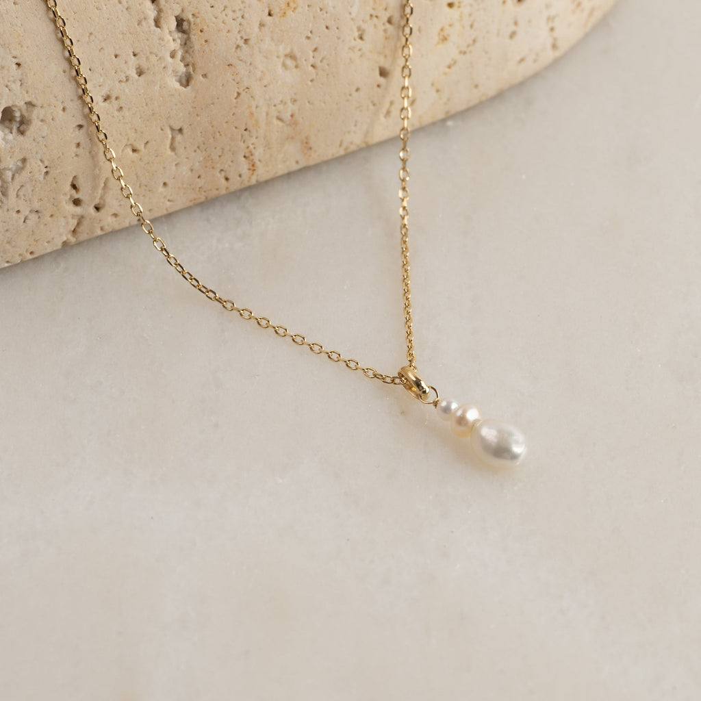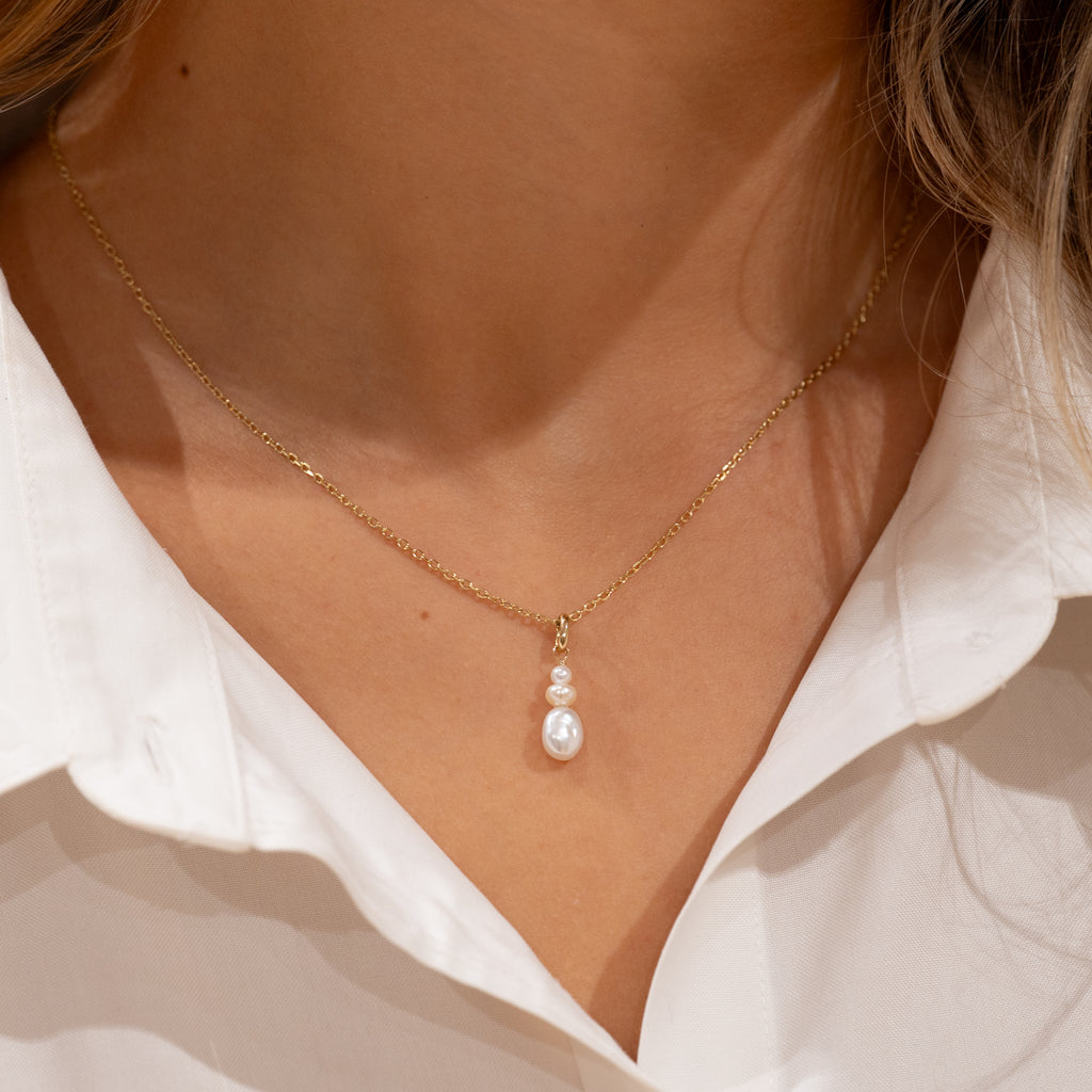 Den fina berlocken har ett tidlöst utseende med tre sötvattenspärlor i olika storlekar, där den största pärlan placerad längst ner på hänget. Designen med sötvattenspärlor ger ett otroligt elegant och feminint intryck. Berlocken mäter 16,5 mm i längd.