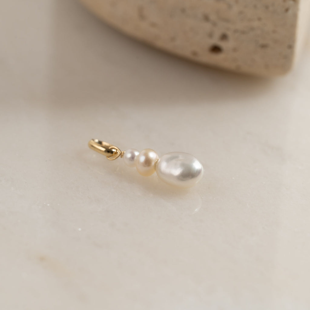 Berlocken är tillverkad i 100% återvunnet massivt 9 karat guld med tre sötvattenspärlor.