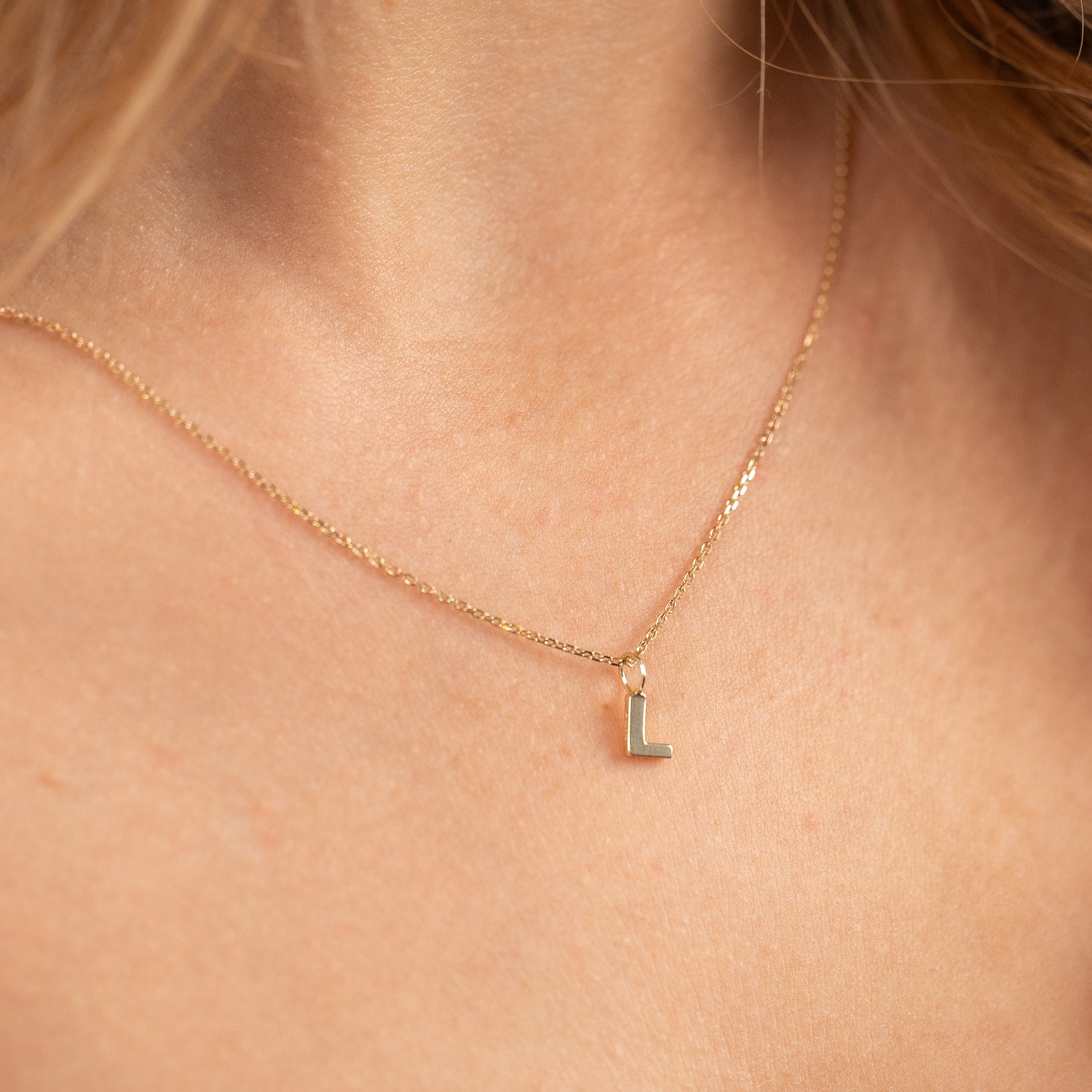 Vårt lätta solid guldhängen är tillverkade av 100% återvunnet 9 karats fast guld. Bokstäverna mäter 6 mm i höjd.