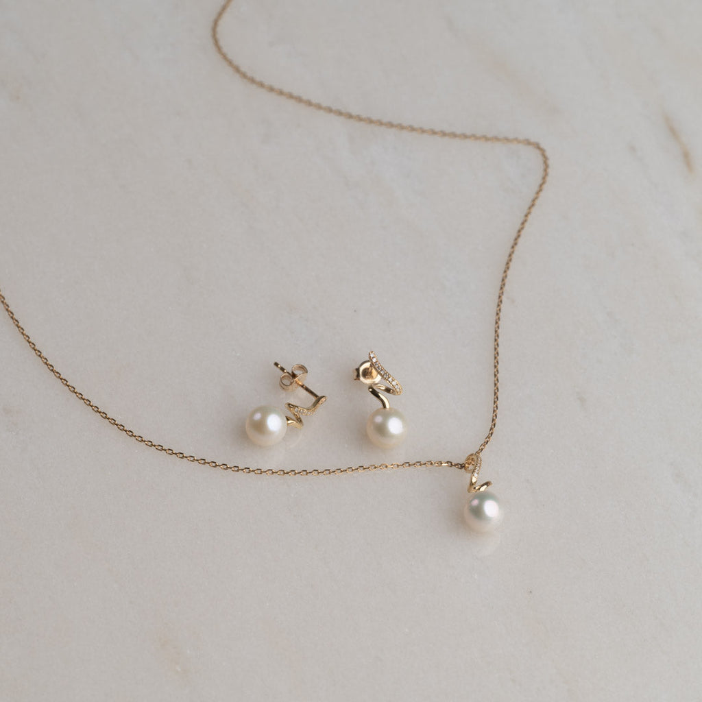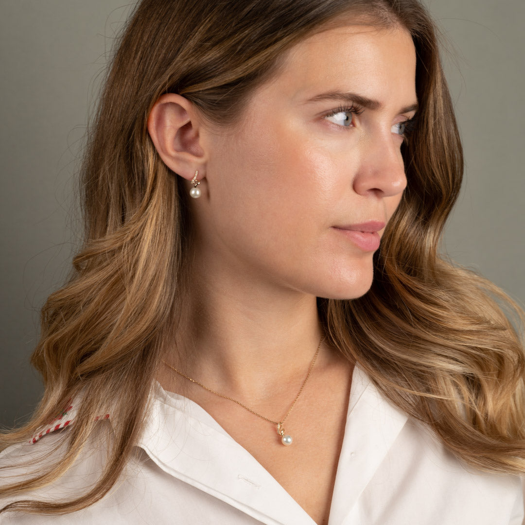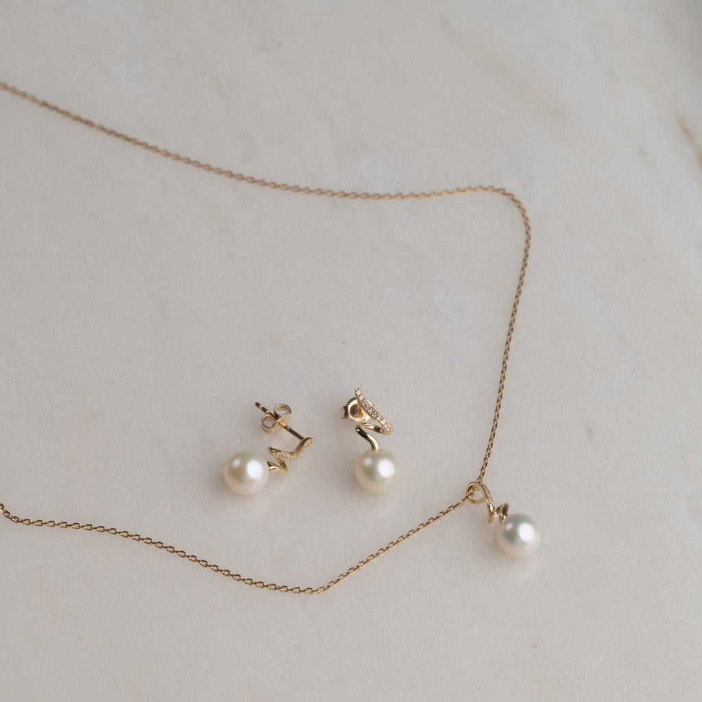 Matcha med örhängena med vår Lora Pearl Diamond-halsbanhänge