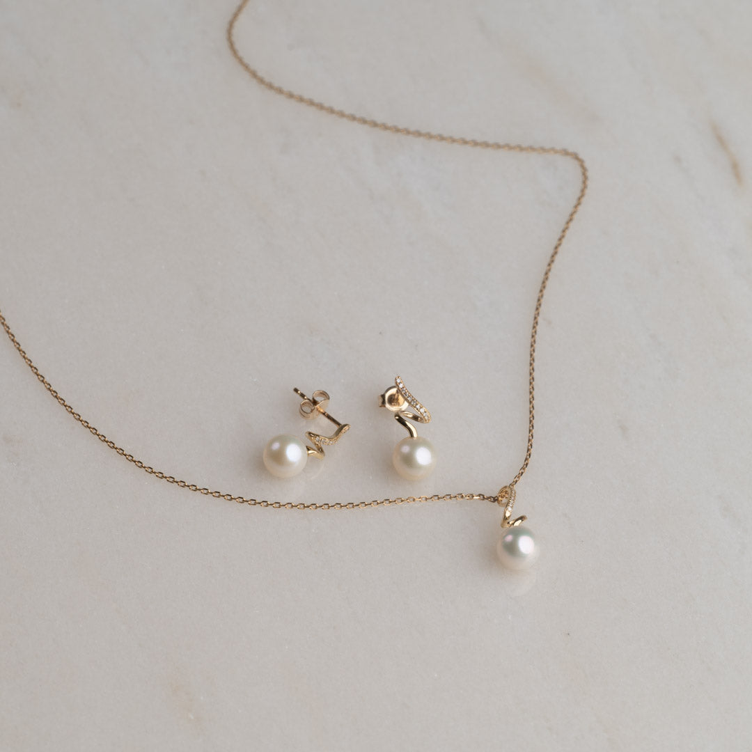 Matcha hänget med våra Lora Pearl diamantörhängen.