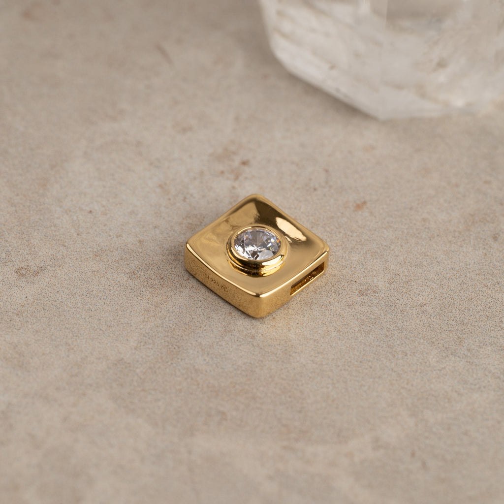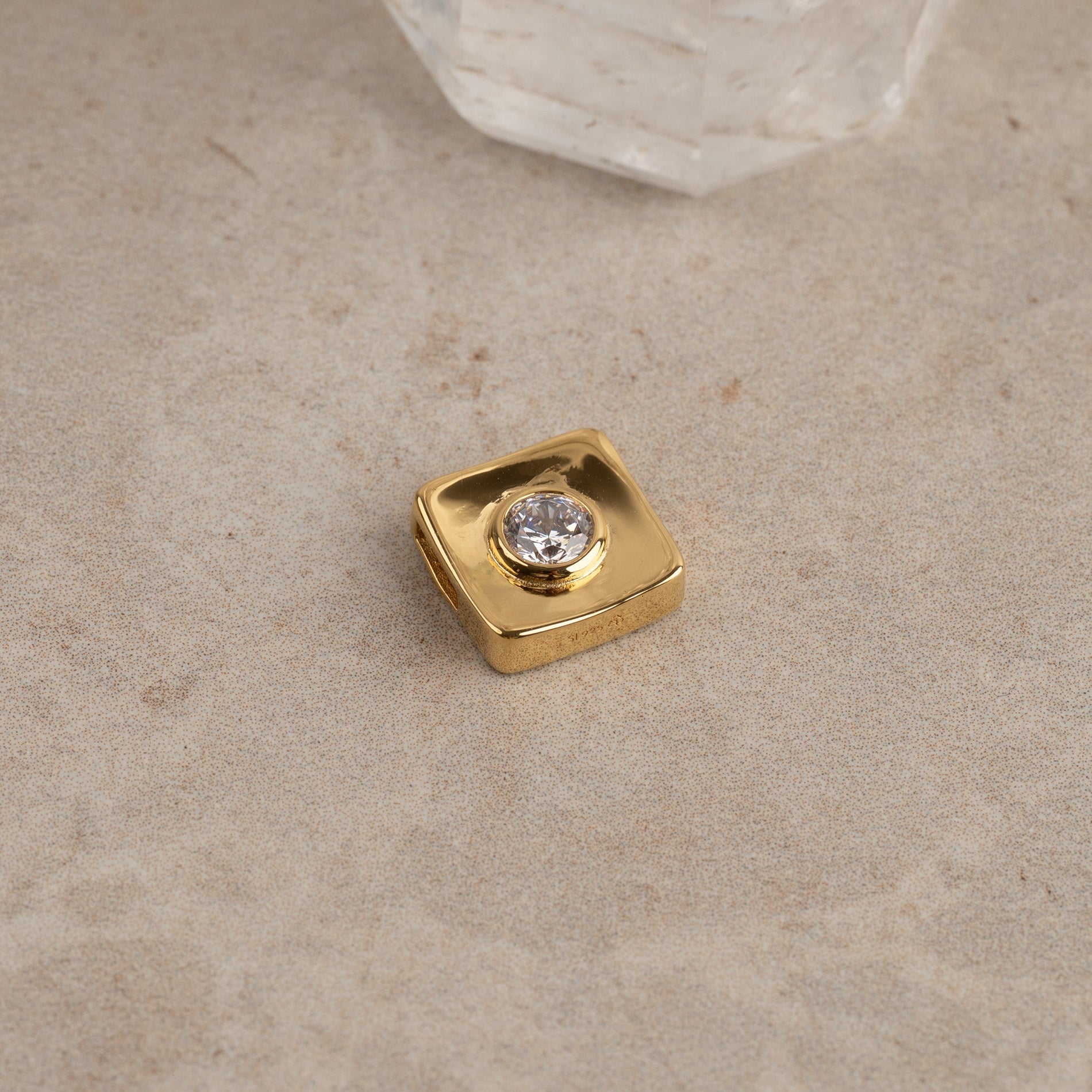 Fyrkantig berlock i förgyllt sterlingsilver med en zirkon
