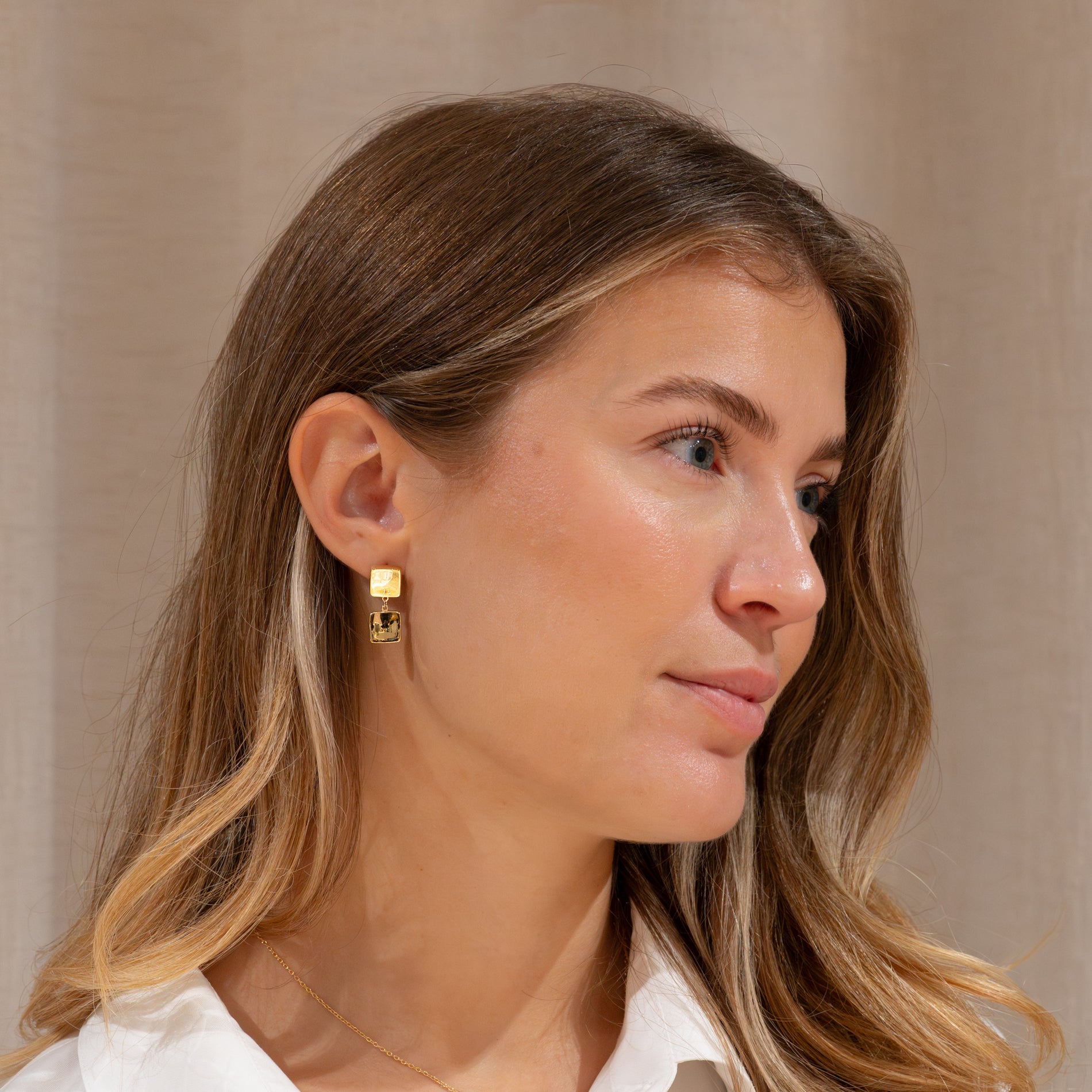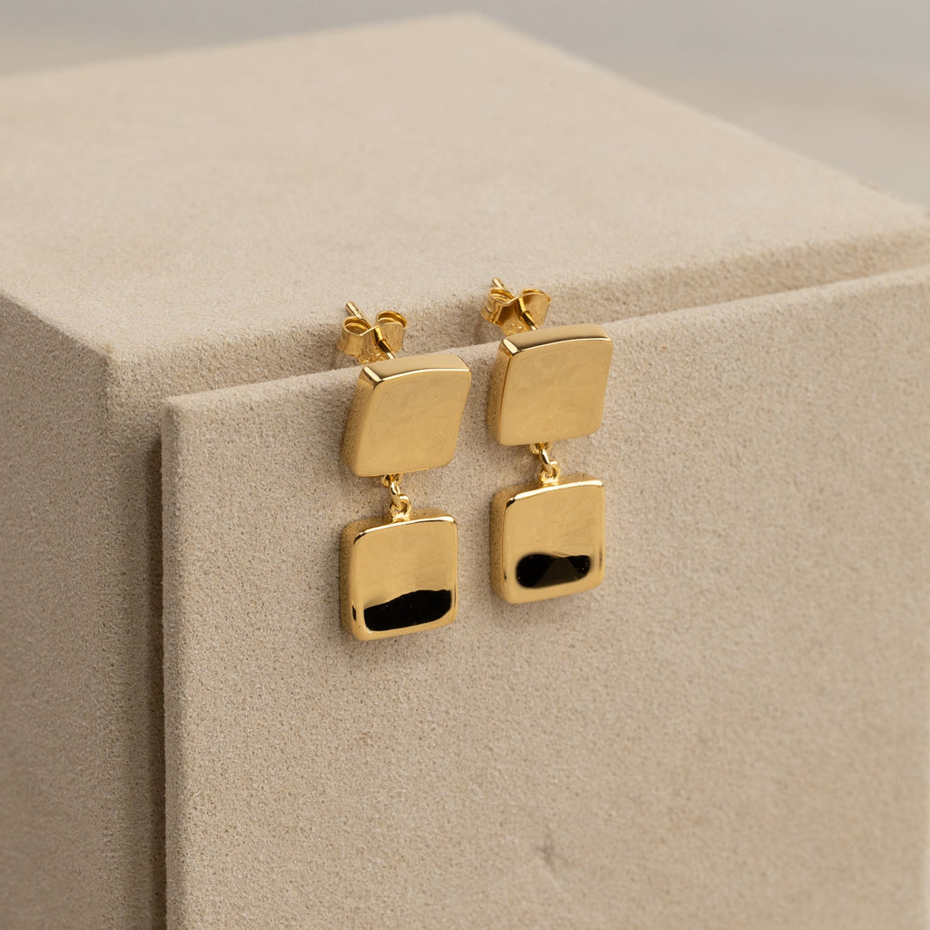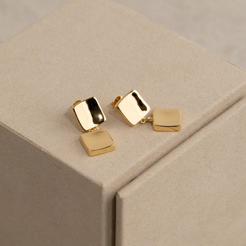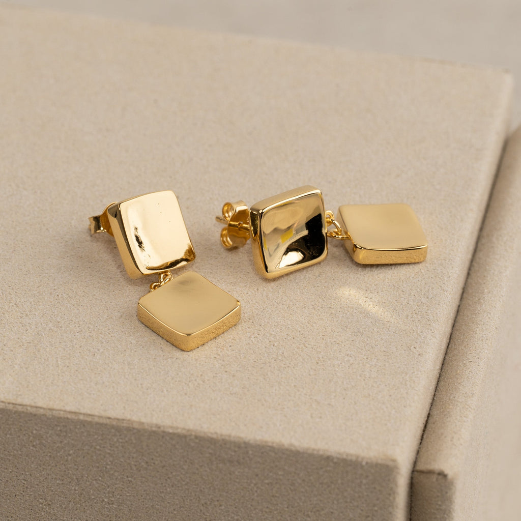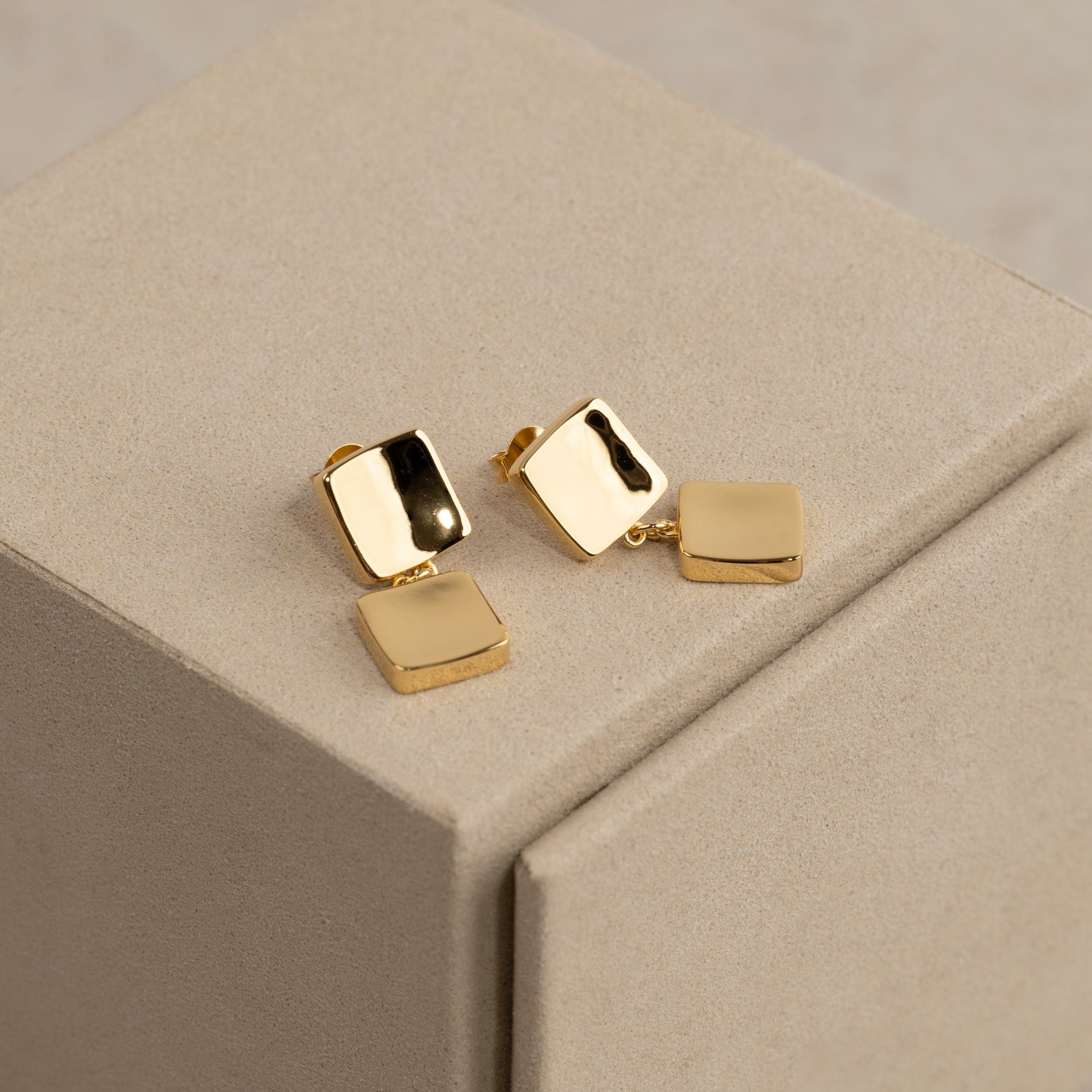 Fyrkantiga örhängen i förgyllt sterlingsilver med en elegant och retroinspirerad design