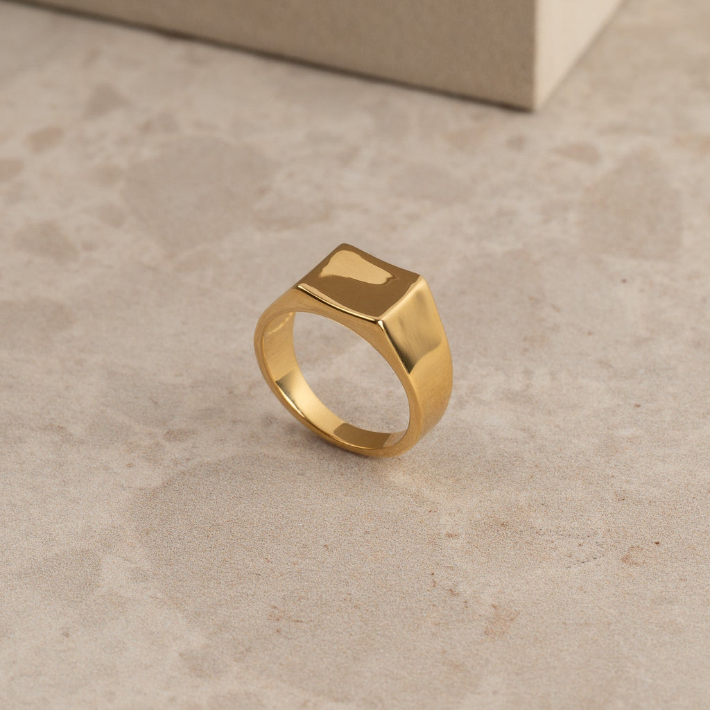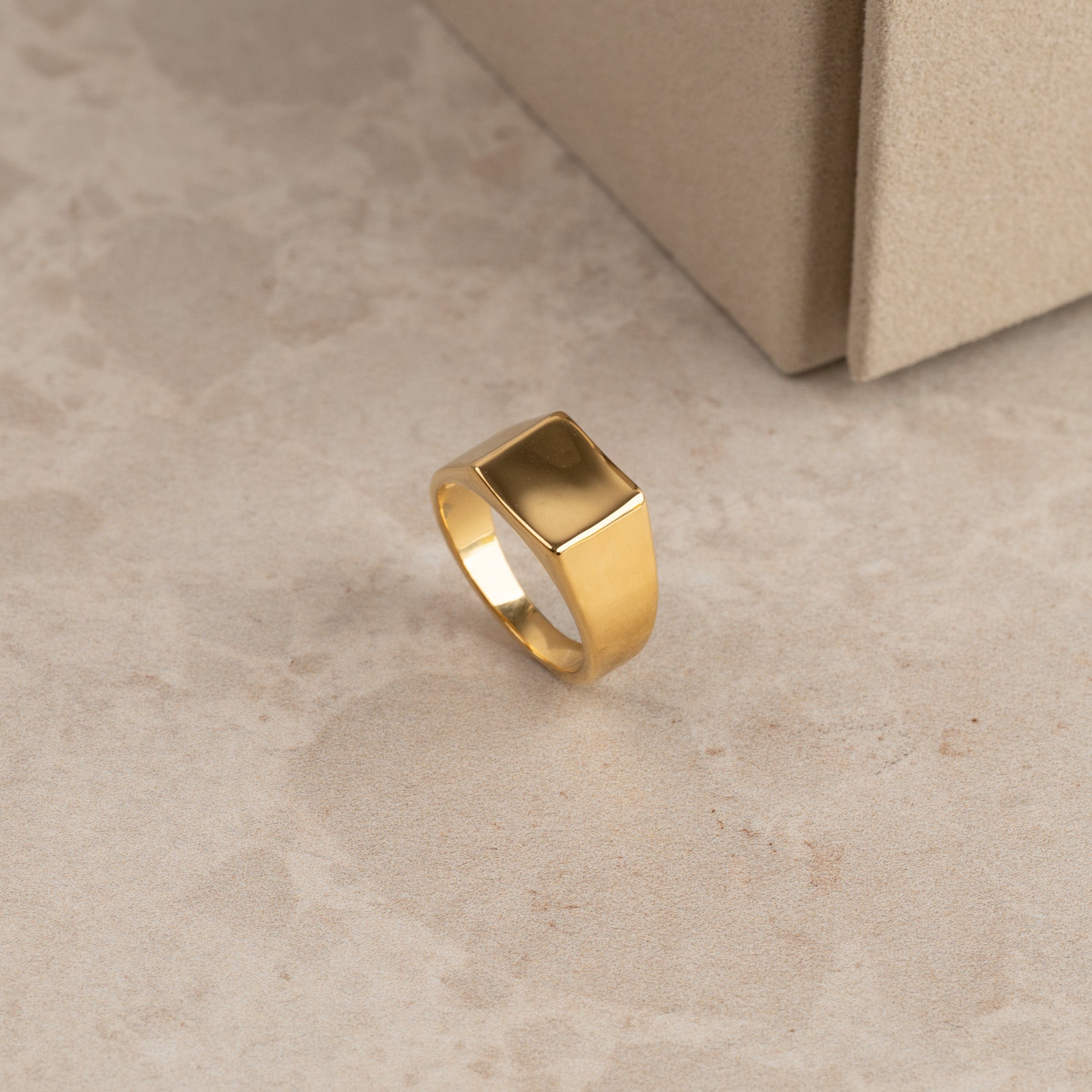 En klassisk fyrkantig signetring i 100% återvunnet 18 karat förgyllt sterlingsilver.