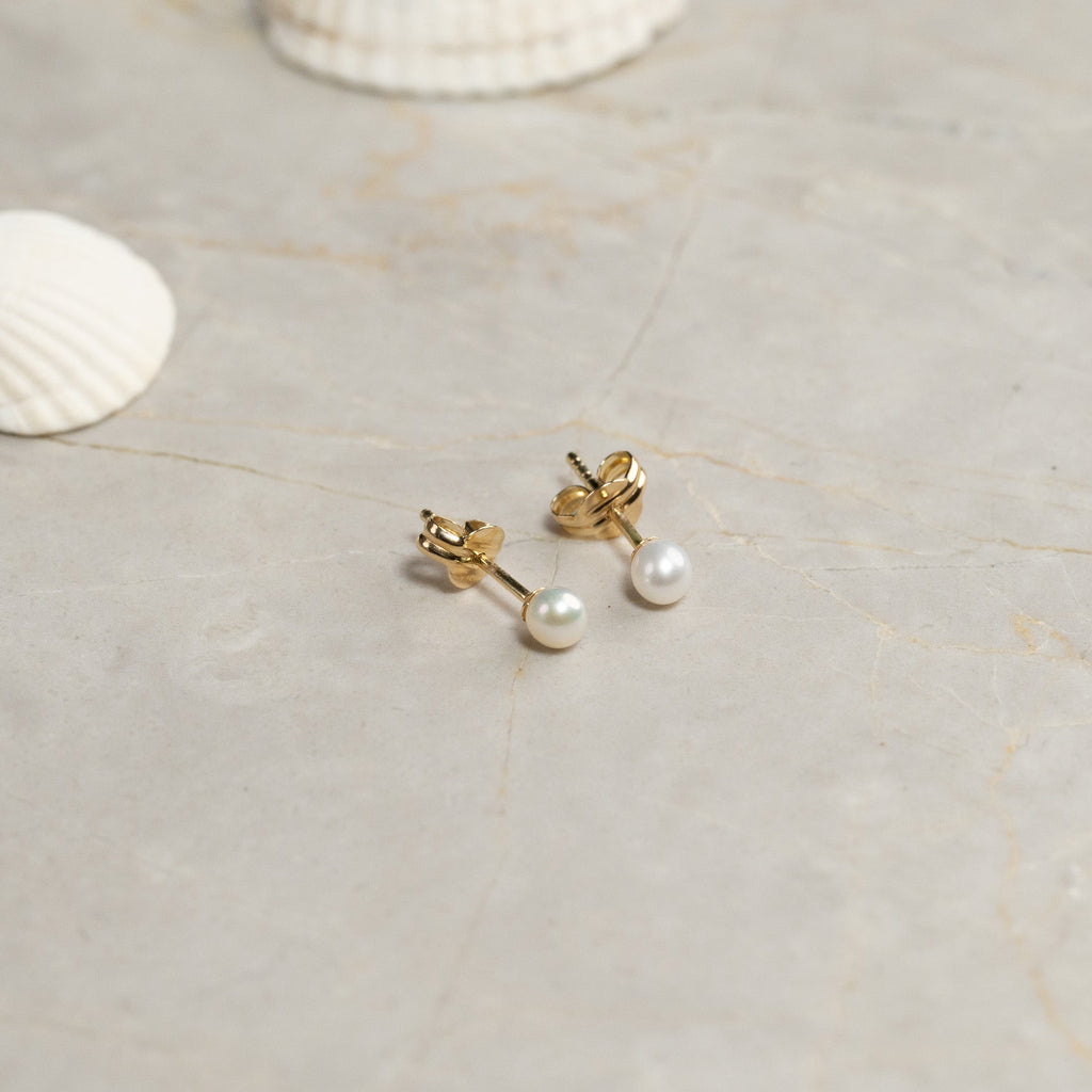 MAGGIE PEARL SOLID GOLD STUD EARRING - 3mm