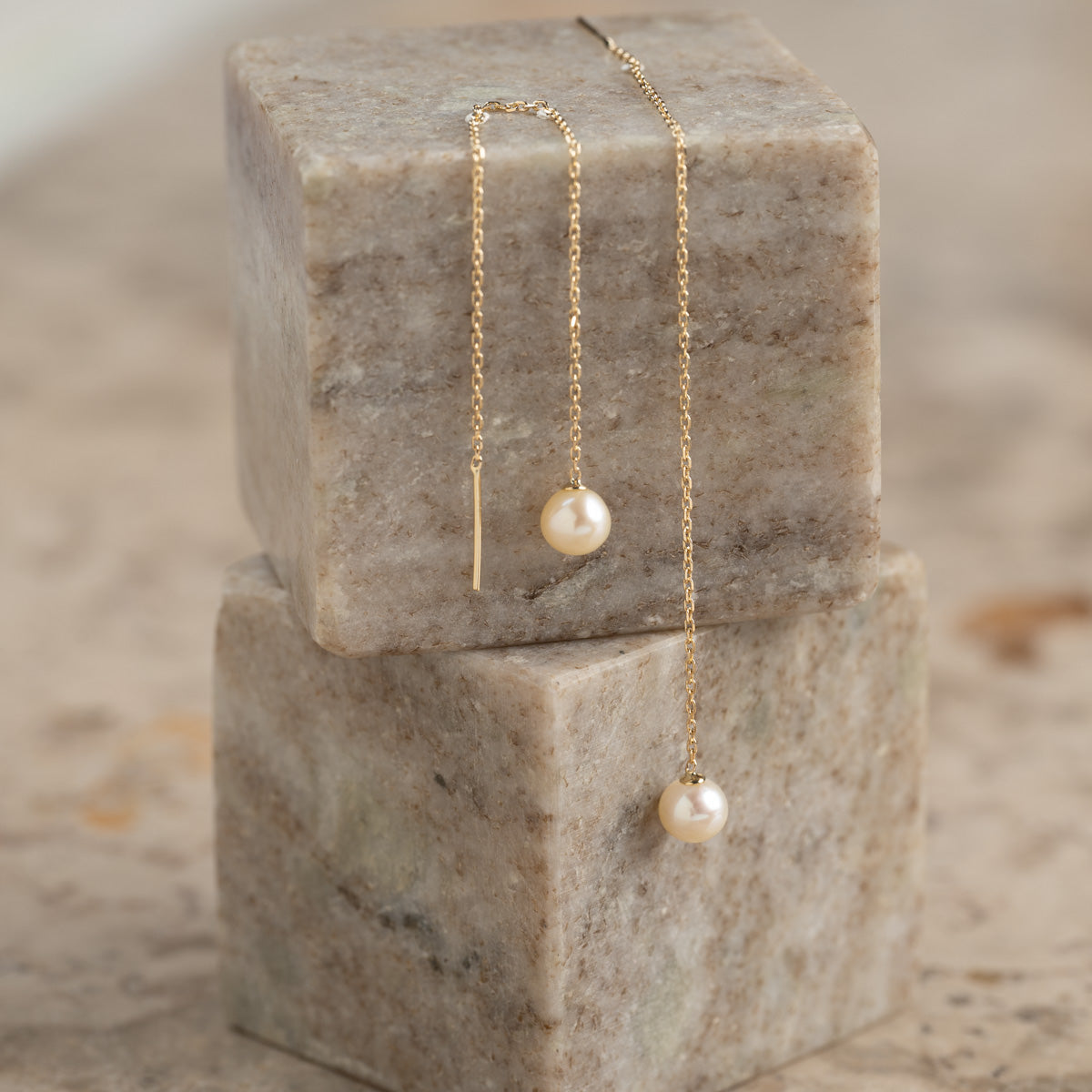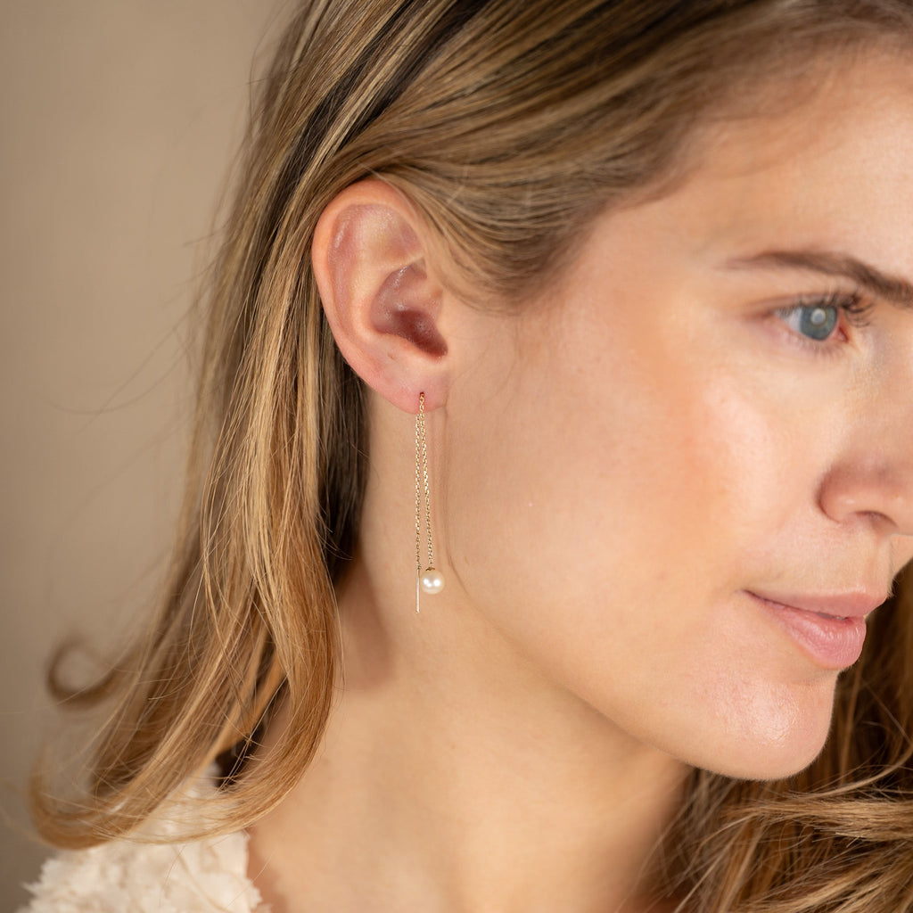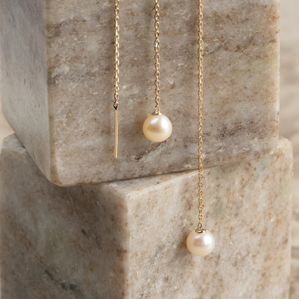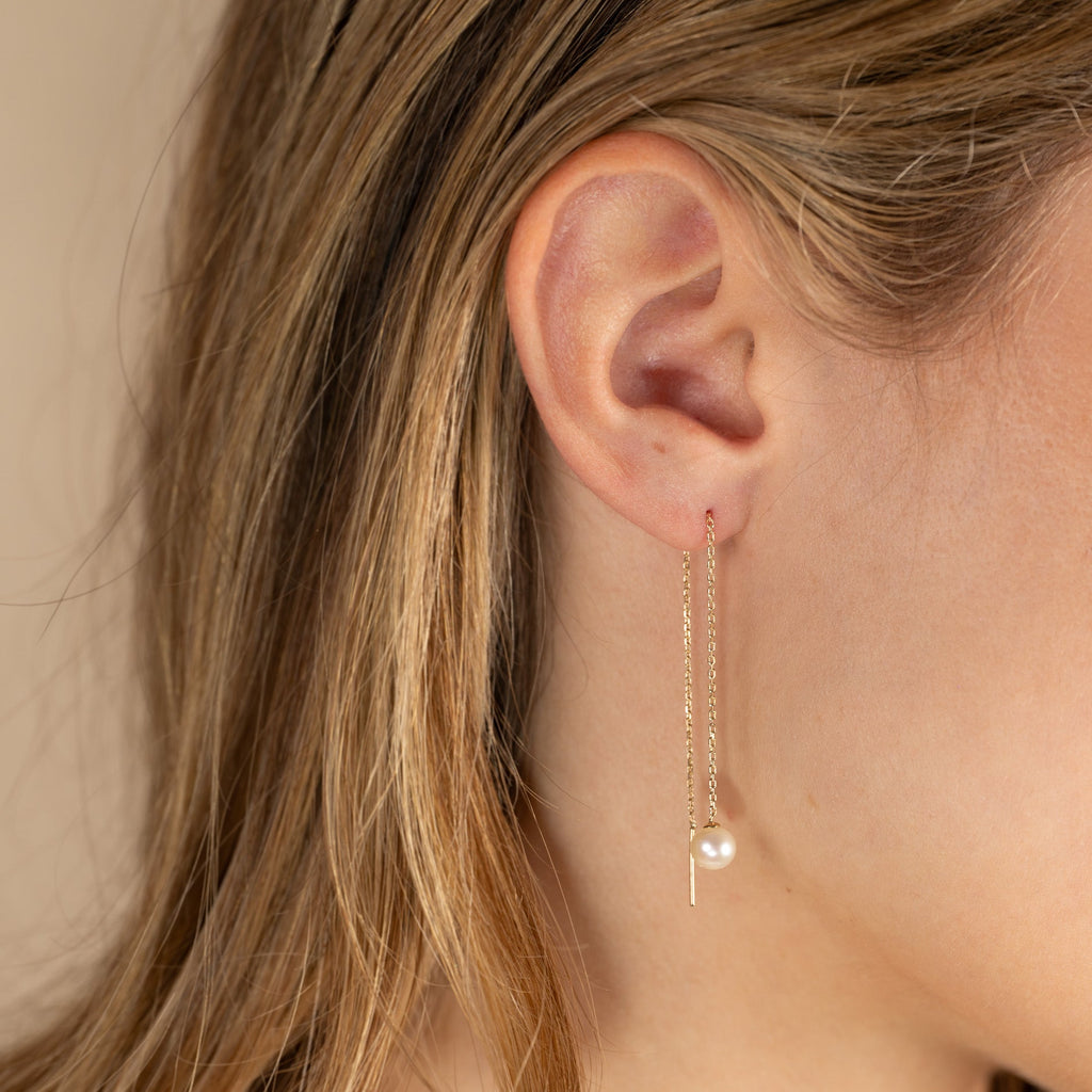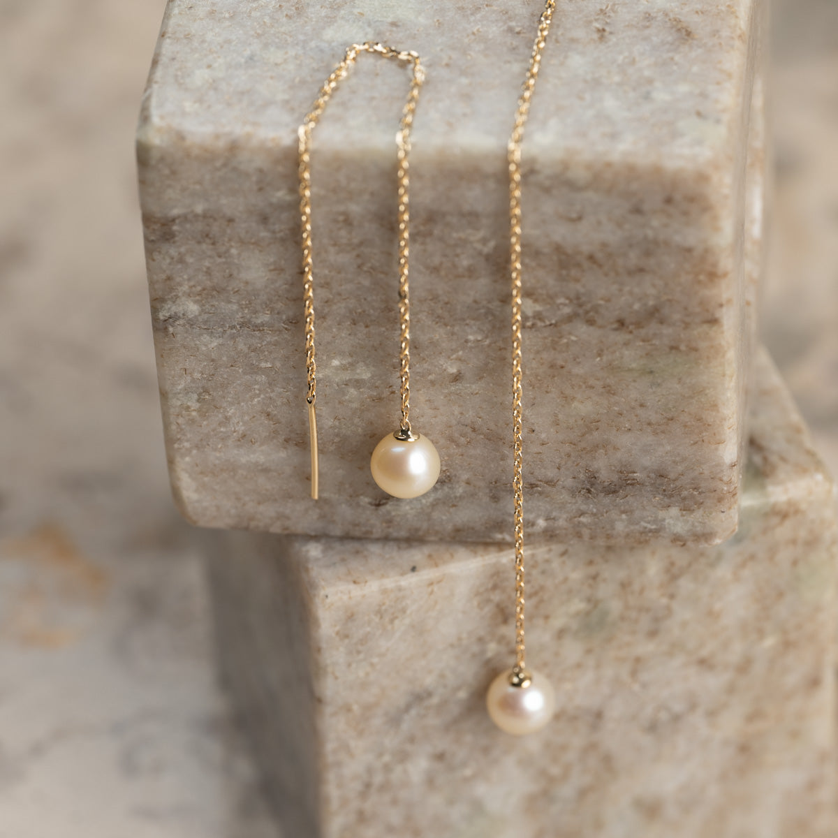 Örhängena kan användas ensamma eller kombineras med andra örhängen om du har flera hål i öronen. Den fina guldkedjan gör örhänget otroligt elegant, där pärlan tillför ett feminint uttryck.