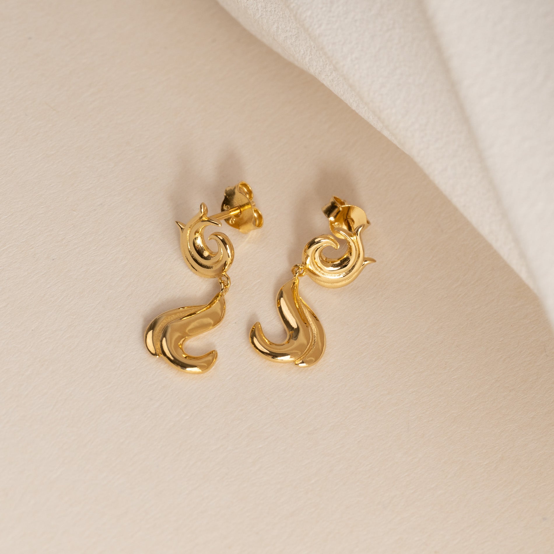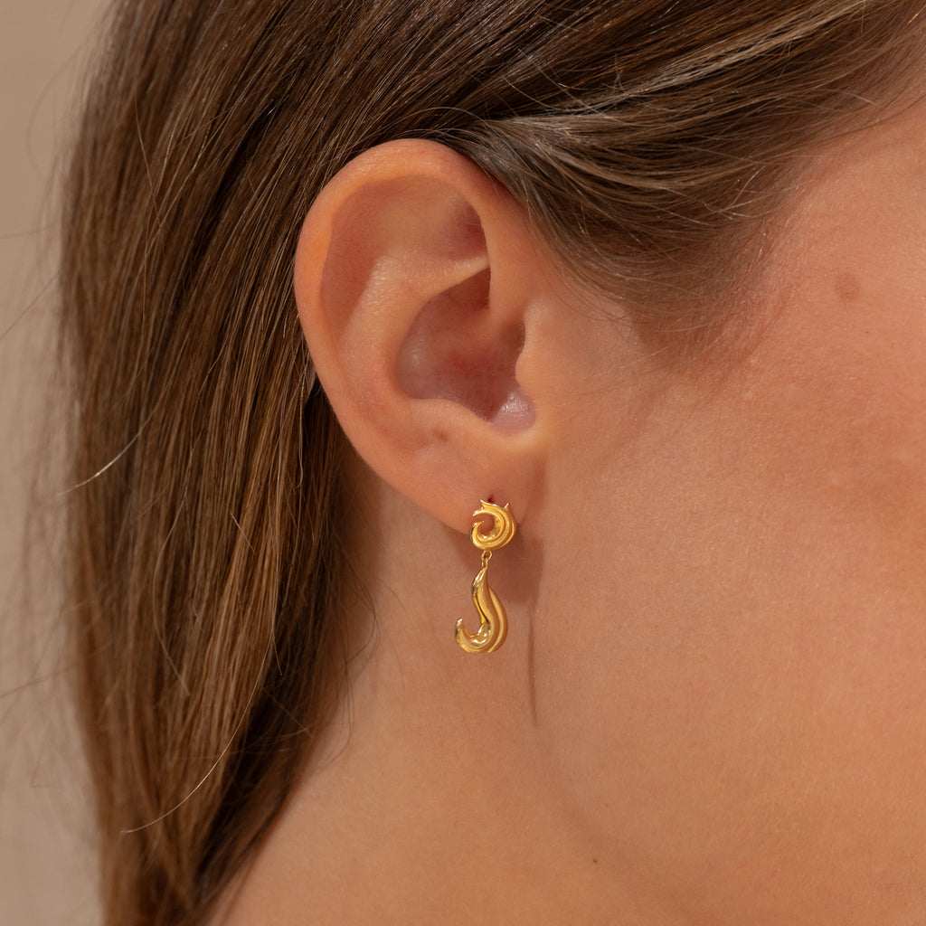 Örhängen i 100% återvunnet 18 karat förgyllt sterlingsilver med detaljer inspirerade av havet och vågor som ger ett dynamiskt och levande uttryck. Det är ett unikt smycke som fångar blickar - ett perfekt smycke för både vardag och speciella tillfällen.