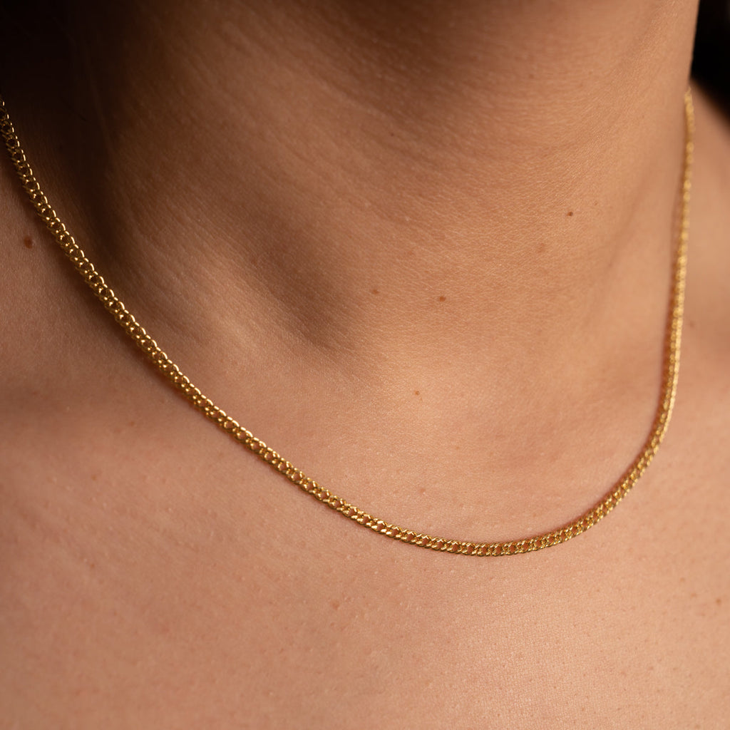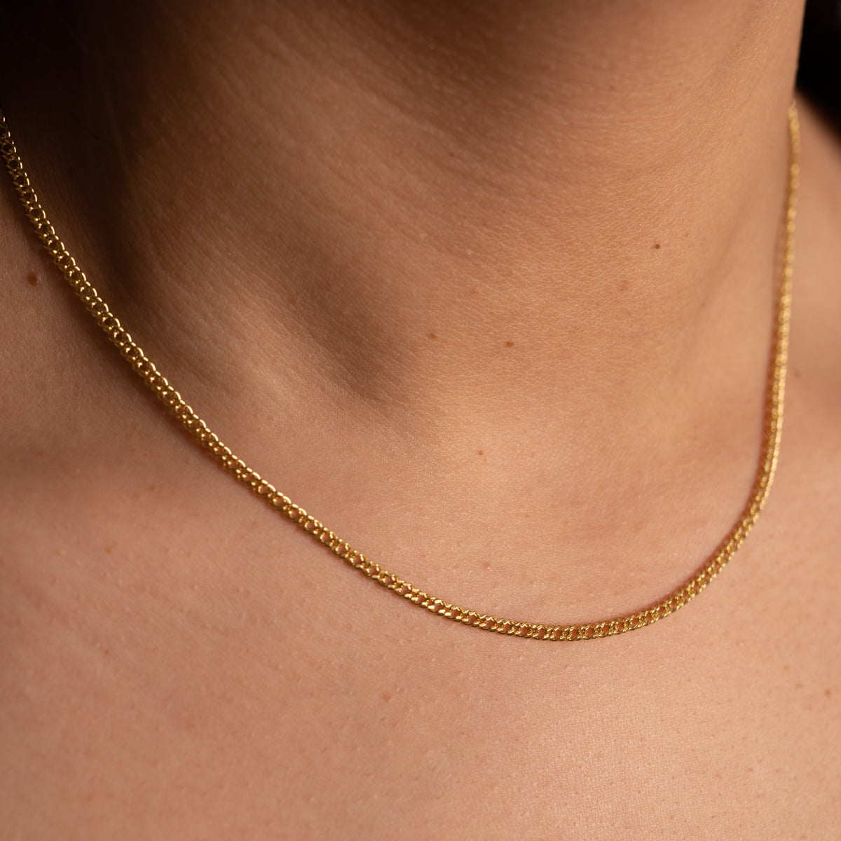 Vårt Mynte-kedja har ett elegant och minimalistiskt uttryck som aldrig blir omodernt. Halsbandets täta länkar ger ett enkelt och vackert mönster som faller fint runt din hals.