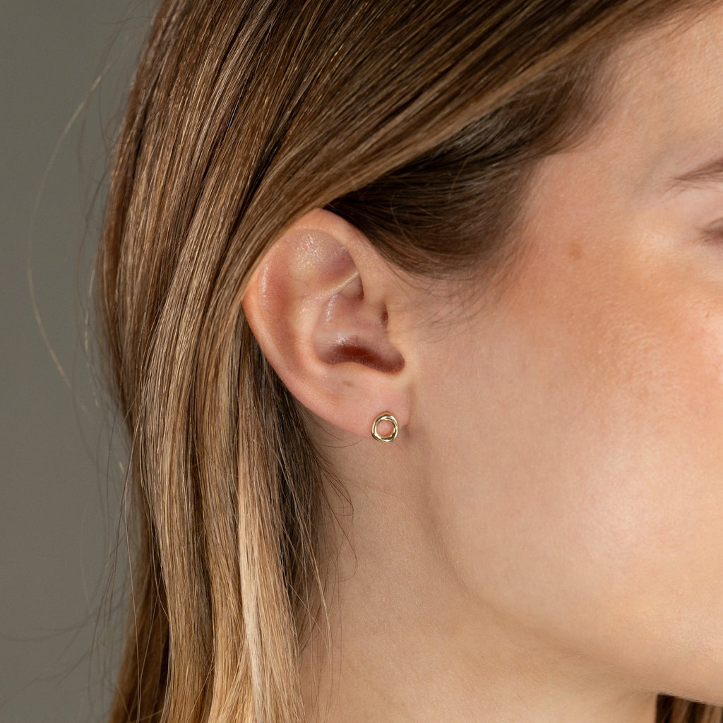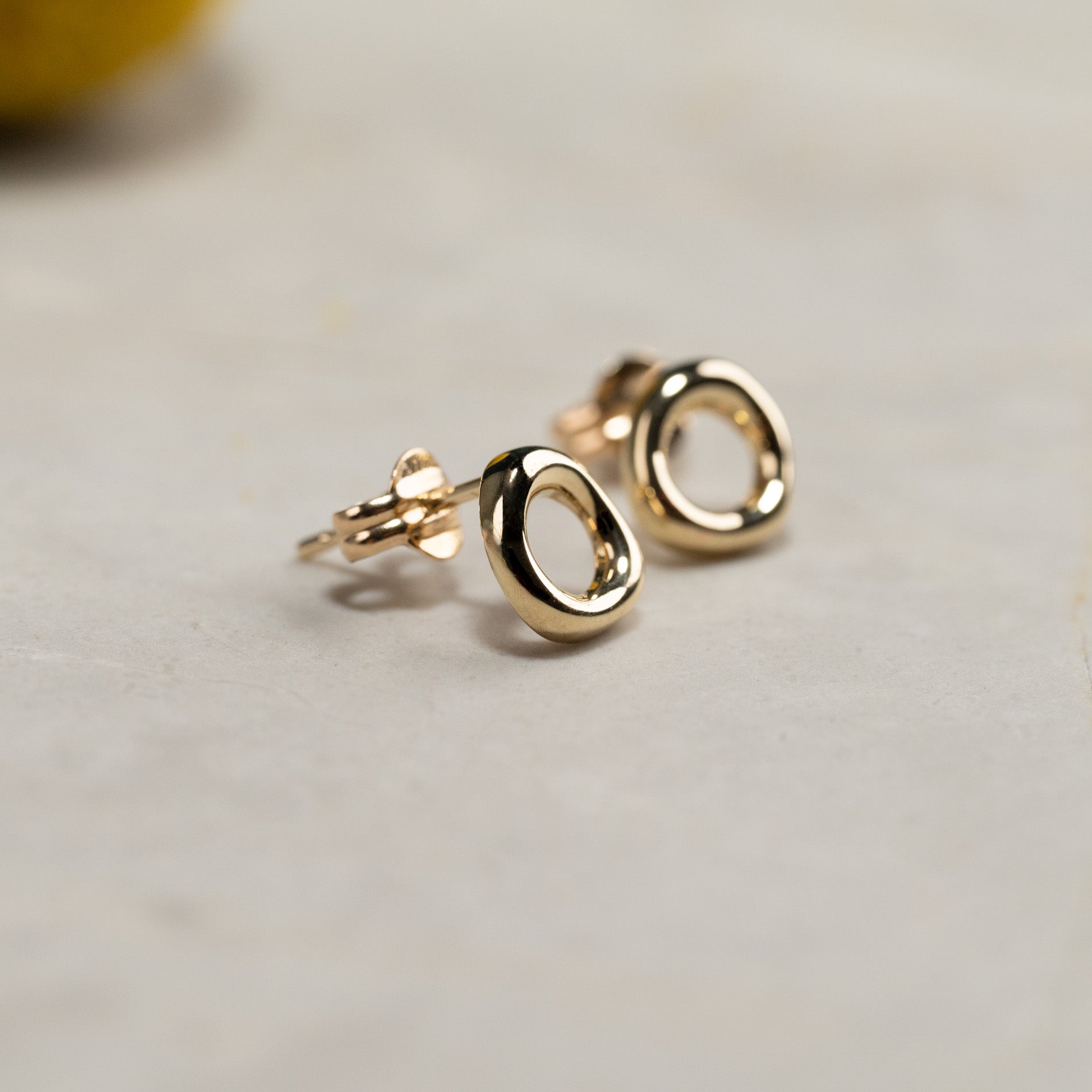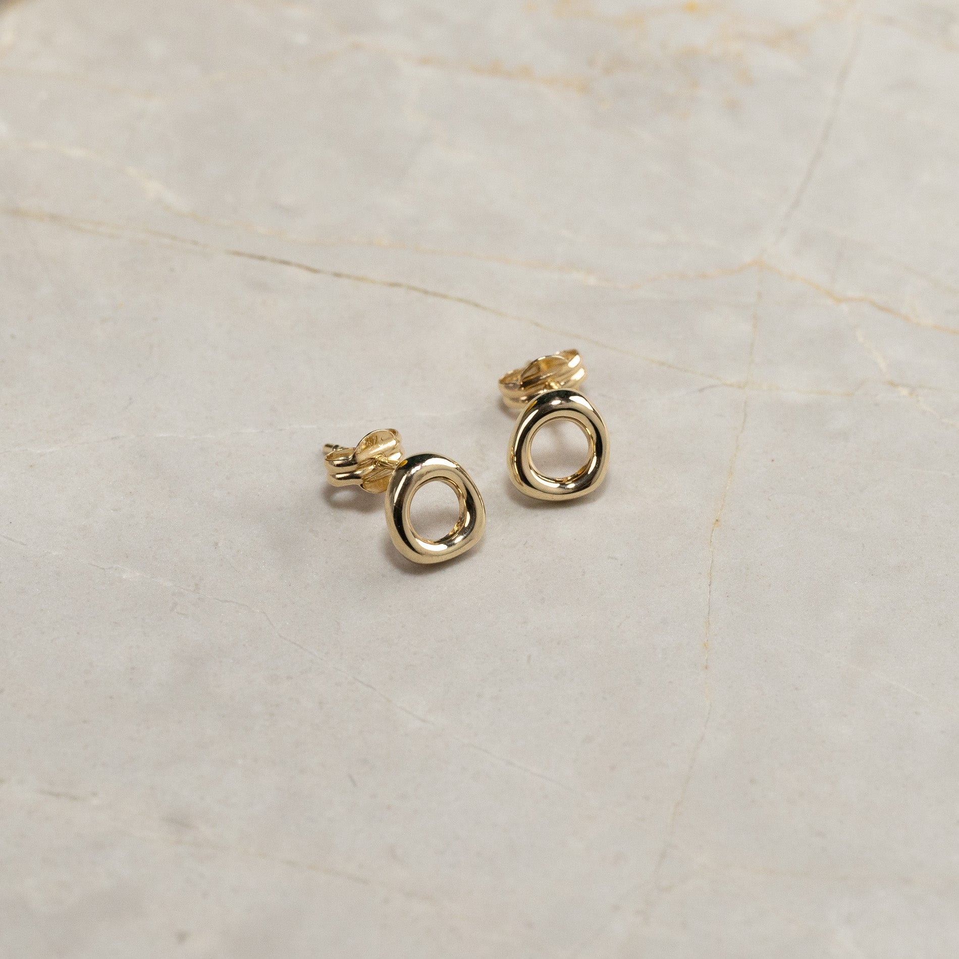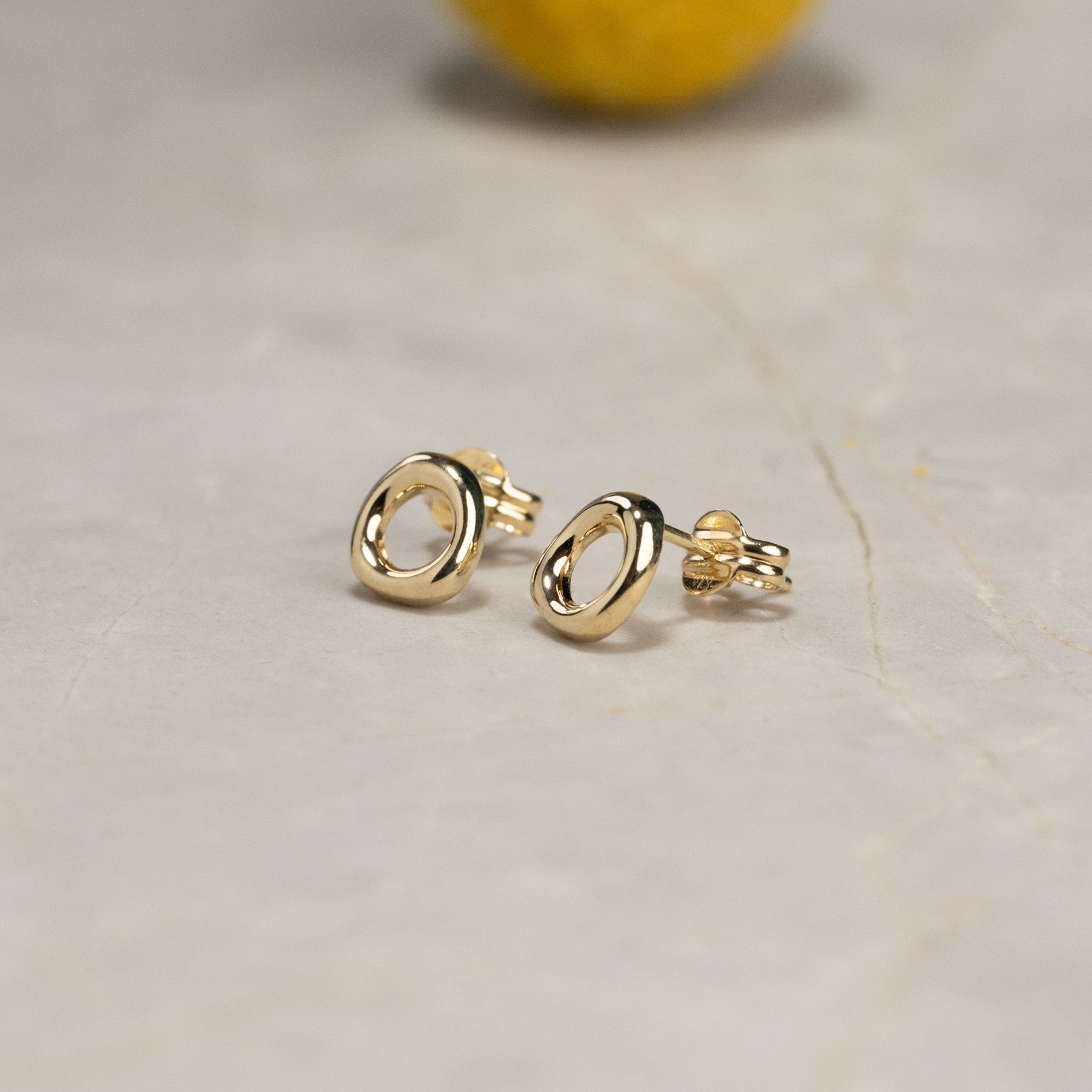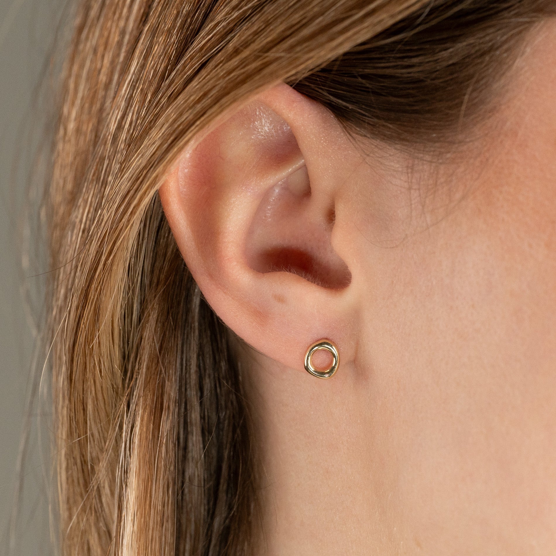 Stiftörhängen i 100 % återvunnet massivt 9 karat guld. Dessa örhängen har en organisk design som gör dem både tidlösa och moderna. De kan bäras ensamma för en stilren look eller kombineras med andra smycken i örat om du har flera hål.